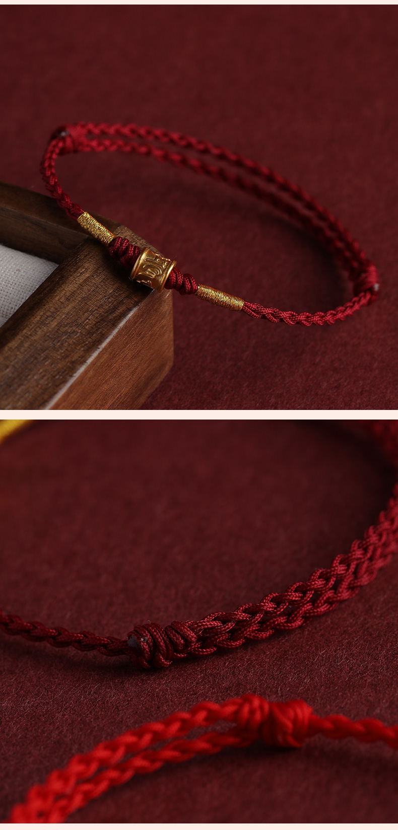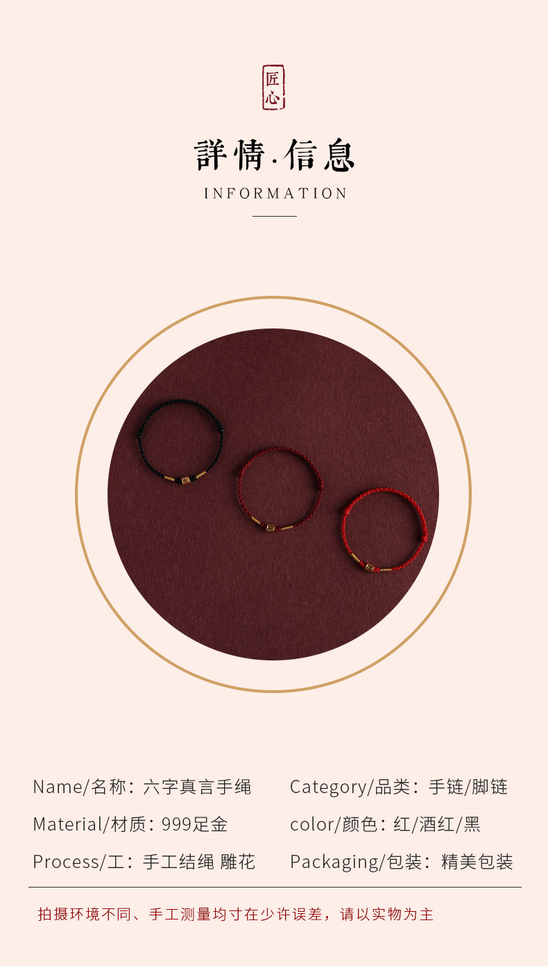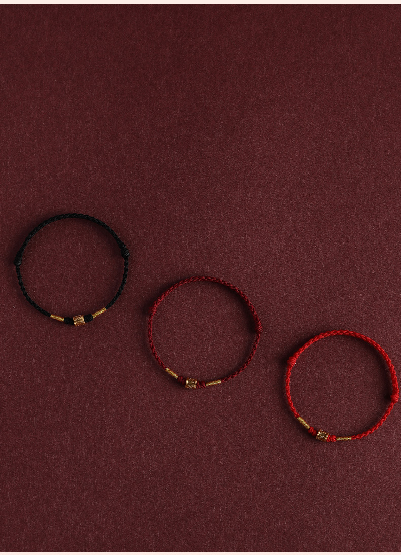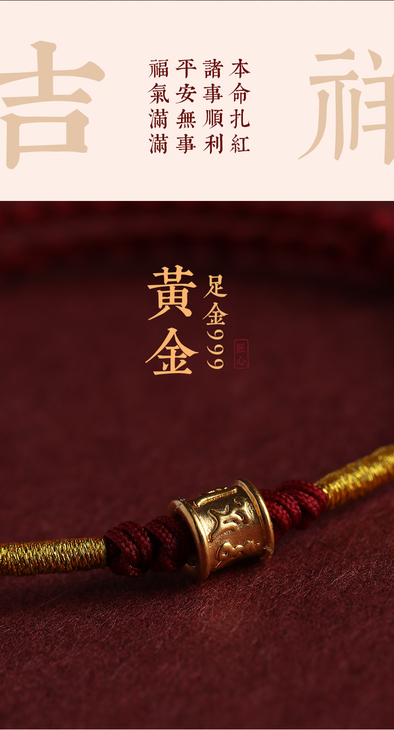 Putuo Mountain 999 Pure Gold Six-Character Mantra Red String Bracelet for Men and Women, Gold Fortune Bead for the Year of Birth, Safe and Secure Weaving