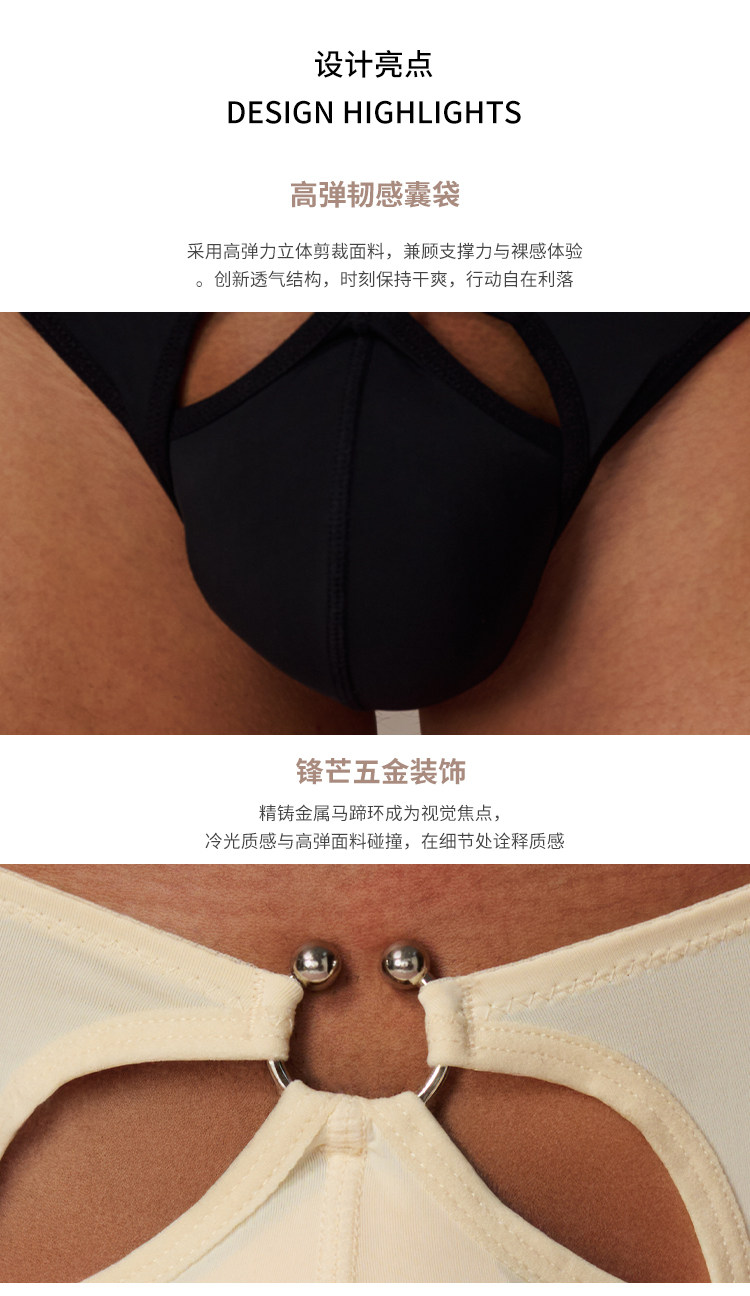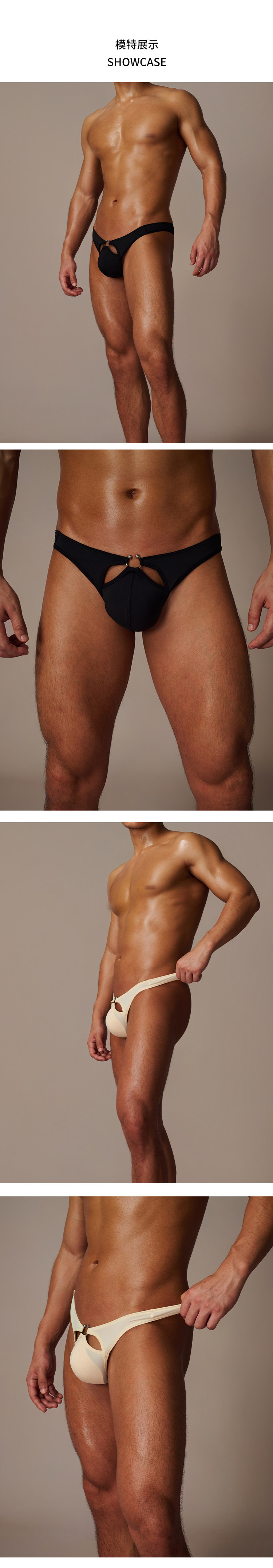 Half-Beast Realm's "Chaos Realm" Low-Waist Horseshoe Ring Sexy Briefs Summer Vacation Hollow-Out Men's Underwear