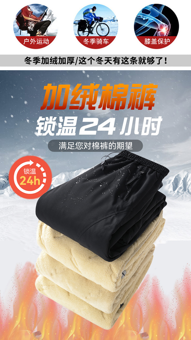 Northeast down Cotton Pants for Men and Women, Suitable for Outdoor Wear in Winter, Windproof and Cold-Resistant, Ski Pants with Added Fleece and Thickened for Warmth