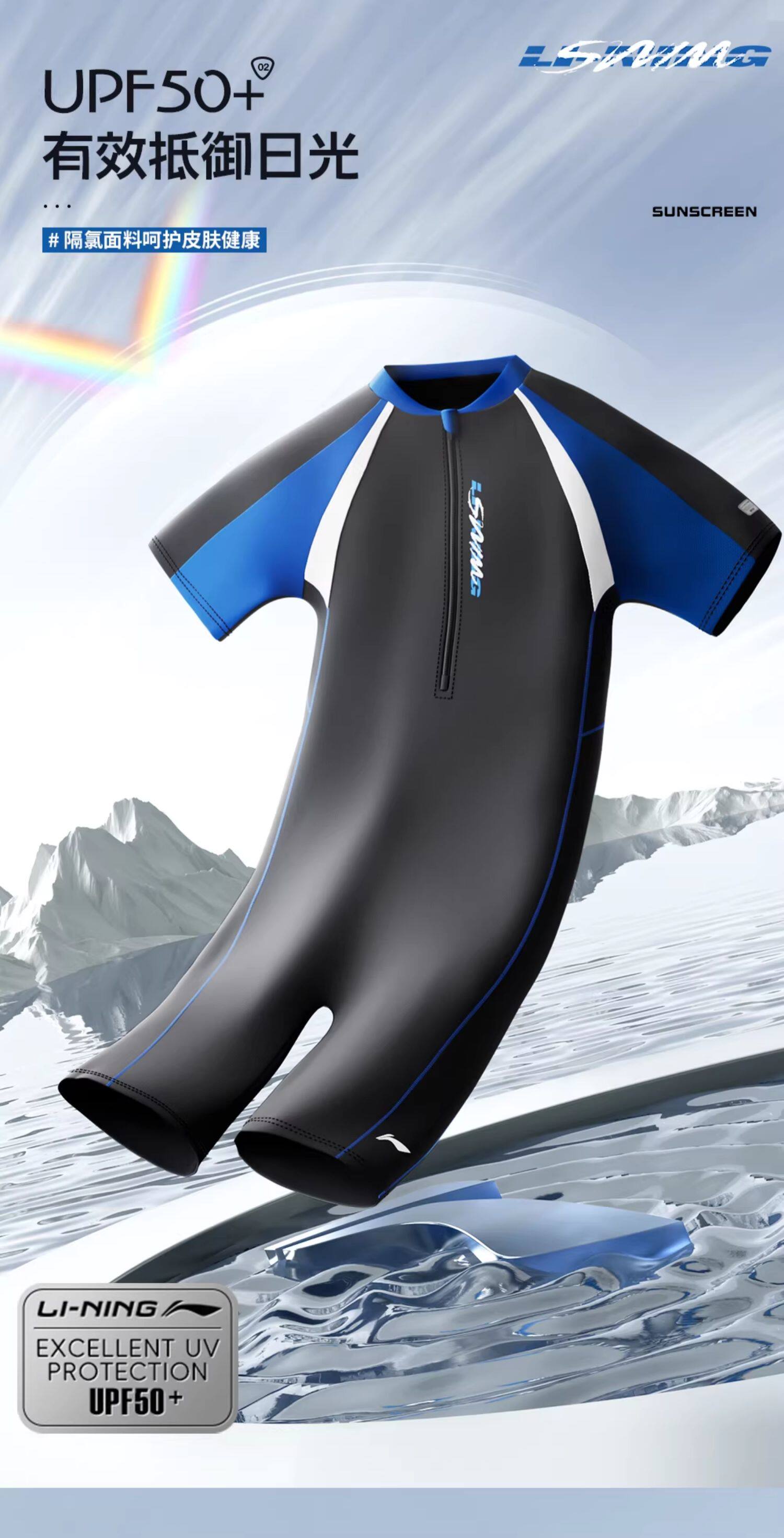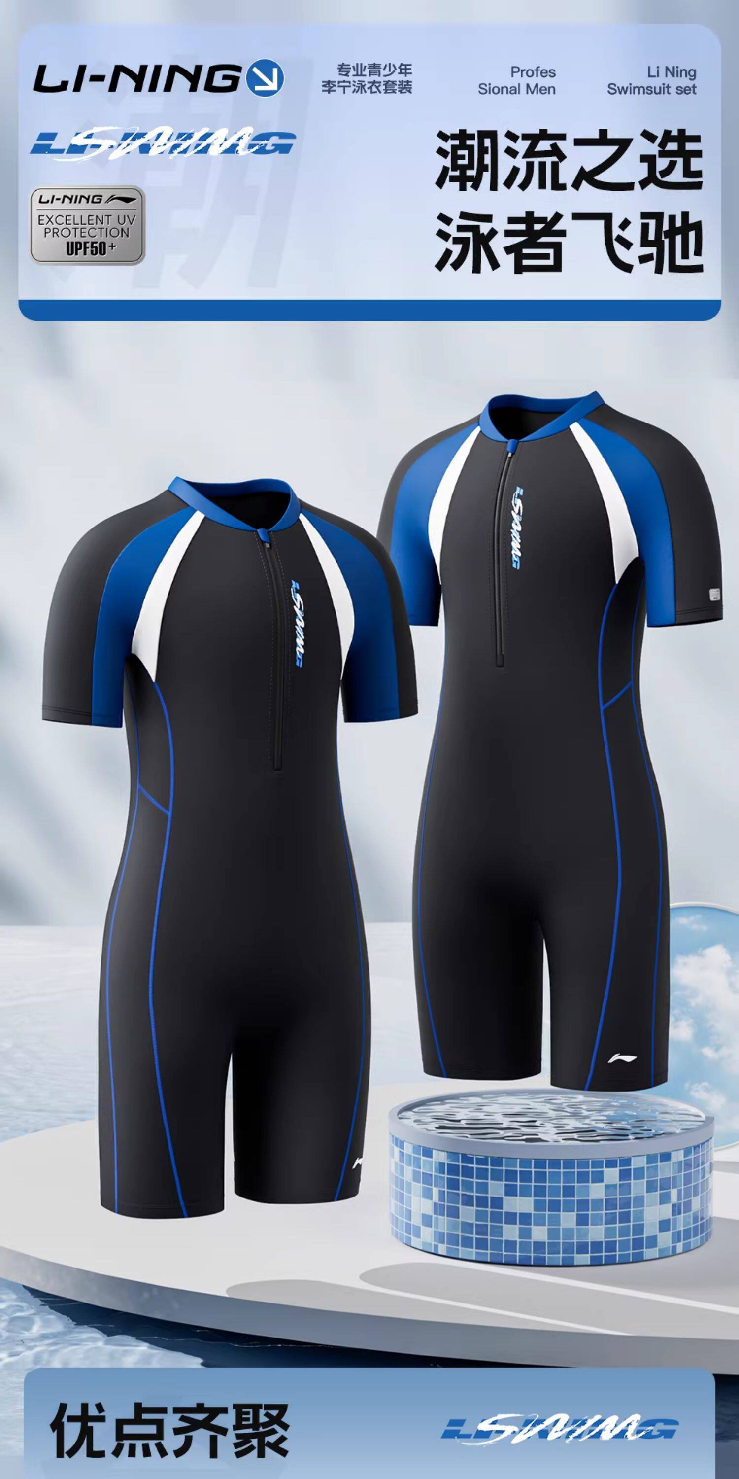 Li-Ning One-Piece Swimsuit for Men, Youth Boys, Junior High School Students, Older Children, Professional Racing Suit