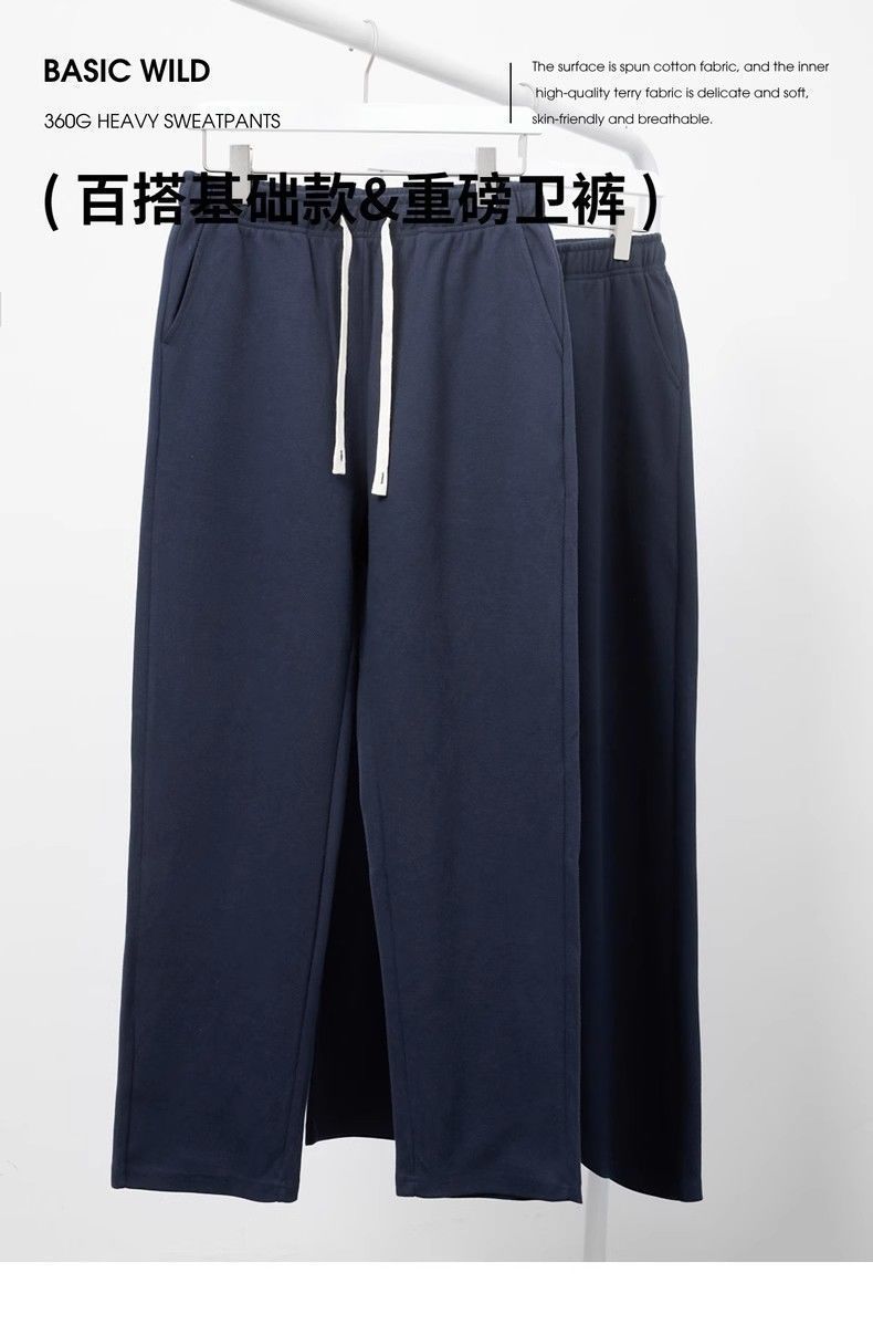 Men's Pants 300g Heavyweight Dark Gray Twill Casual Pants Men's Loose Straight-Leg Sports Sweatpants Versatile for Spring and Autumn