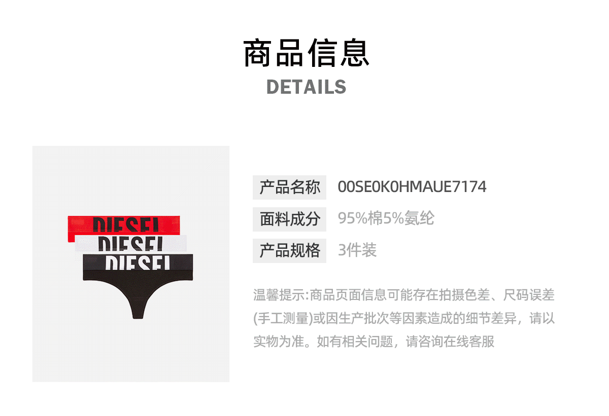 Diesel Women's Three-Piece Underwear Set, New Customer Gift, Sexy Breathable Mid-Waist Briefs 00Se0K0Hmau