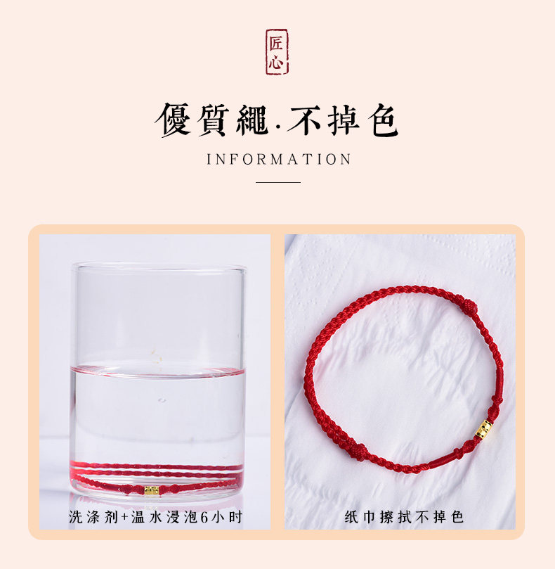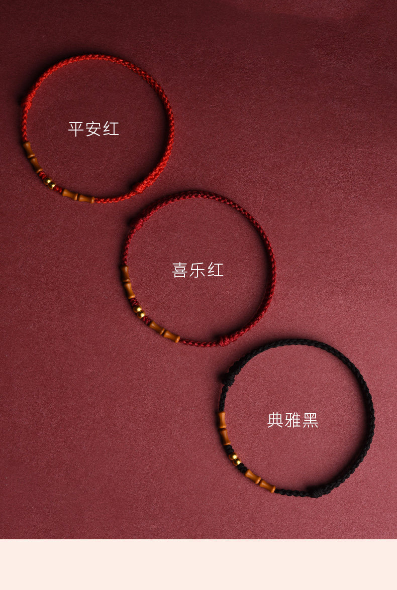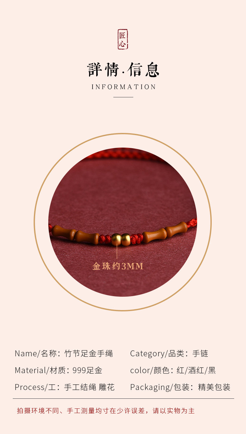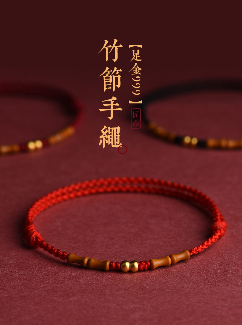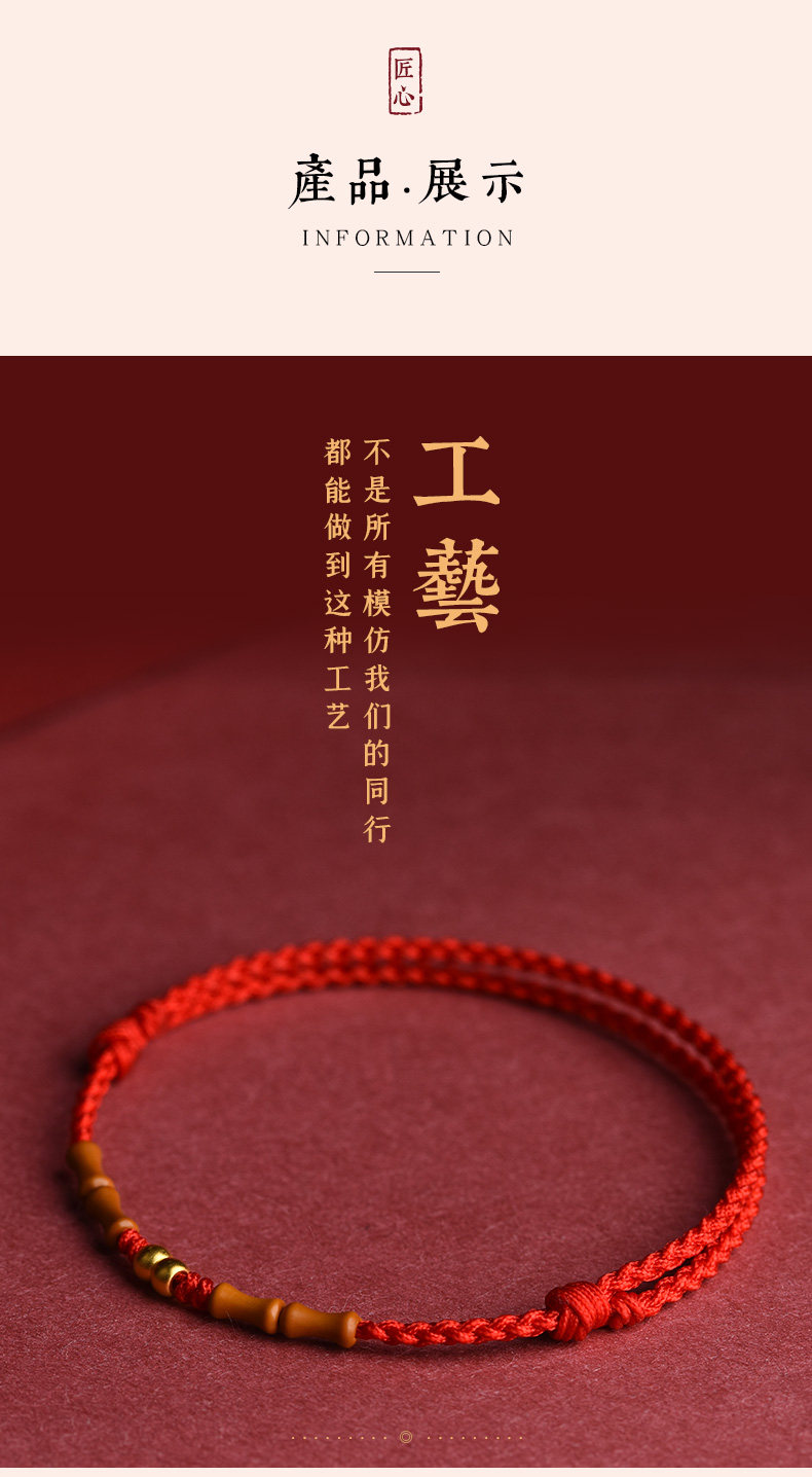 Putuo Mountain Cultural and Creative Products 999 Pure Gold Fortune Beads Red String Anklet for Men and Women, Peach Wood Bamboo Knots for the Year of Birth, Good Luck and Safety