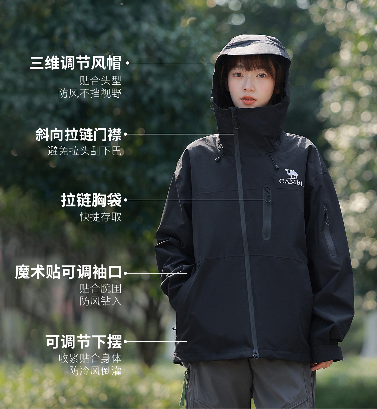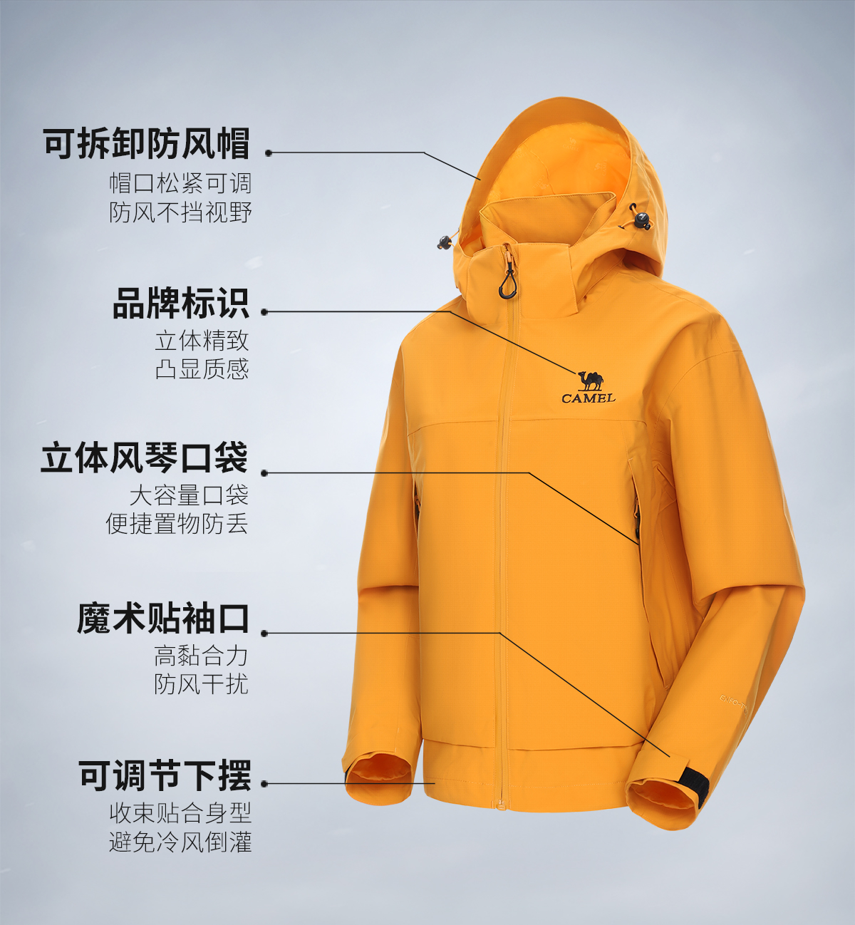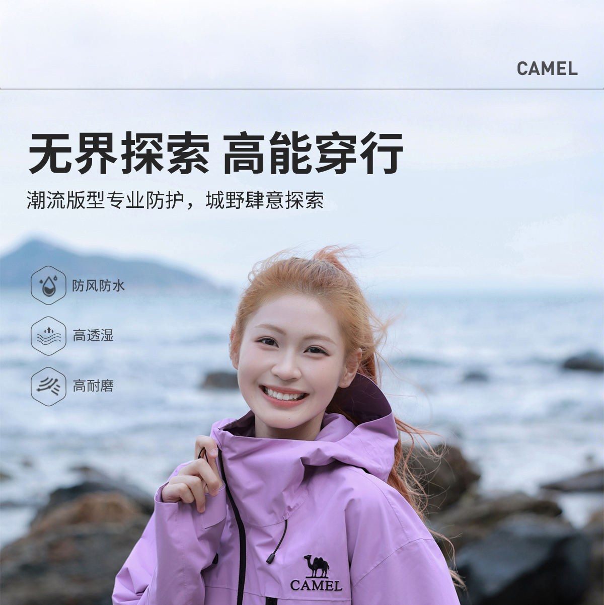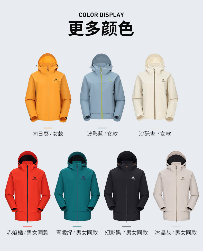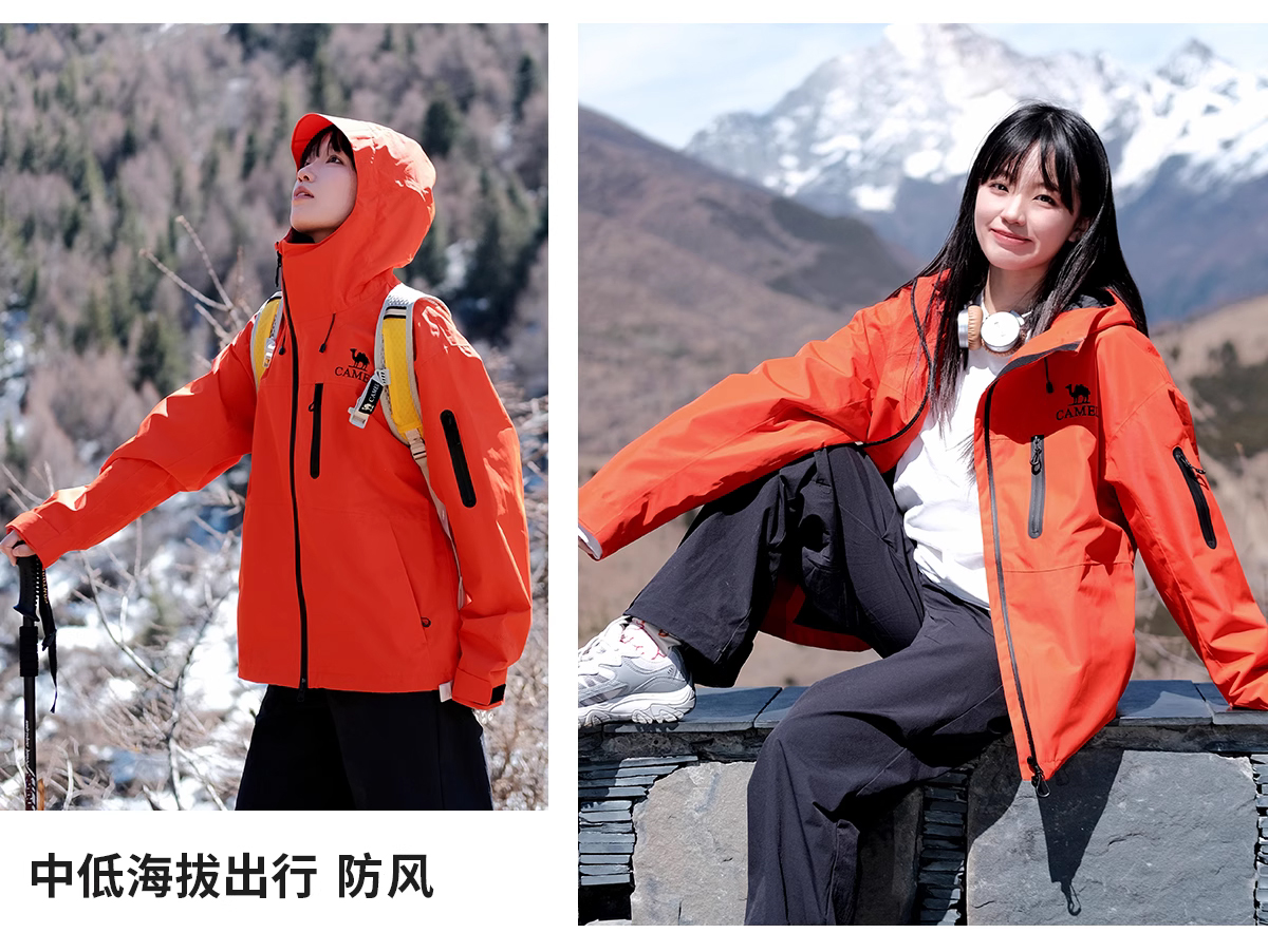 Camel Outdoor Mountain Rush Clothes for Men and Women 2025 New arrival Windproof Waterproof Lightweight Single Rush Outwear Travel Mountaineering Suit