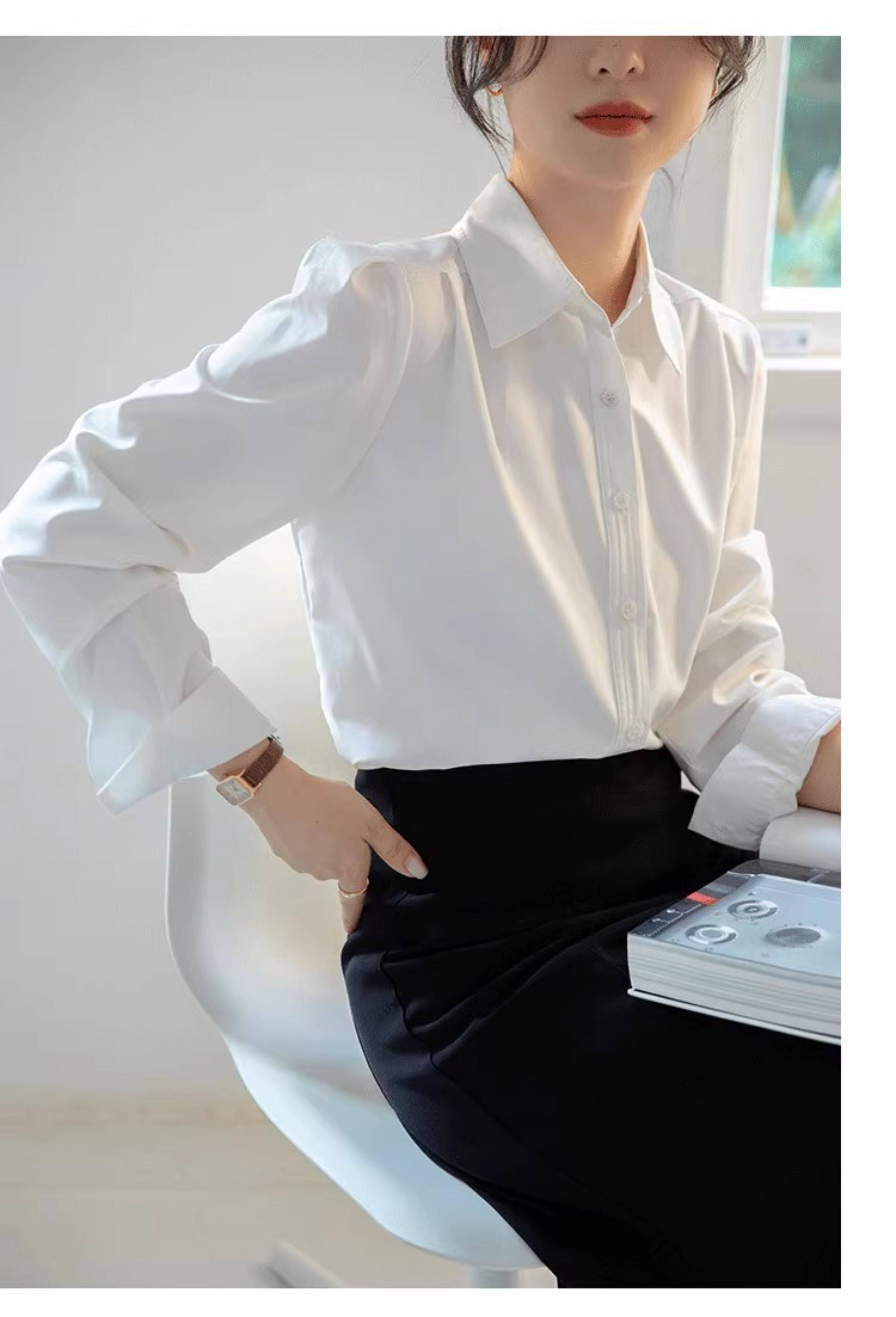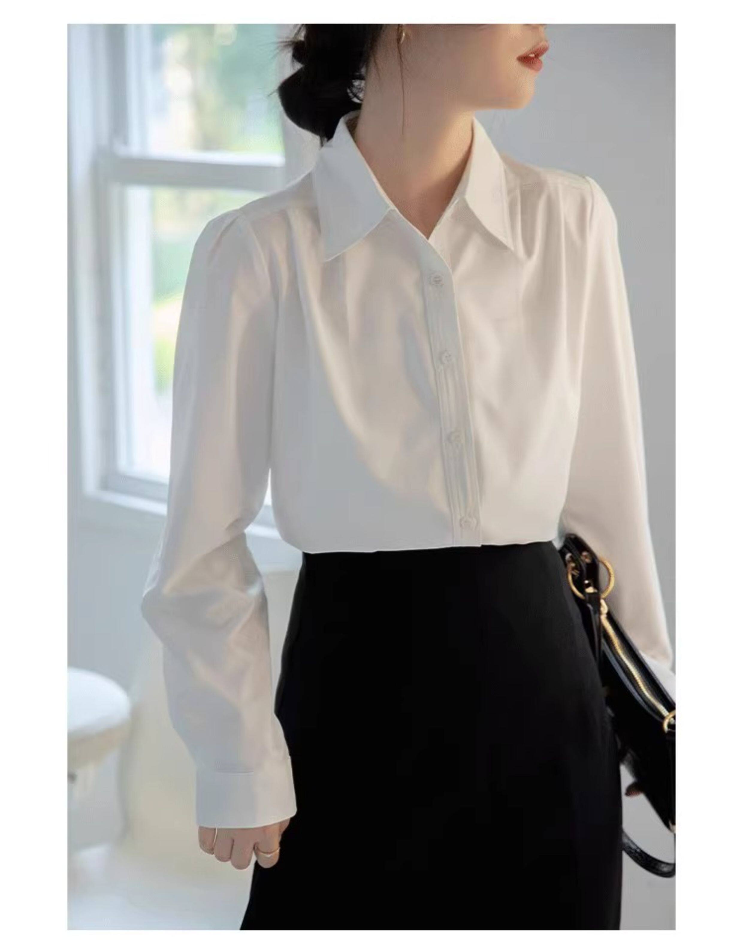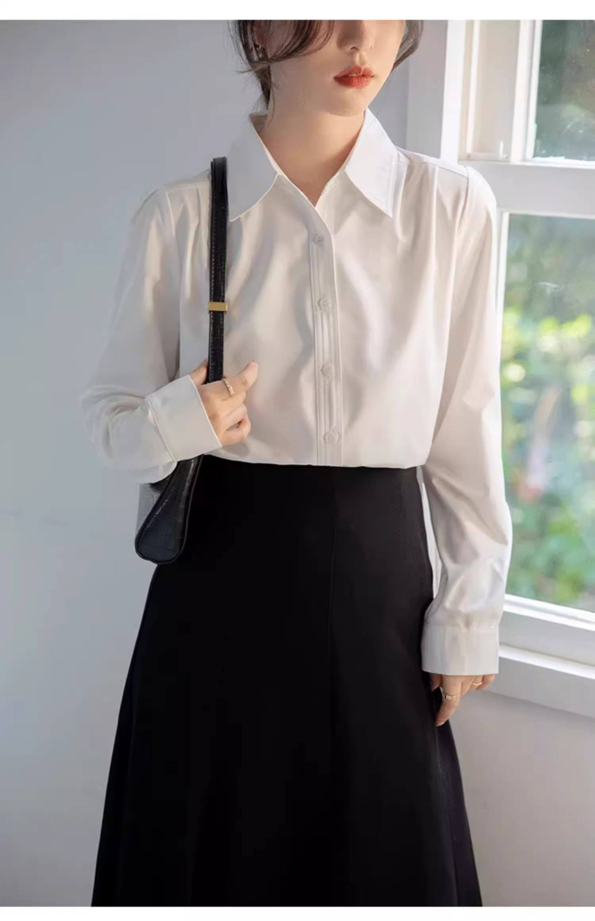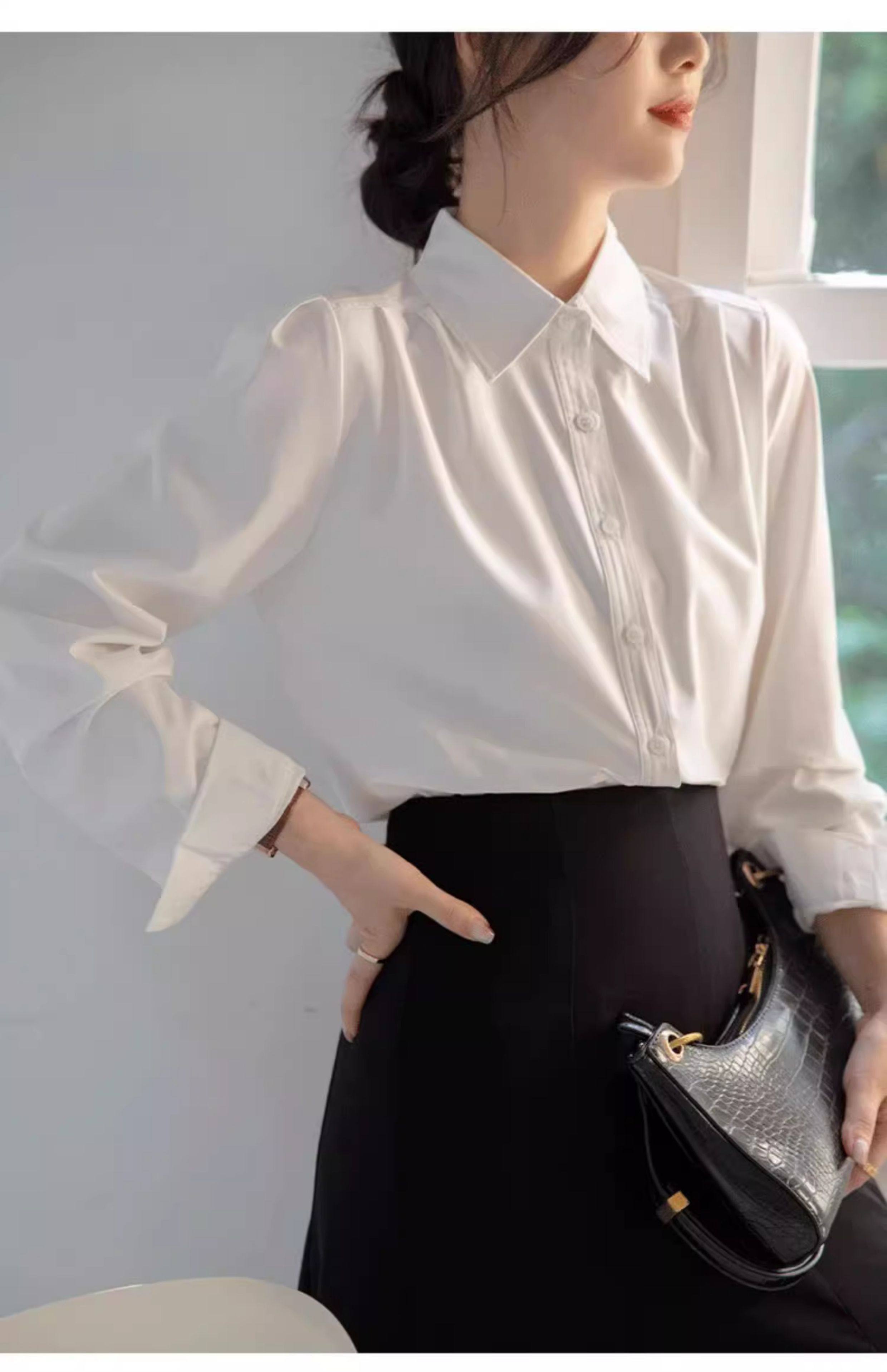 La Chapelle Elegant White Long-Sleeved Shirt for Women, Winter 2026 New Style, High-End Formal Wear, Commuting Professional Shirt