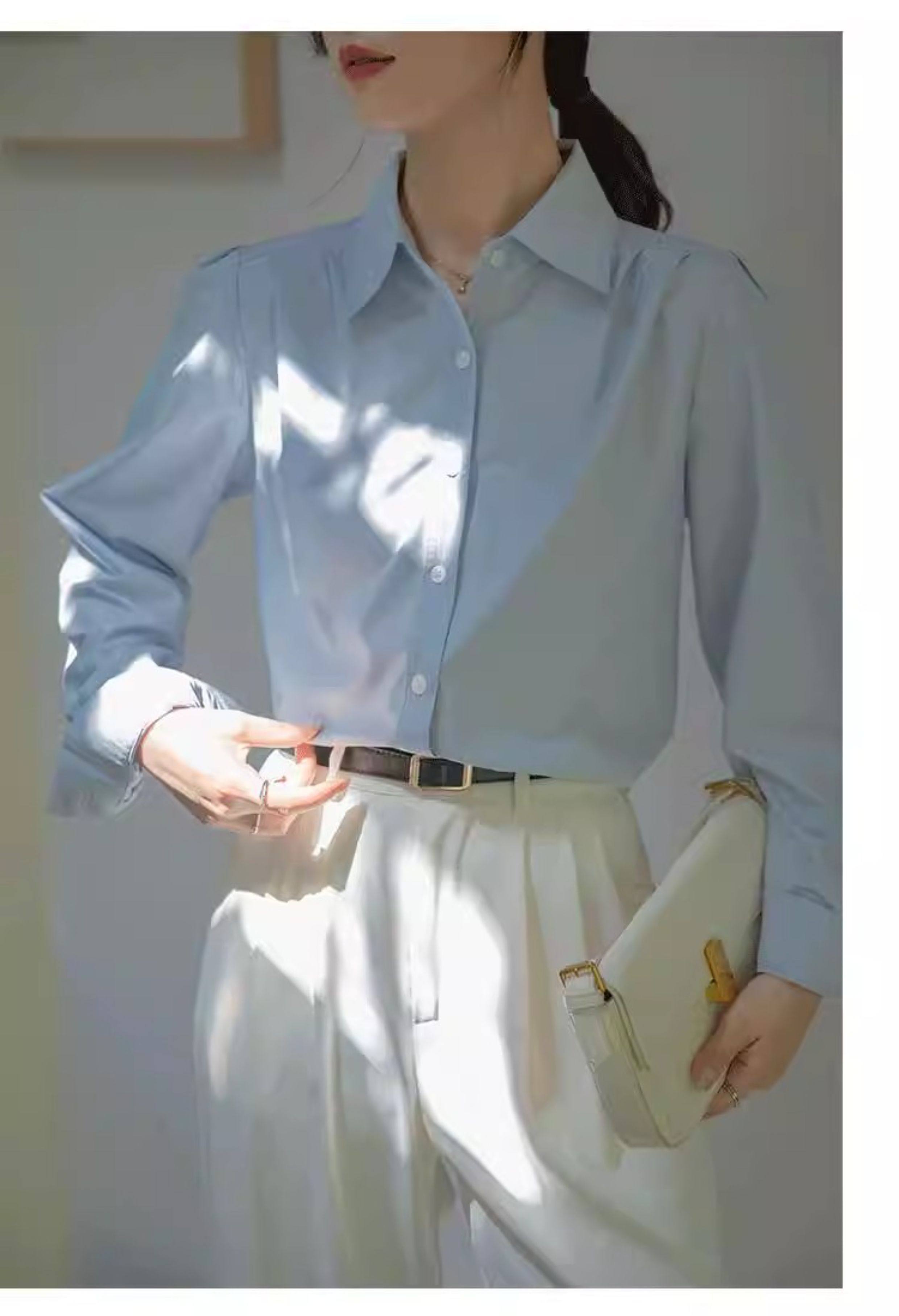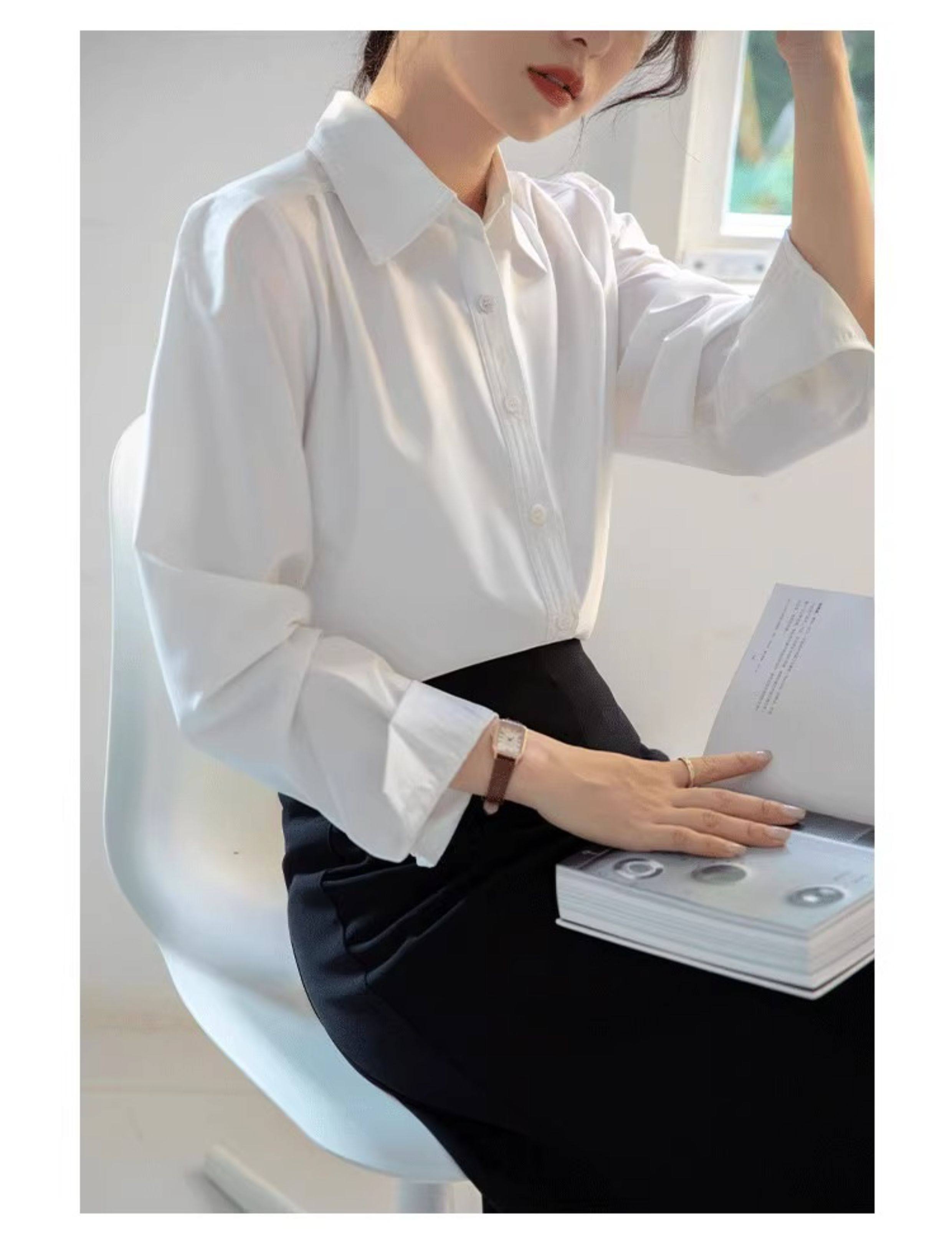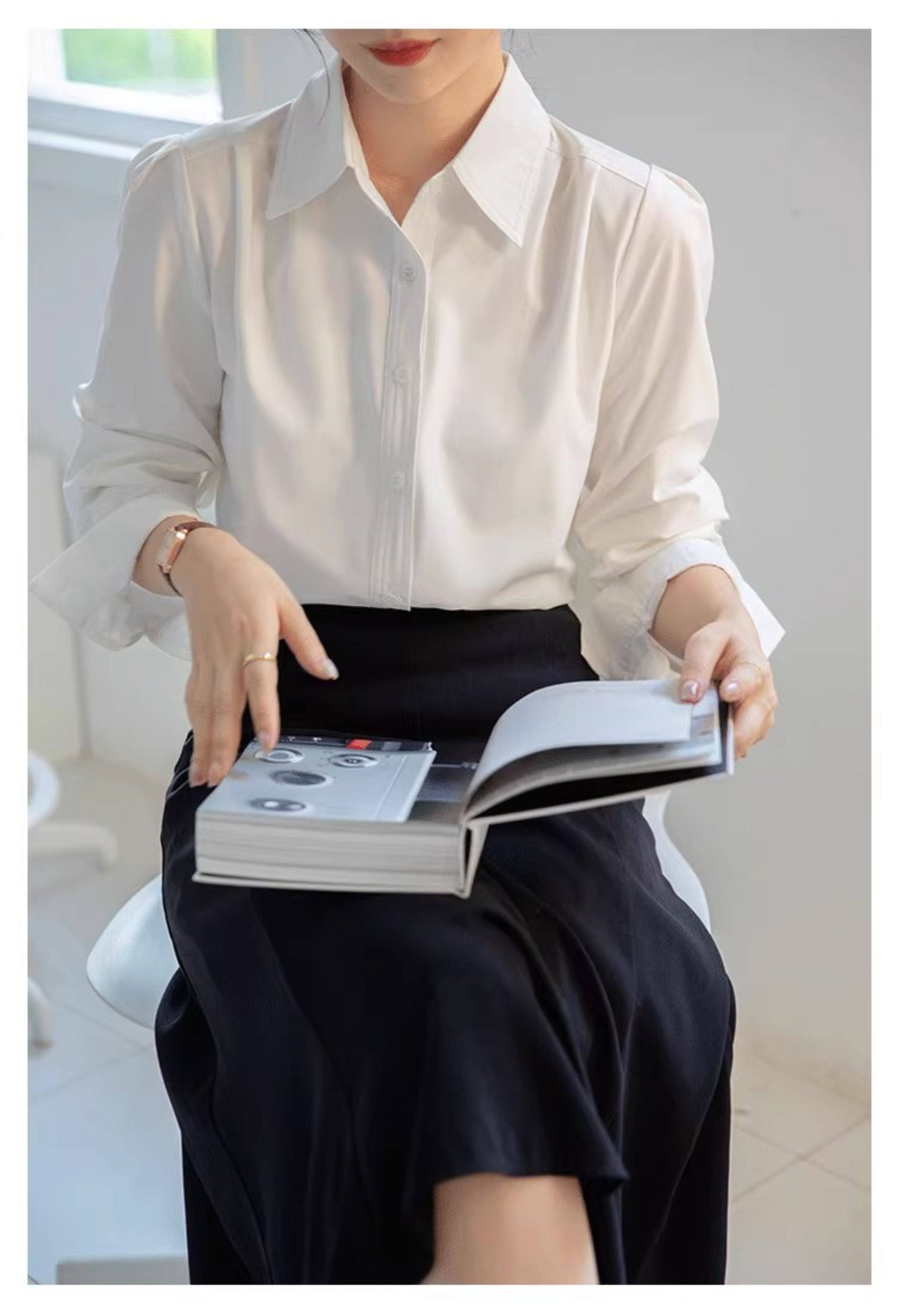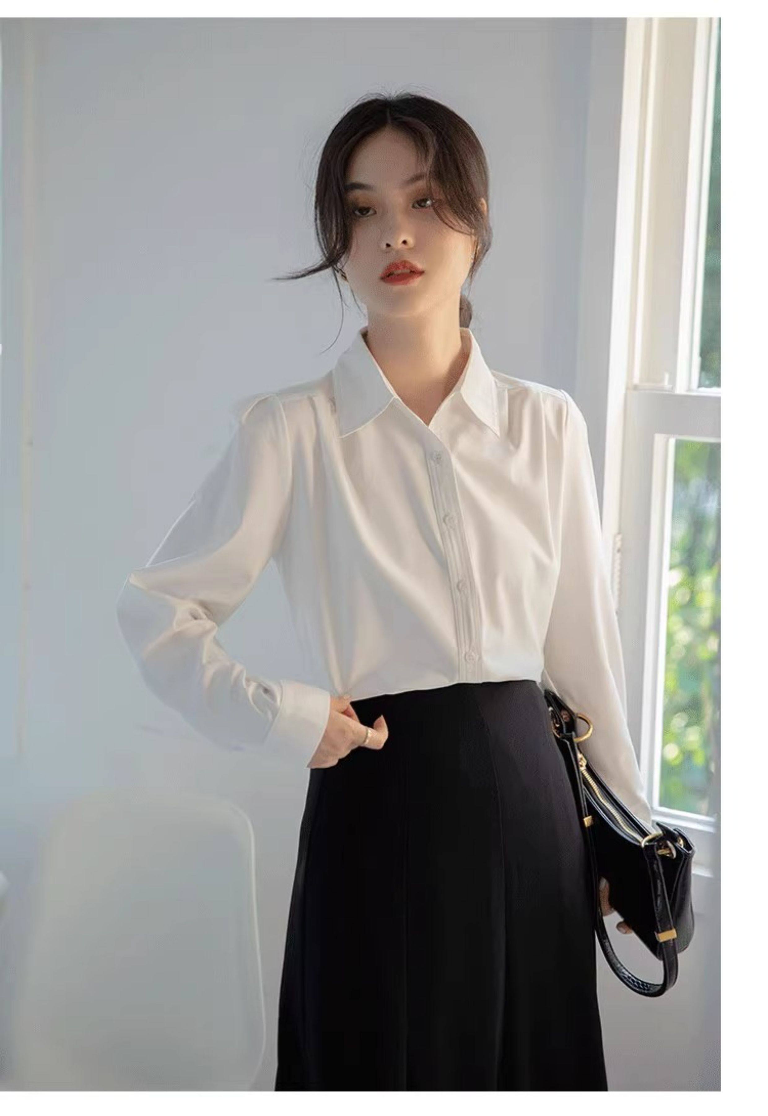La Chapelle Elegant White Long-Sleeved Shirt for Women, Winter 2026 New Style, High-End Formal Wear, Commuting Professional Shirt
