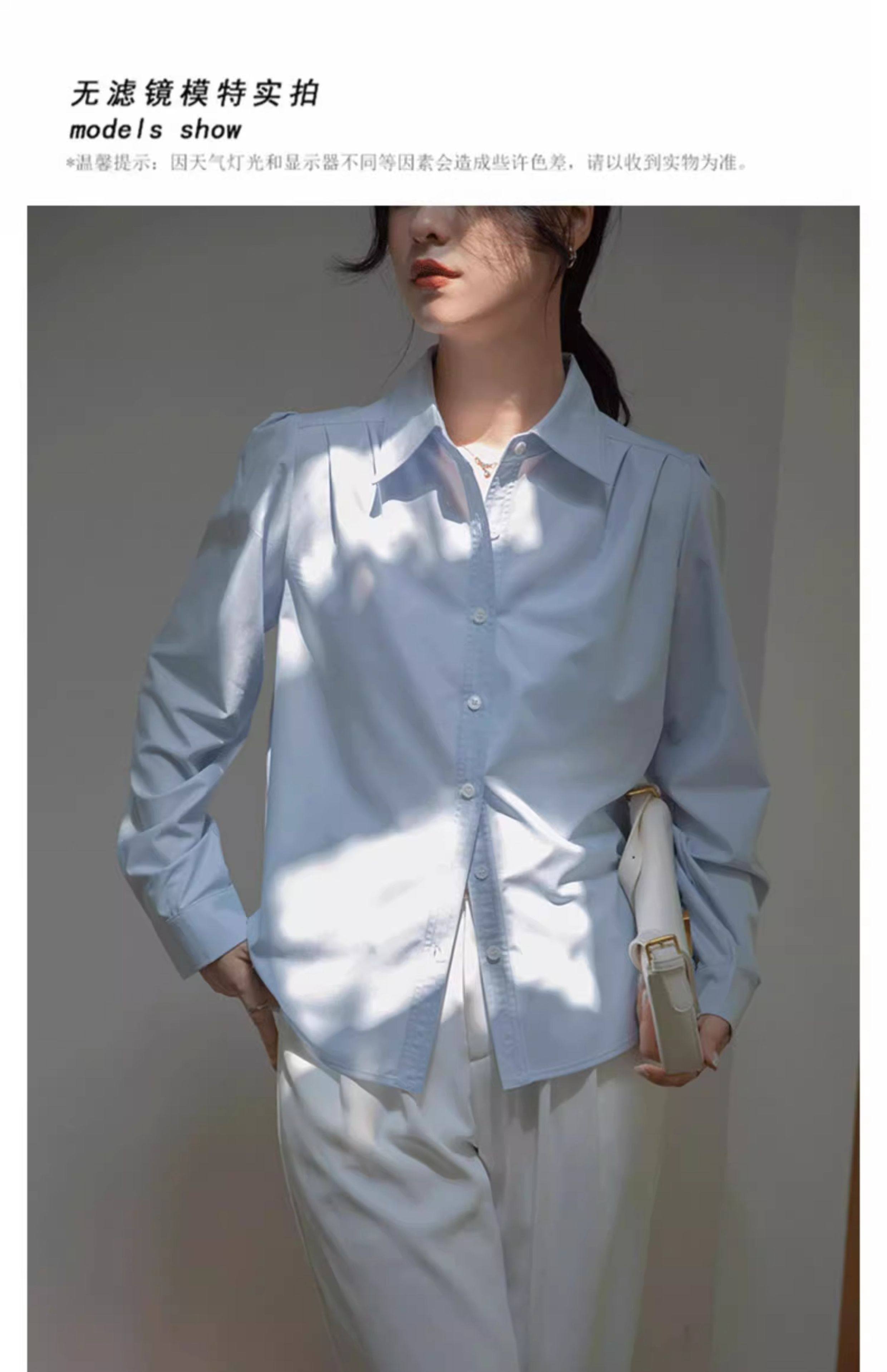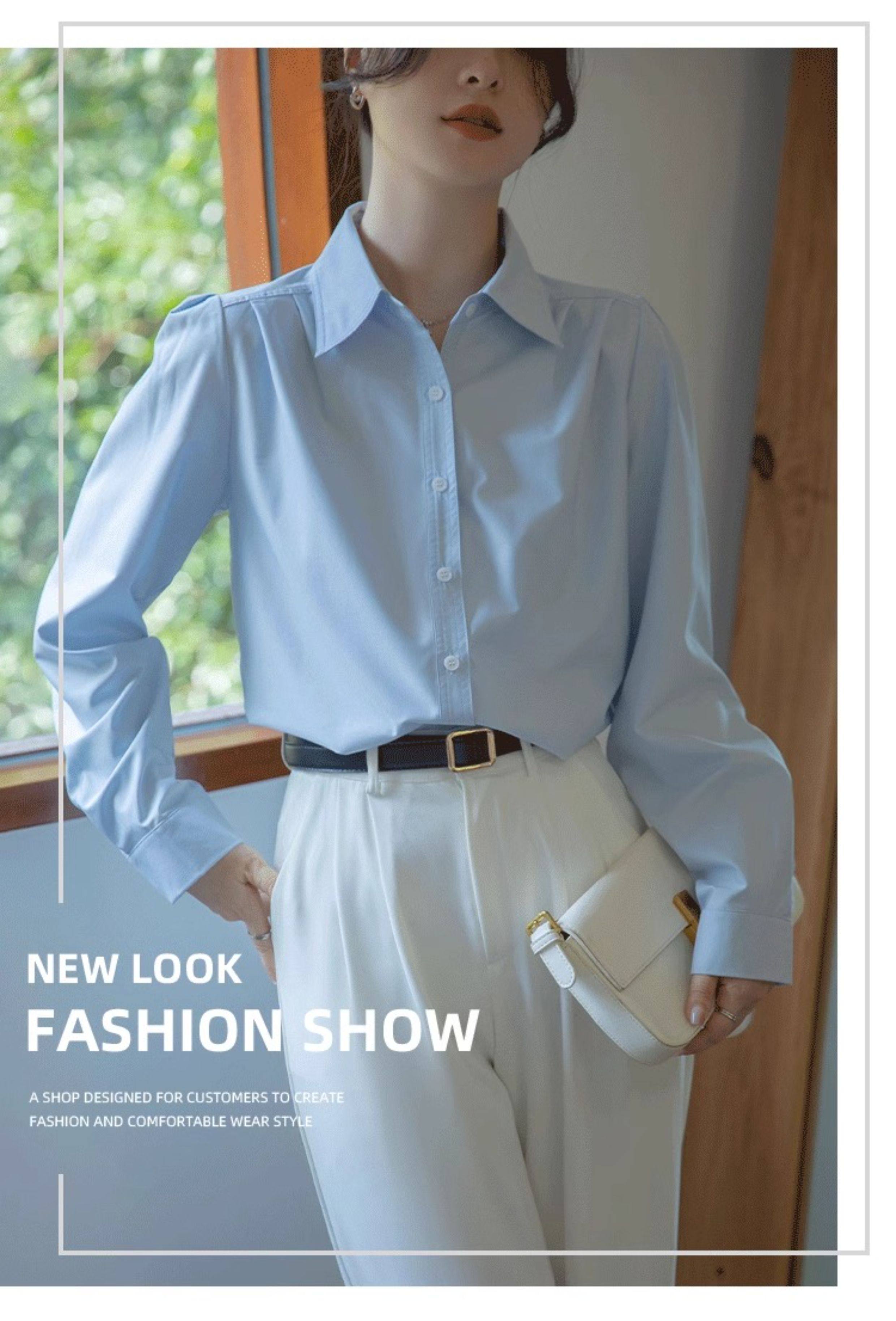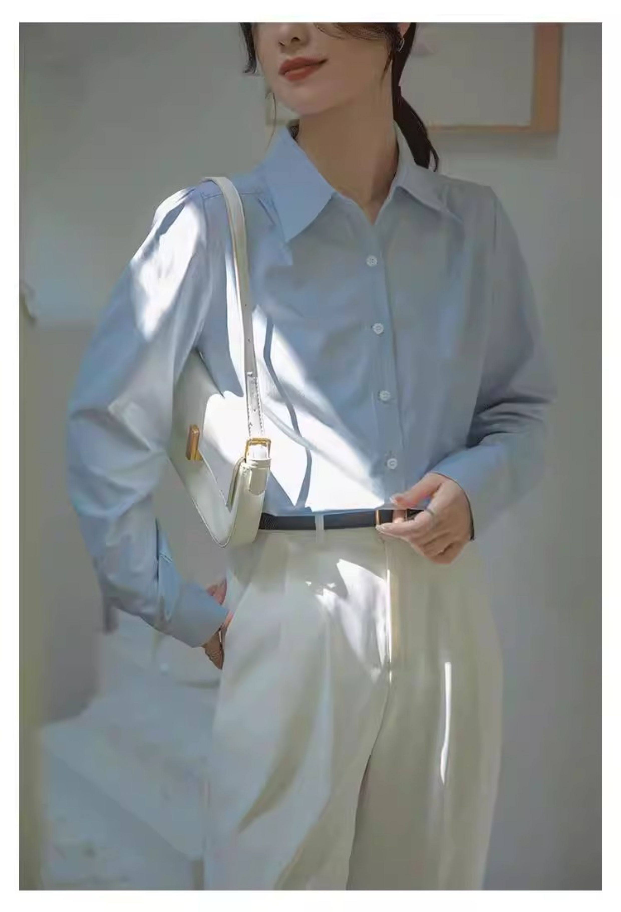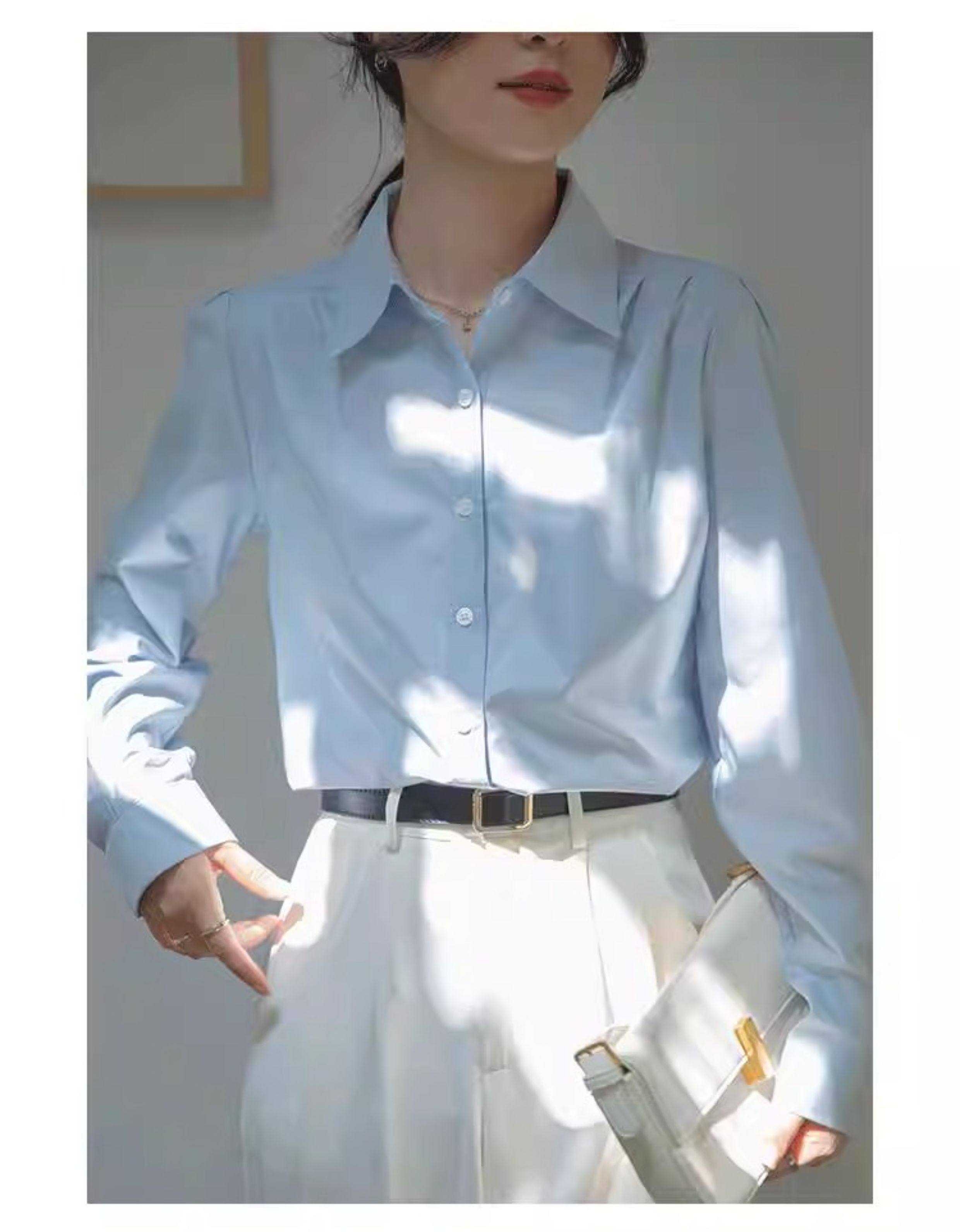 La Chapelle Elegant White Long-Sleeved Shirt for Women, Winter 2026 New Style, High-End Formal Wear, Commuting Professional Shirt
