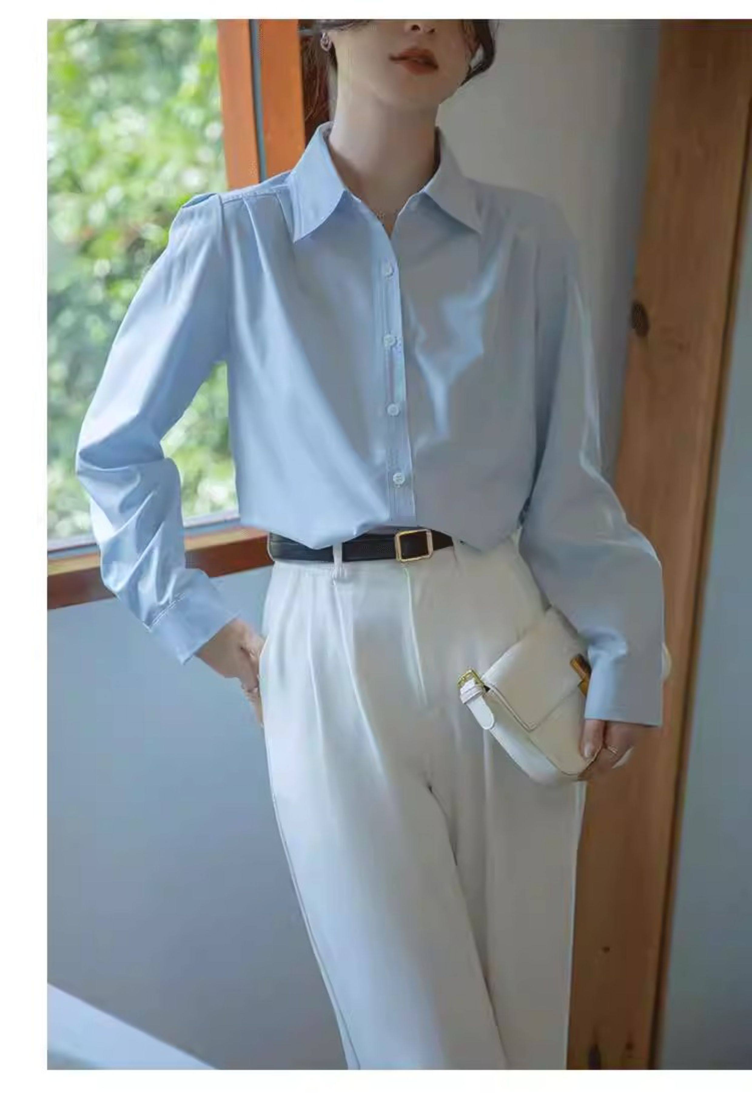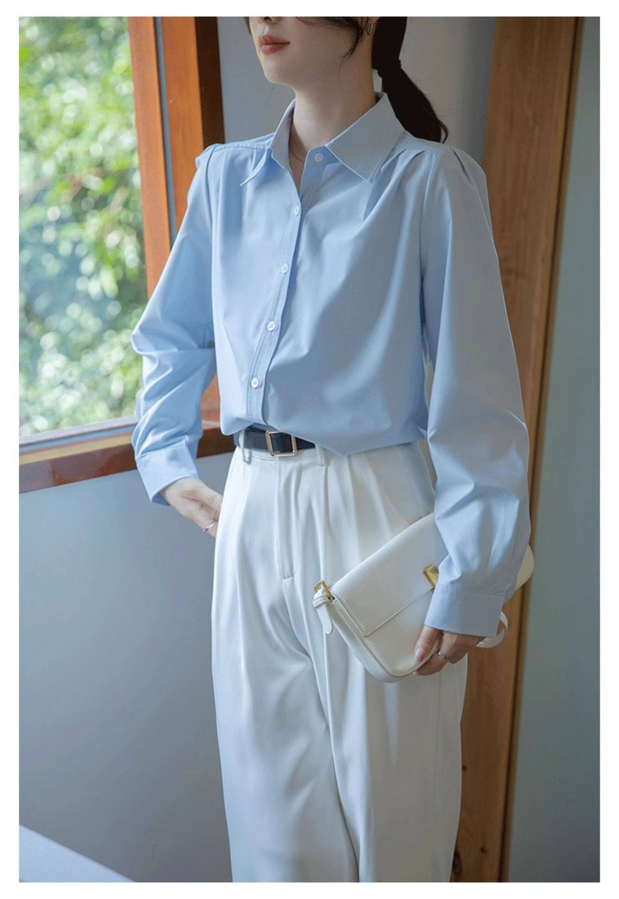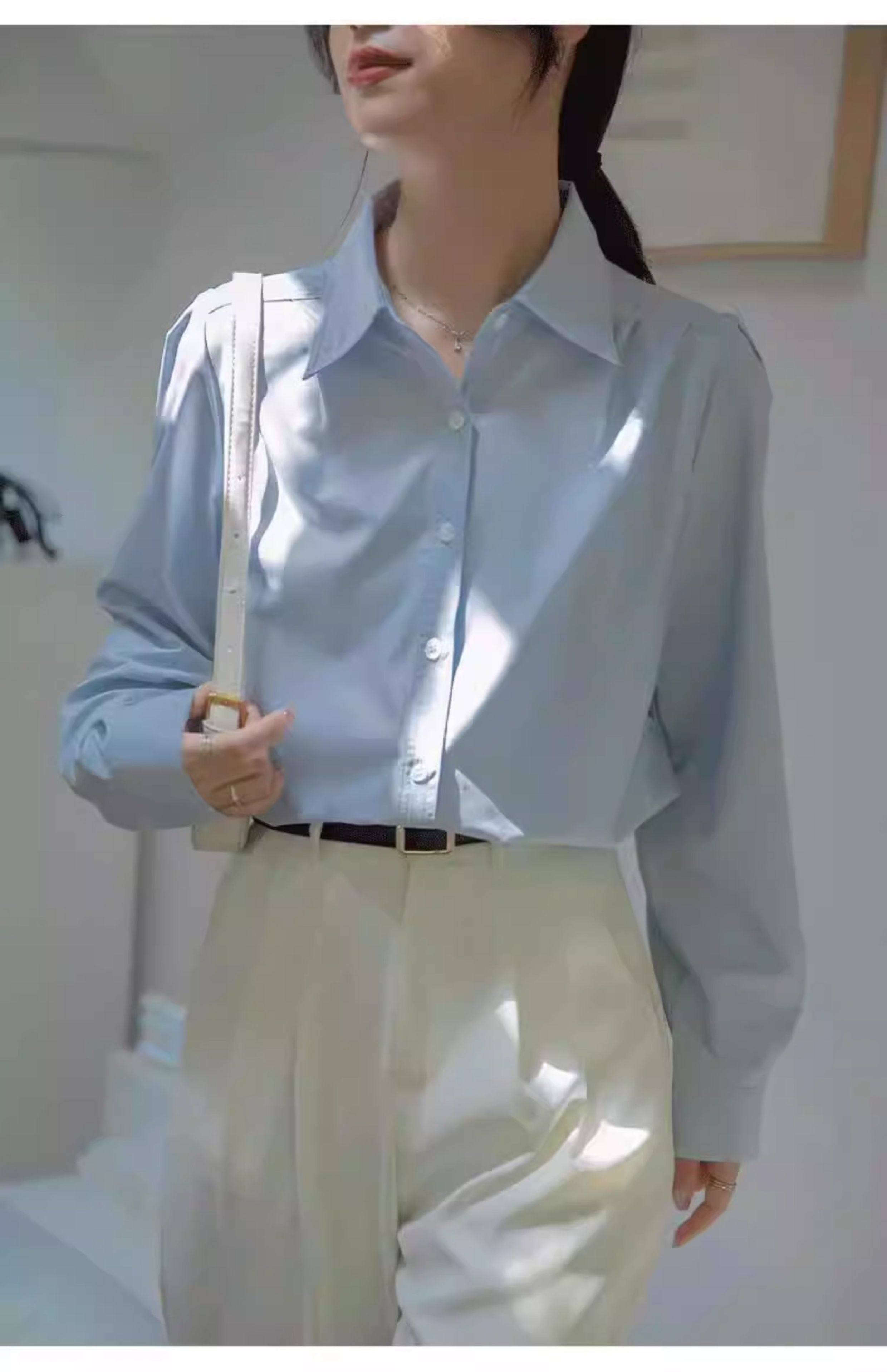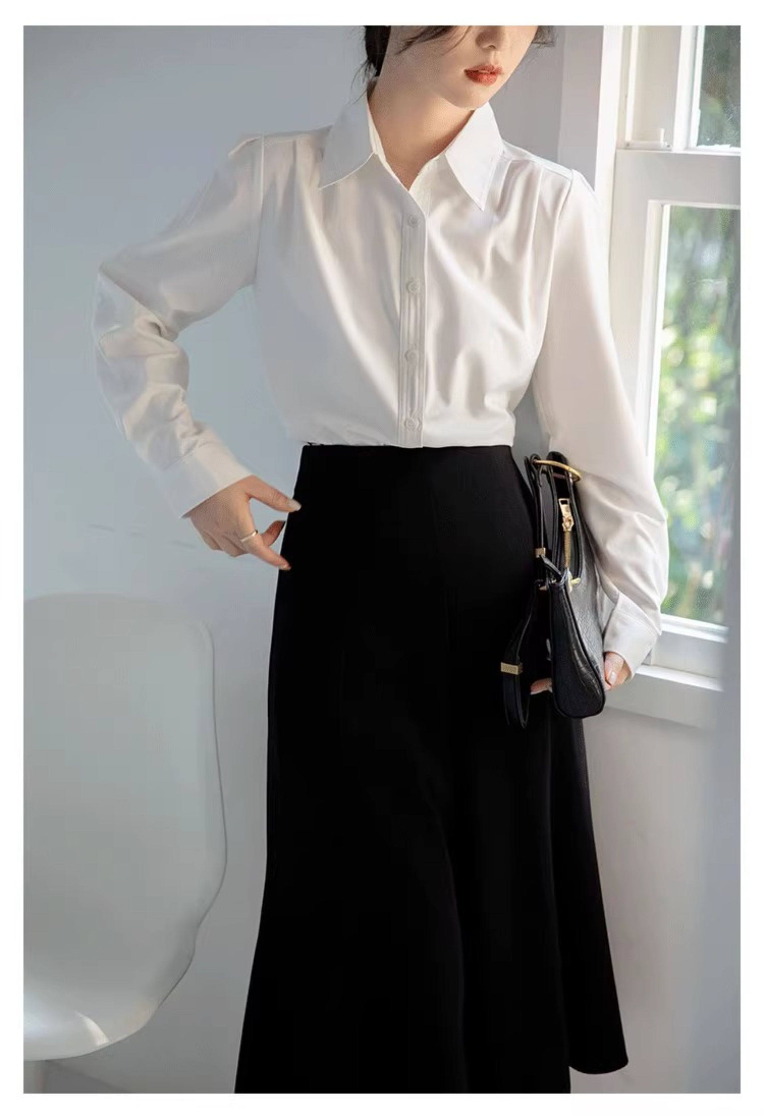 La Chapelle Elegant White Long-Sleeved Shirt for Women, Winter 2026 New Style, High-End Formal Wear, Commuting Professional Shirt