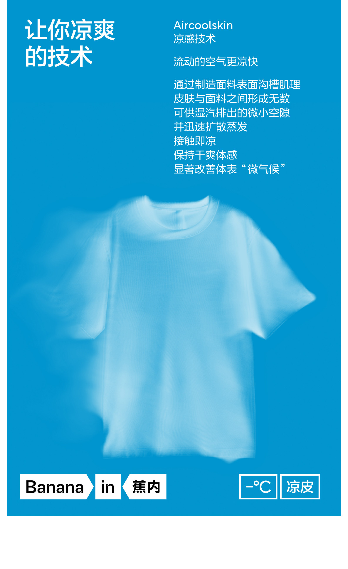 [Same Style as Wang Yibo] Bananain Cool 502 Unisex Cotton-Feel Quick-Drying Functional Men's Short-Sleeve T-Shirt