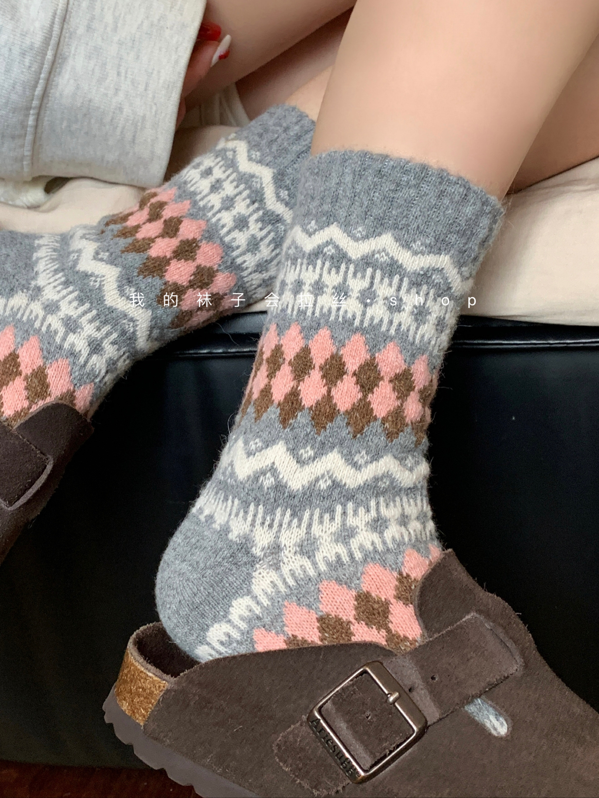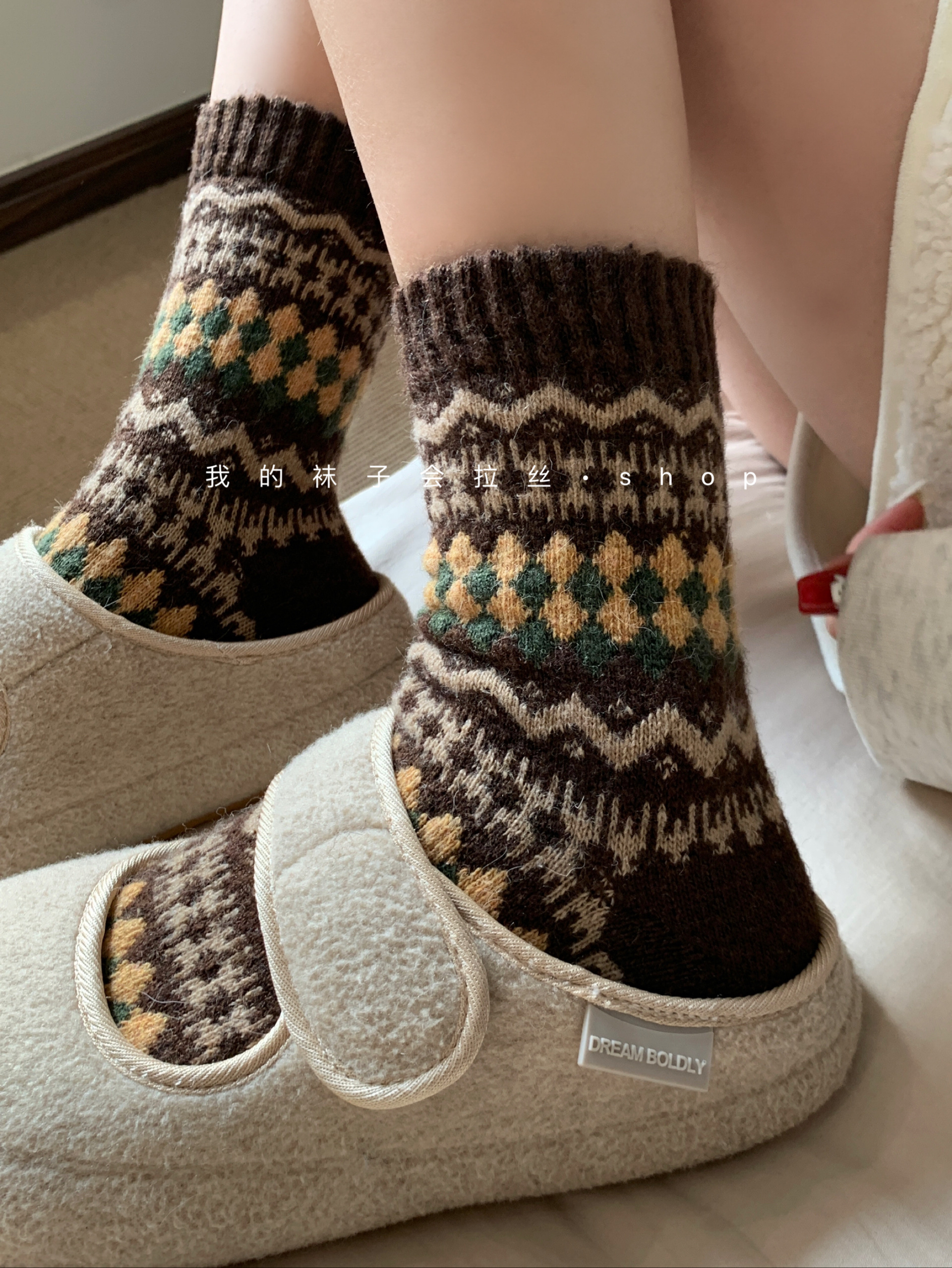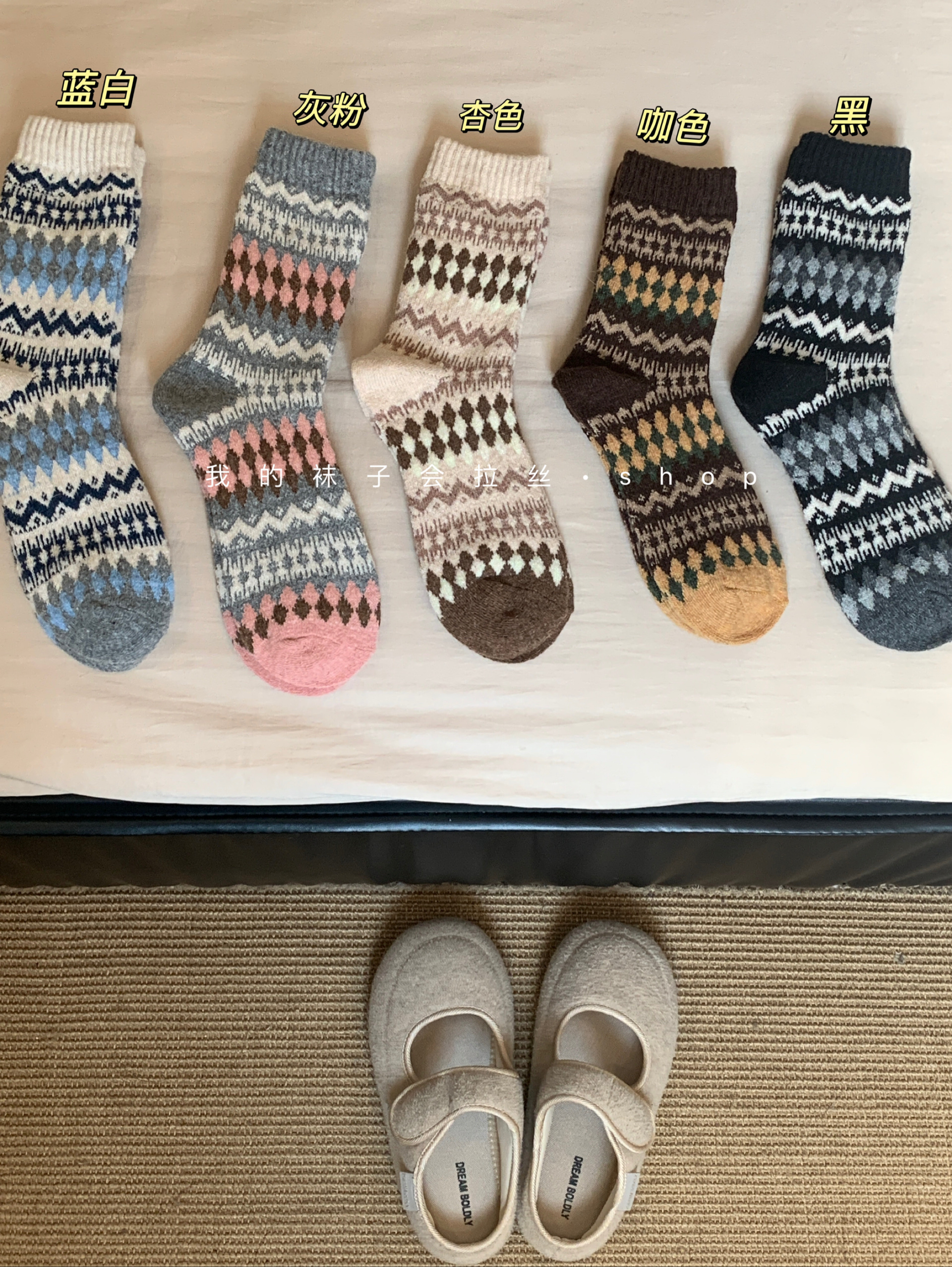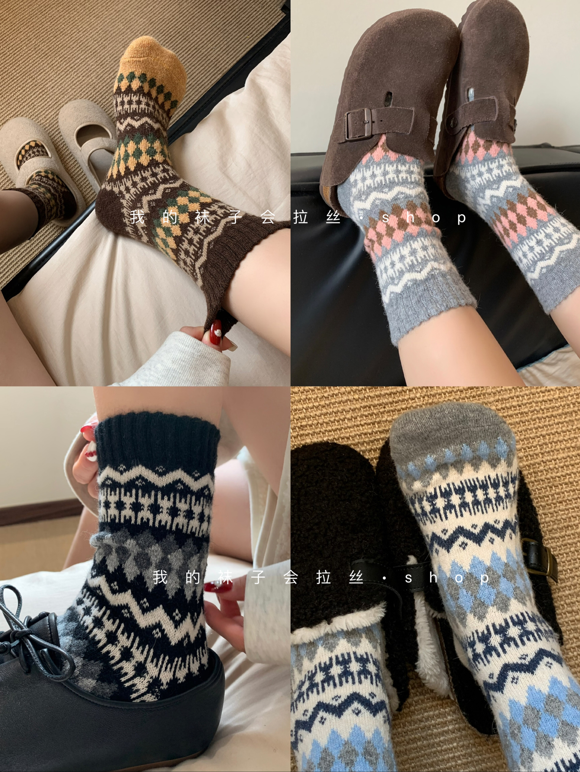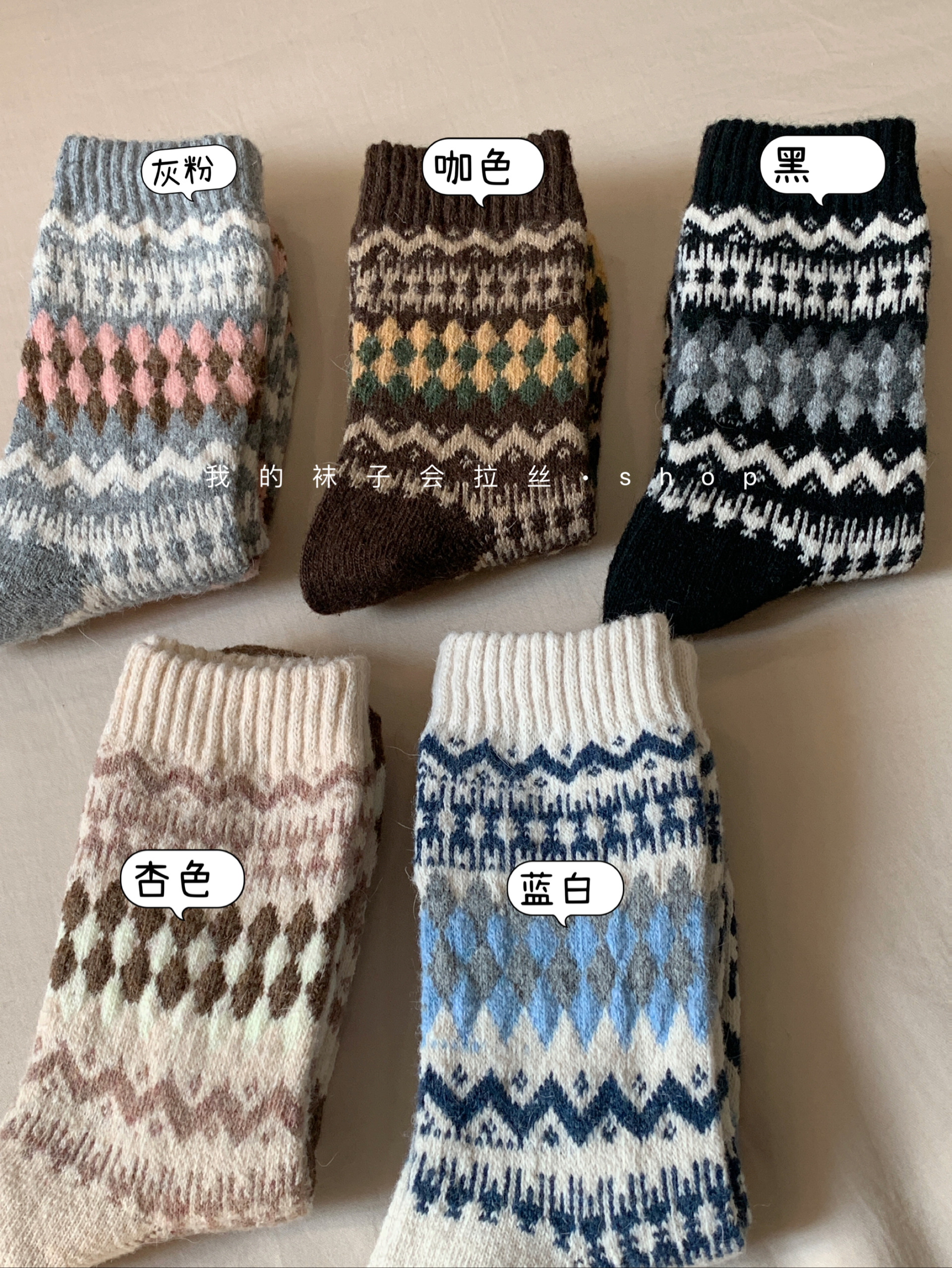5-Color Fair Isle Argyle Autumn and Winter Warm Japanese Retro Ethnic Style Wool Socks (111)
