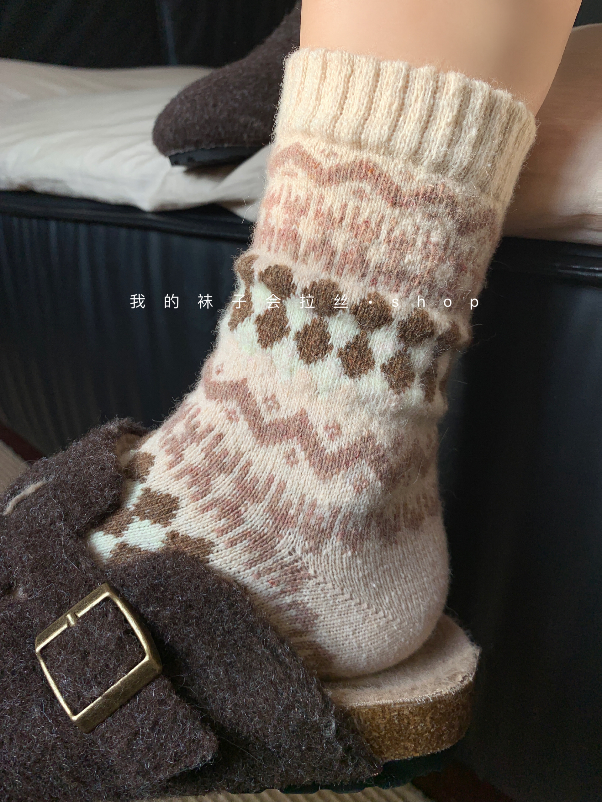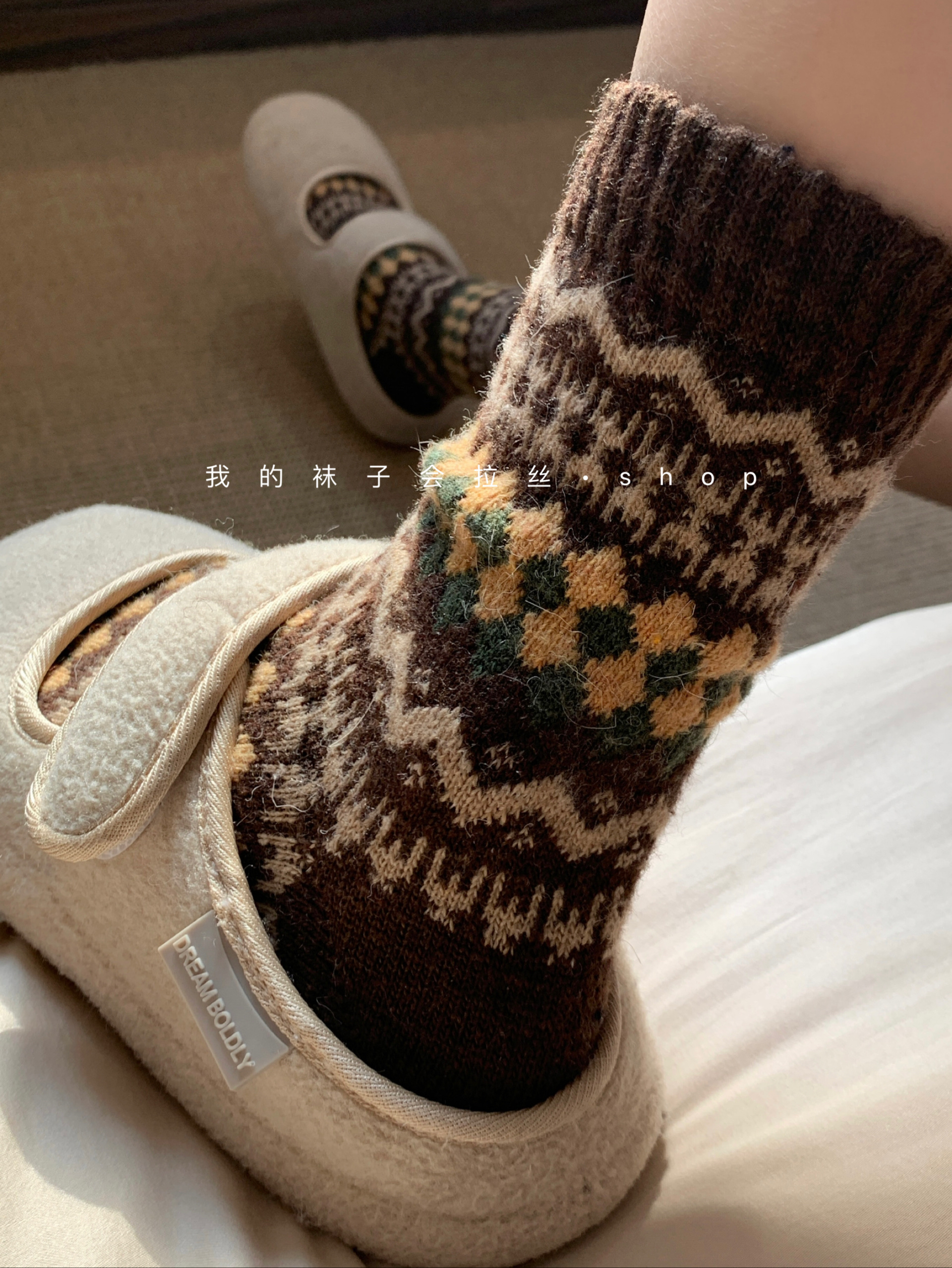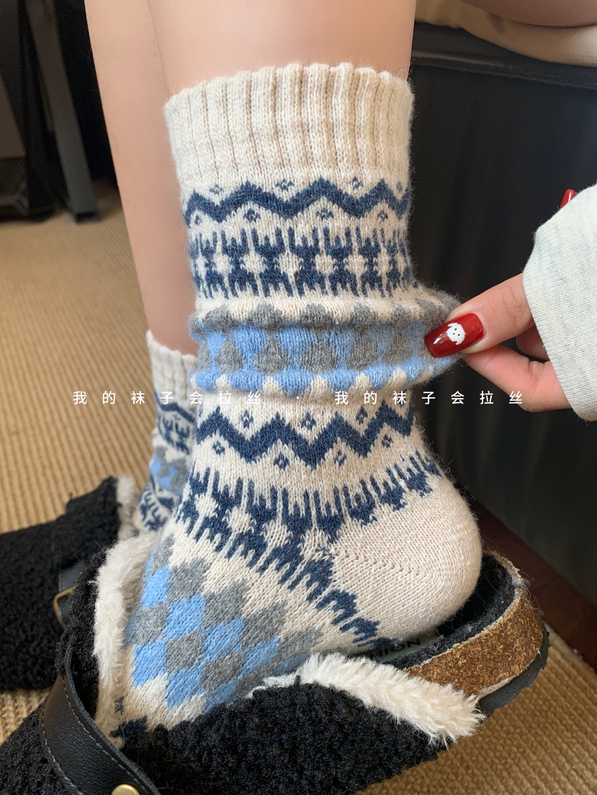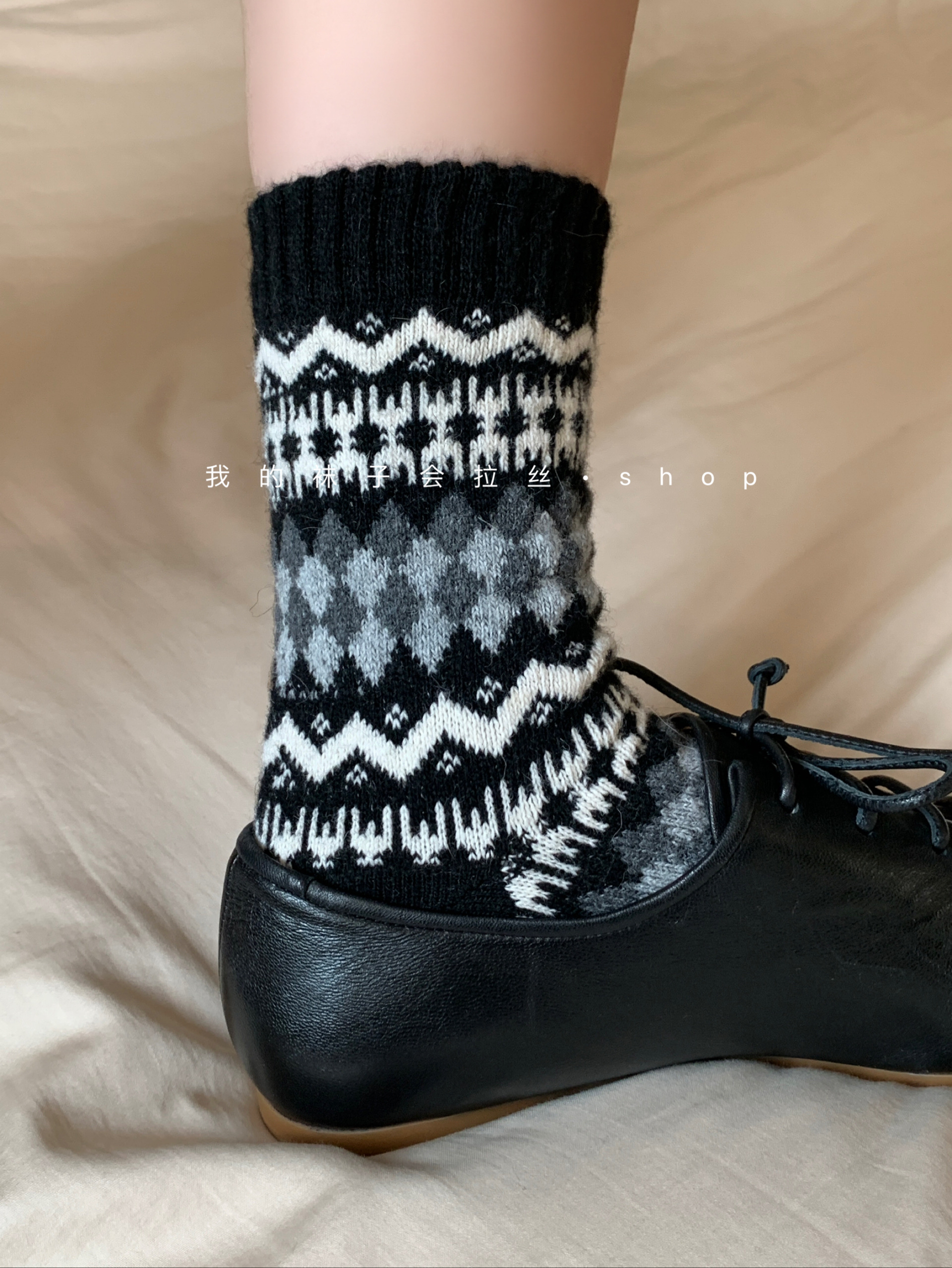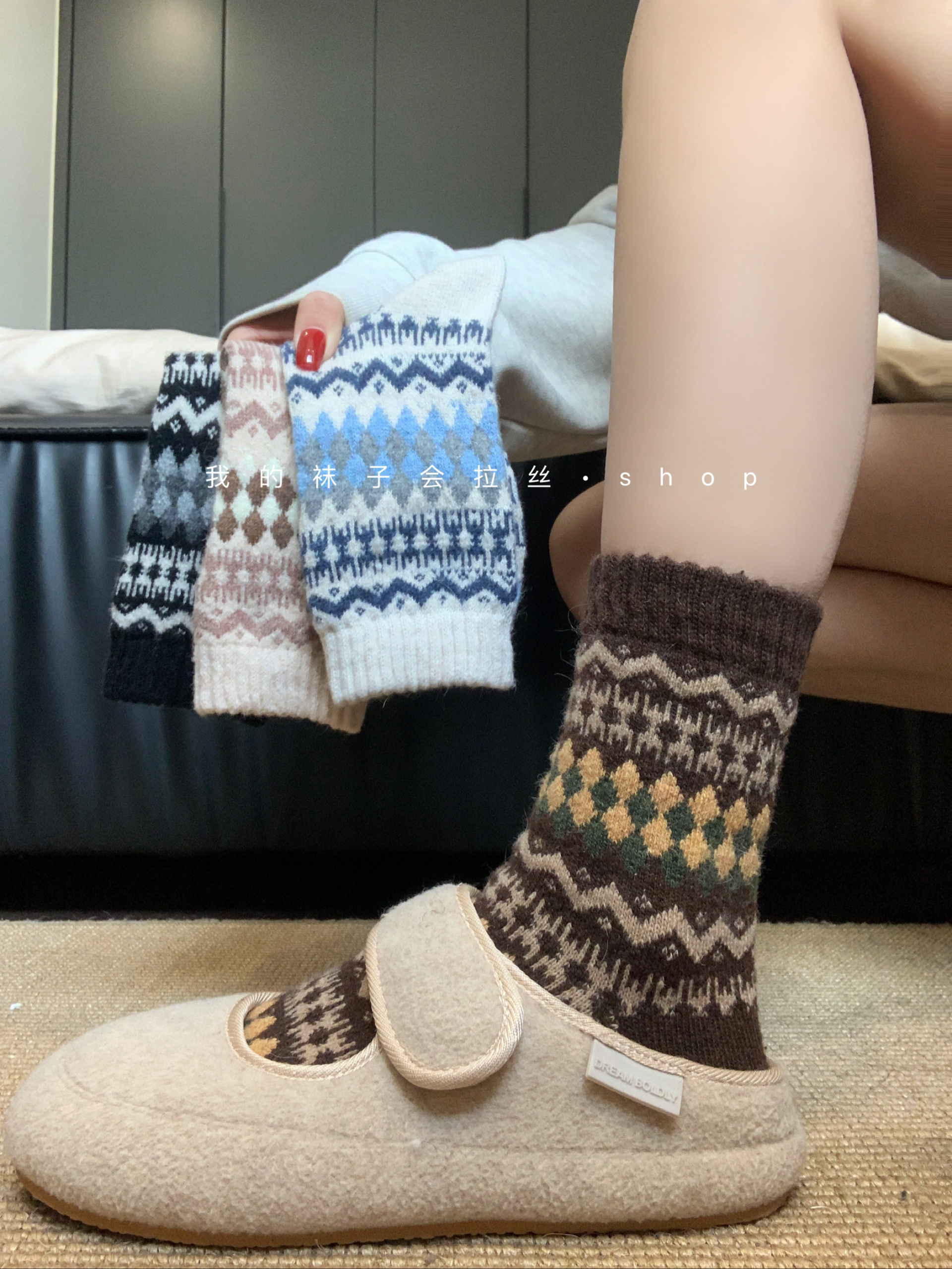 5-Color Fair Isle Argyle Autumn and Winter Warm Japanese Retro Ethnic Style Wool Socks (111)