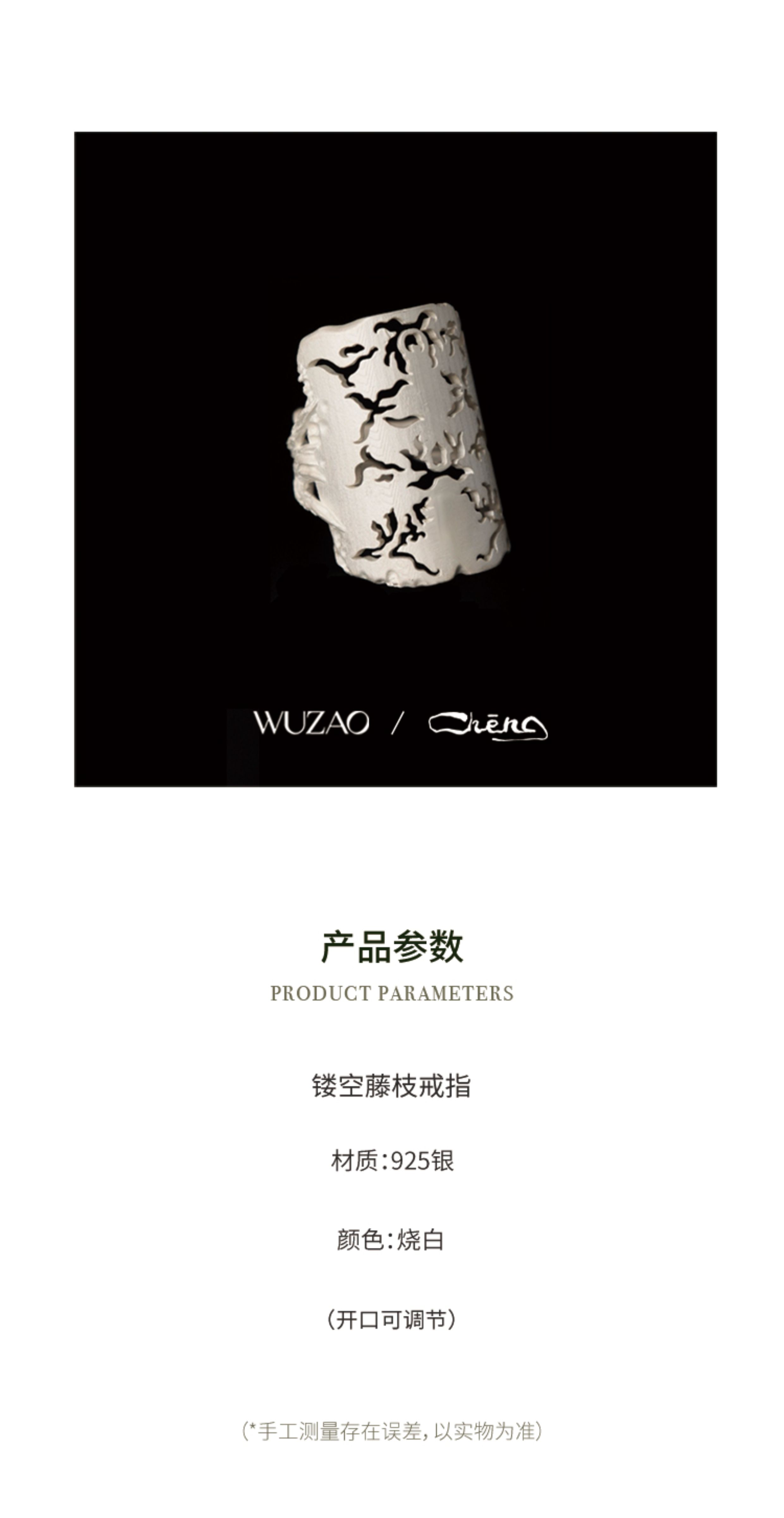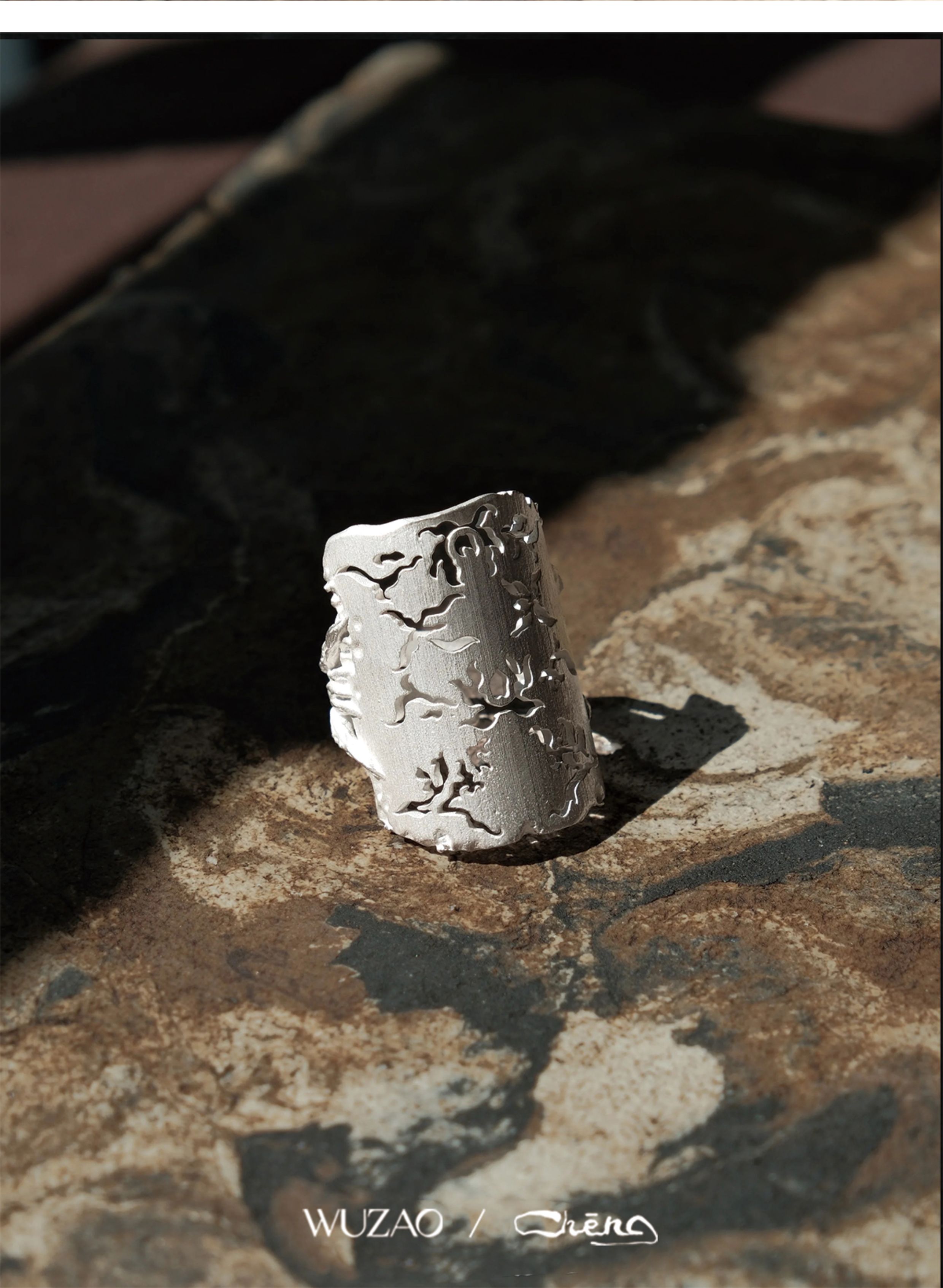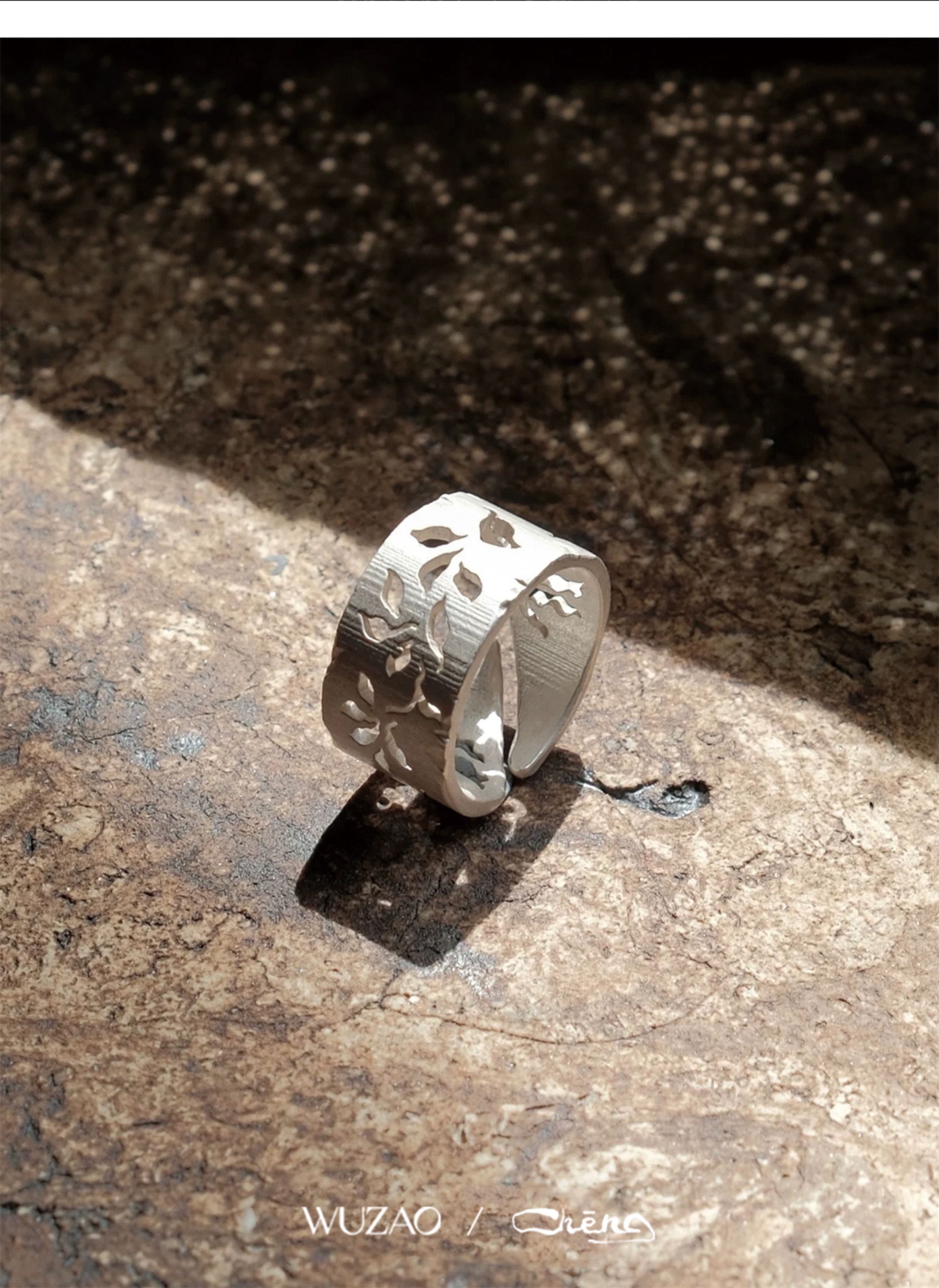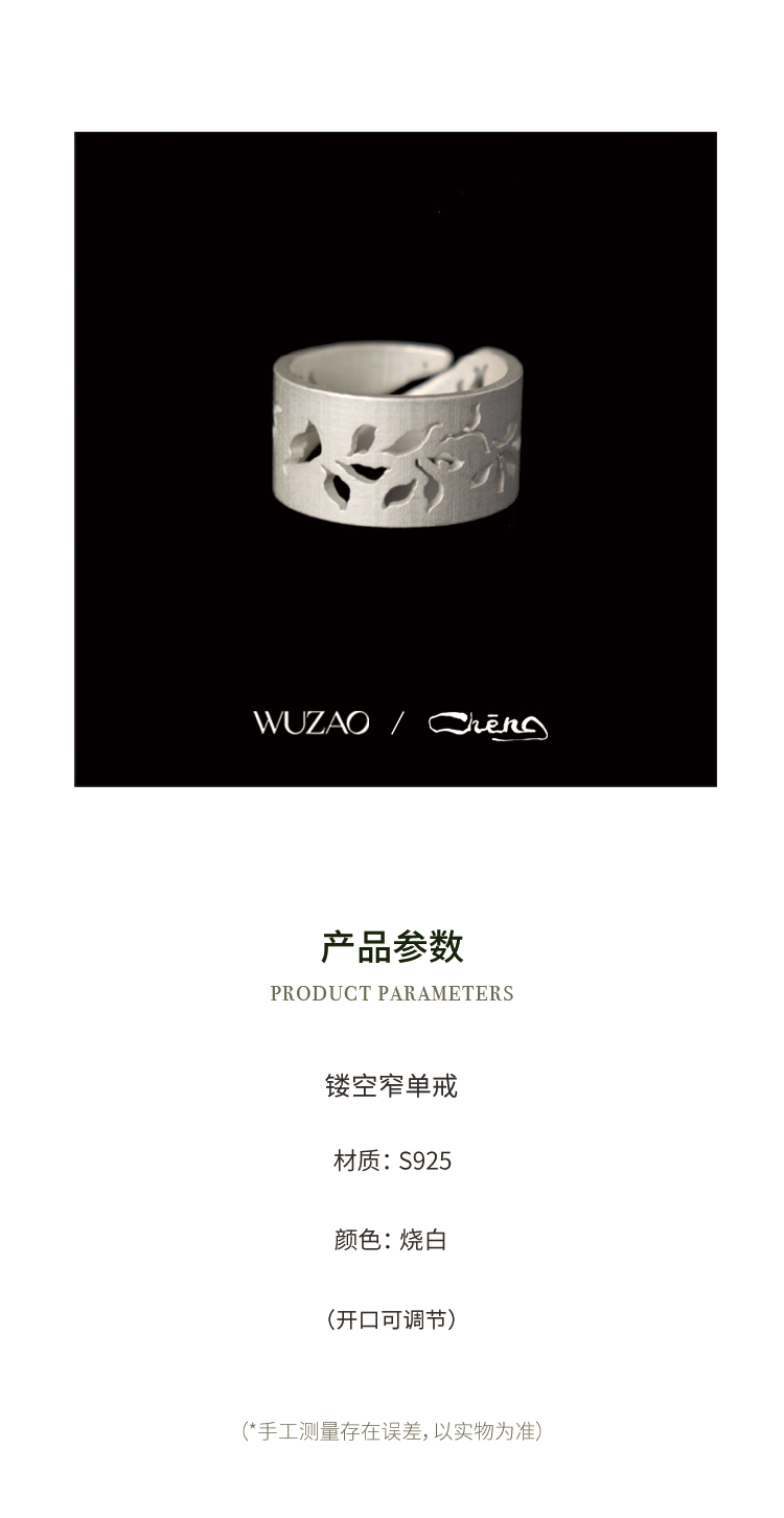 Zhencheng Hollow Narrow Single Ring Rattan Branch Ring 925 Silver Three-Dimensional Carved Open Flower Design Jewelry Birthday Gift