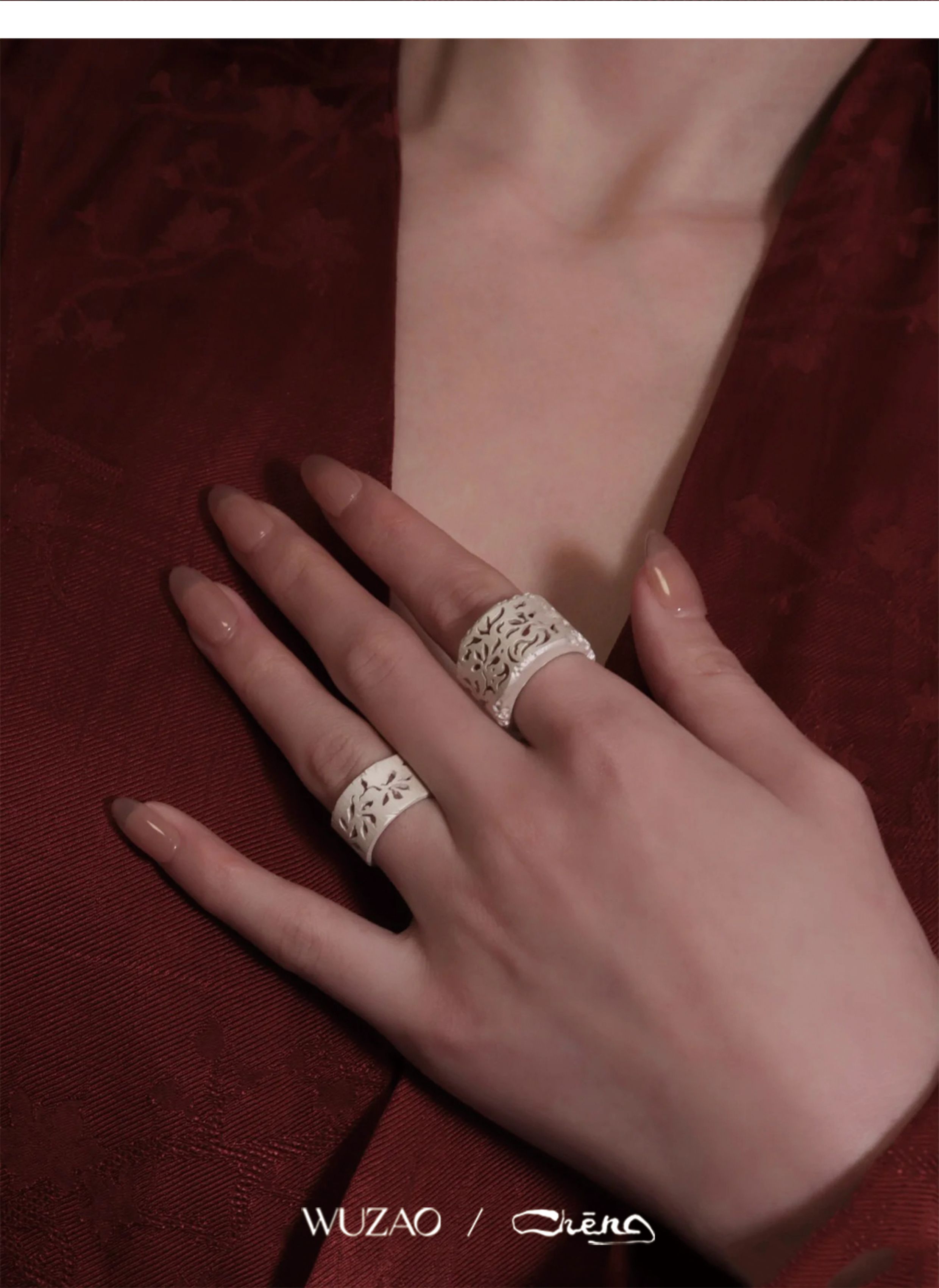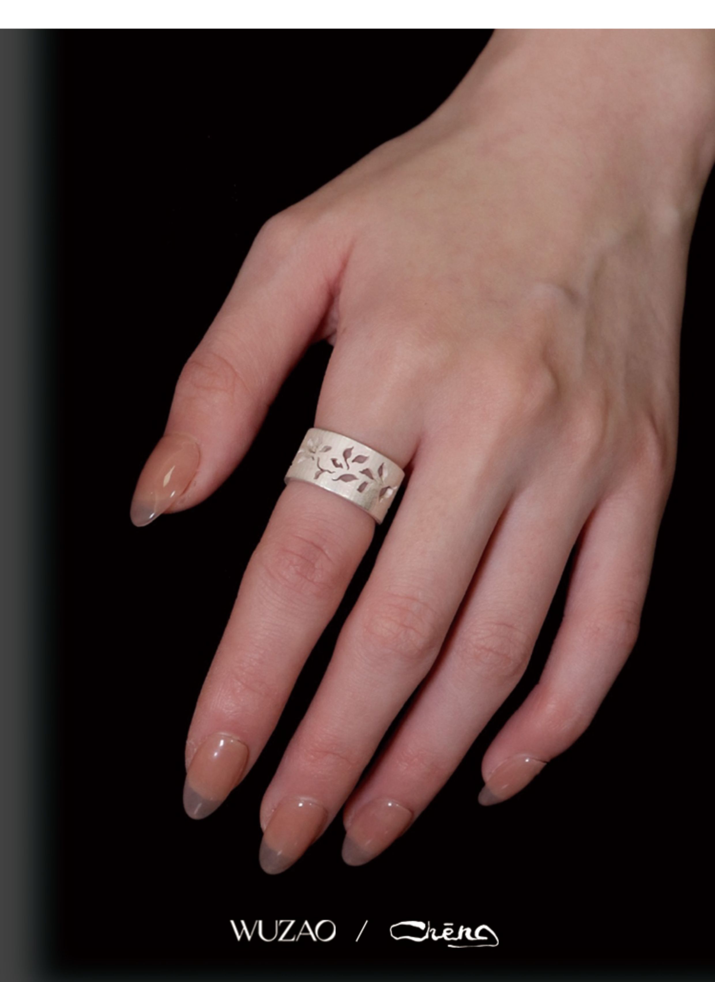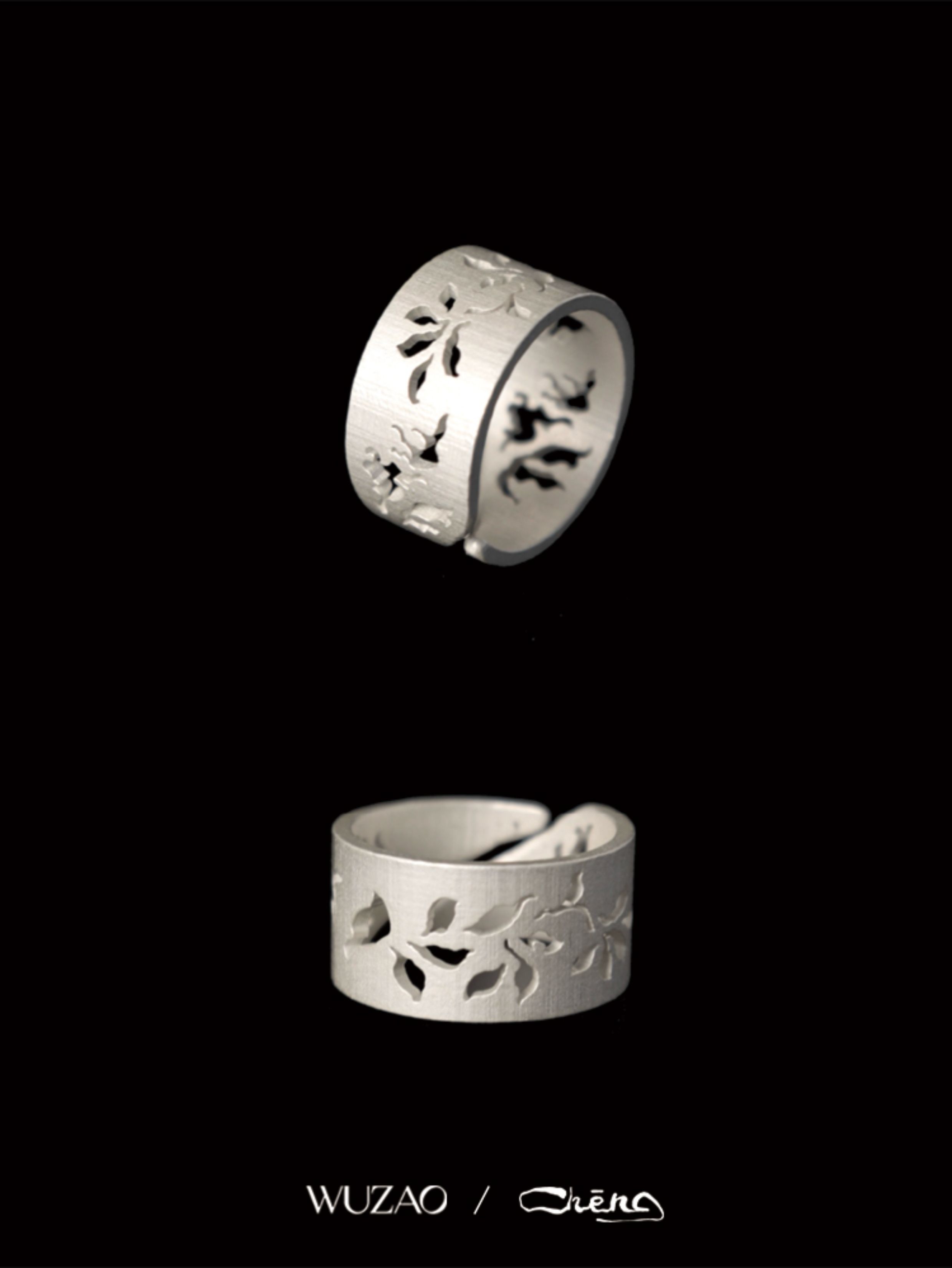 Zhencheng Hollow Narrow Single Ring Rattan Branch Ring 925 Silver Three-Dimensional Carved Open Flower Design Jewelry Birthday Gift