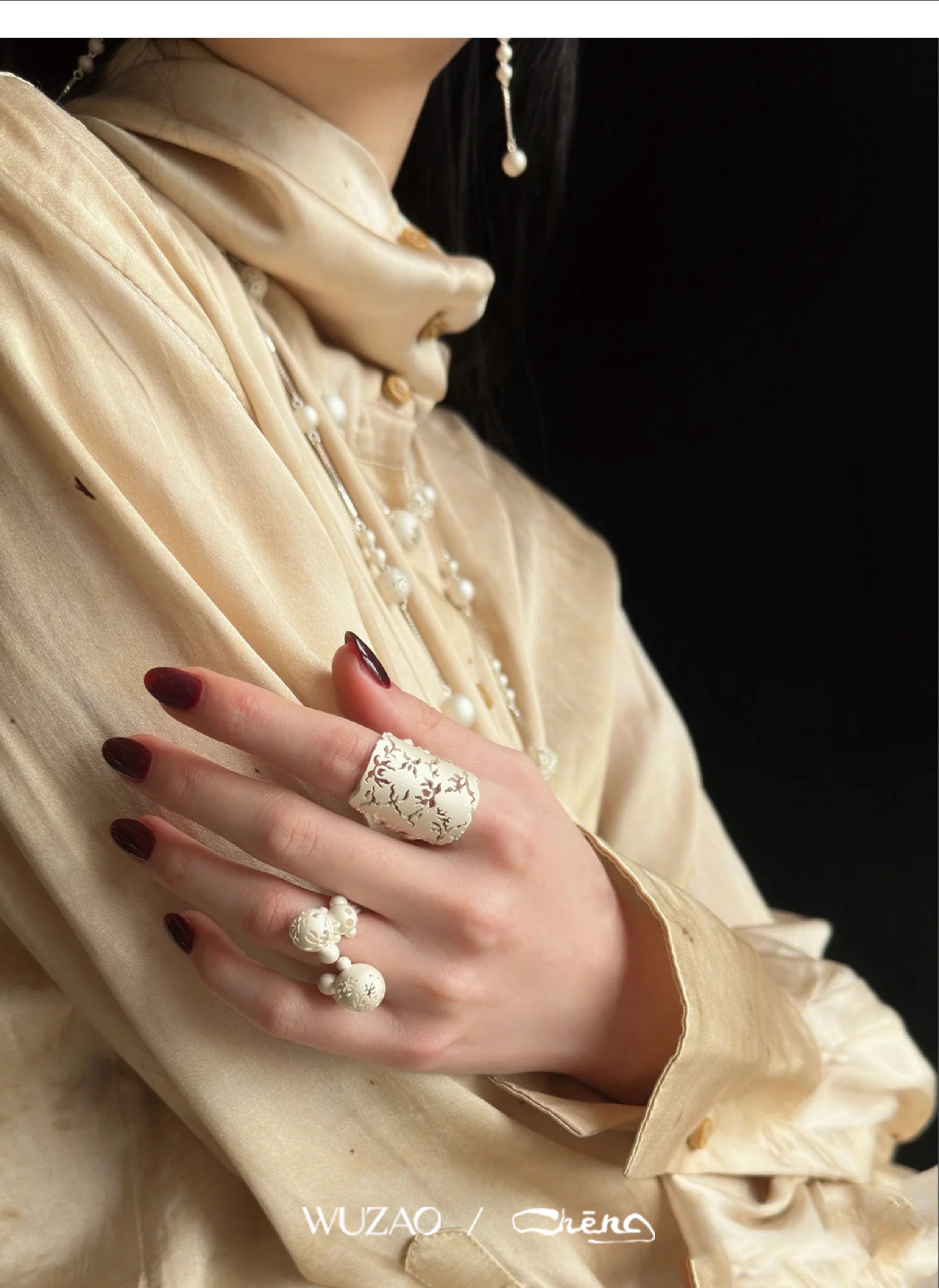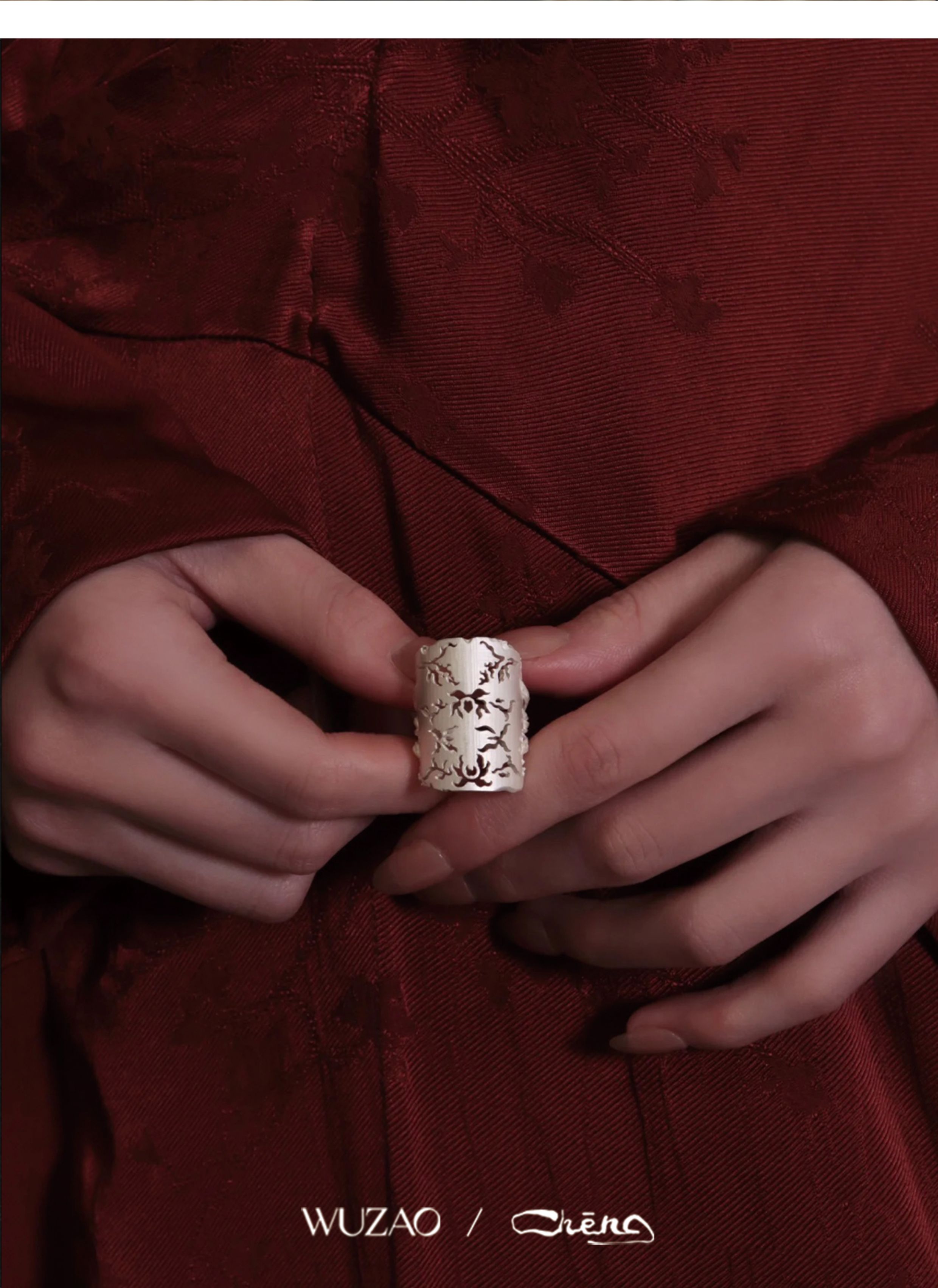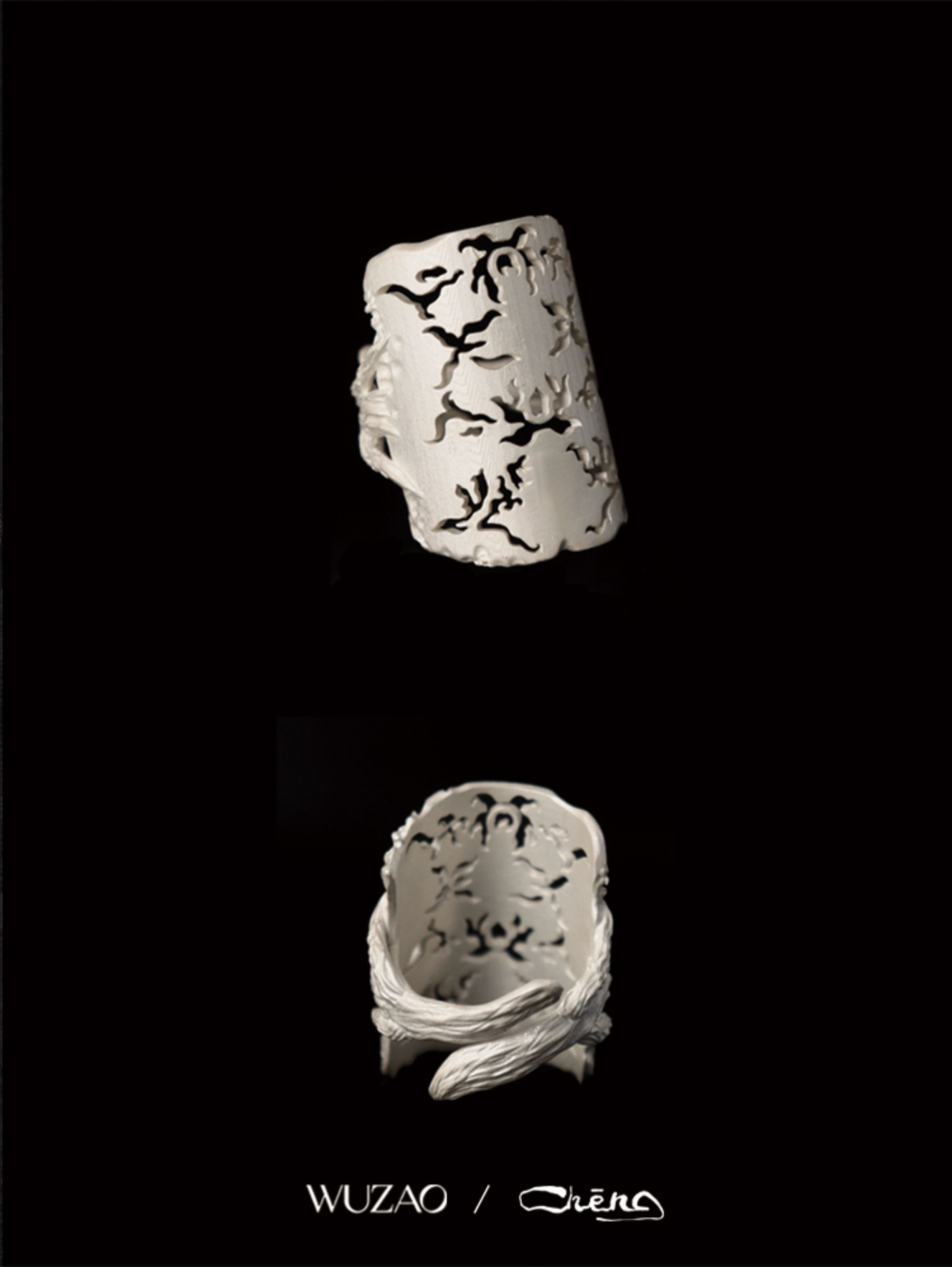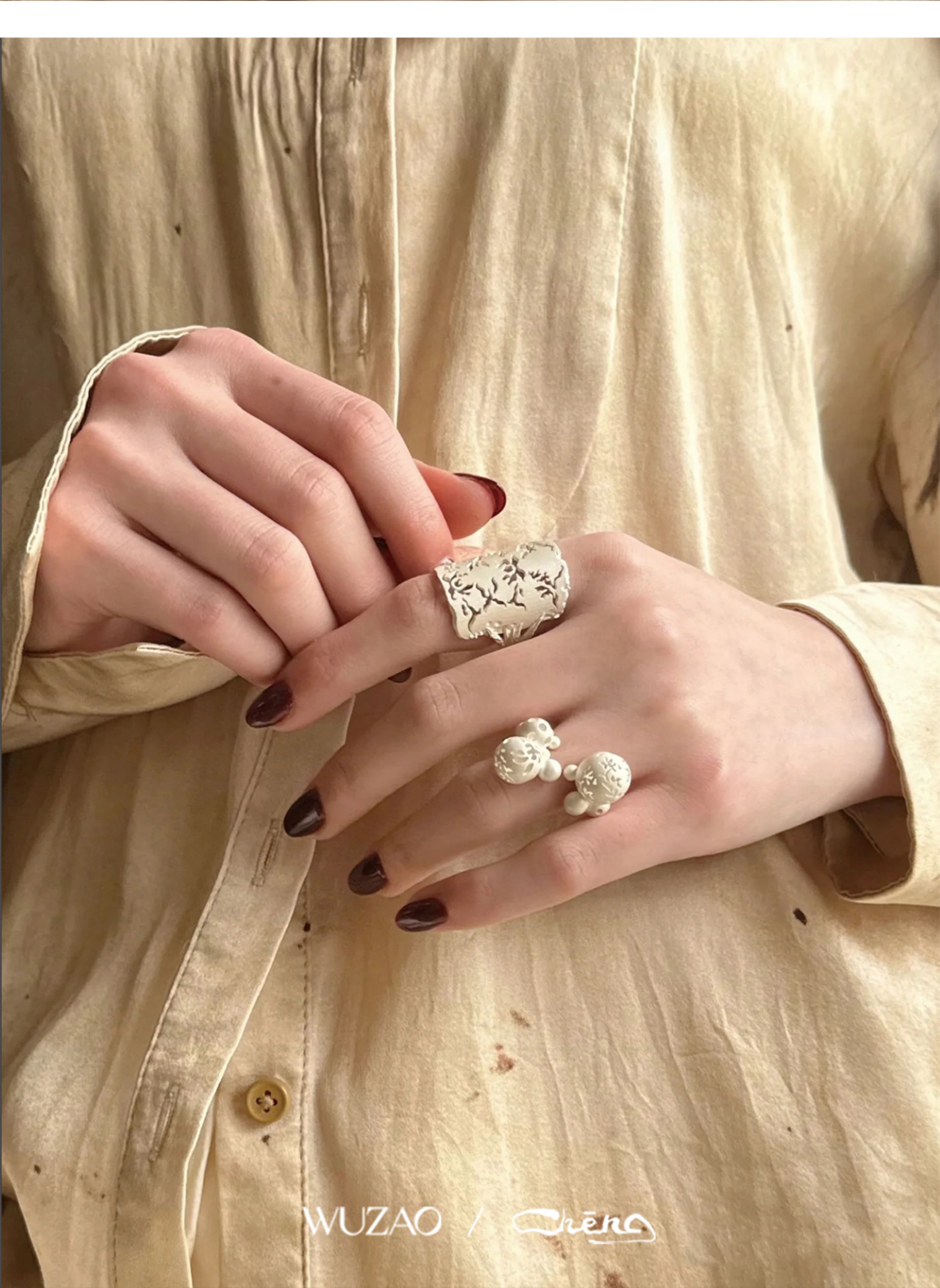 Zhencheng Hollow Narrow Single Ring Rattan Branch Ring 925 Silver Three-Dimensional Carved Open Flower Design Jewelry Birthday Gift