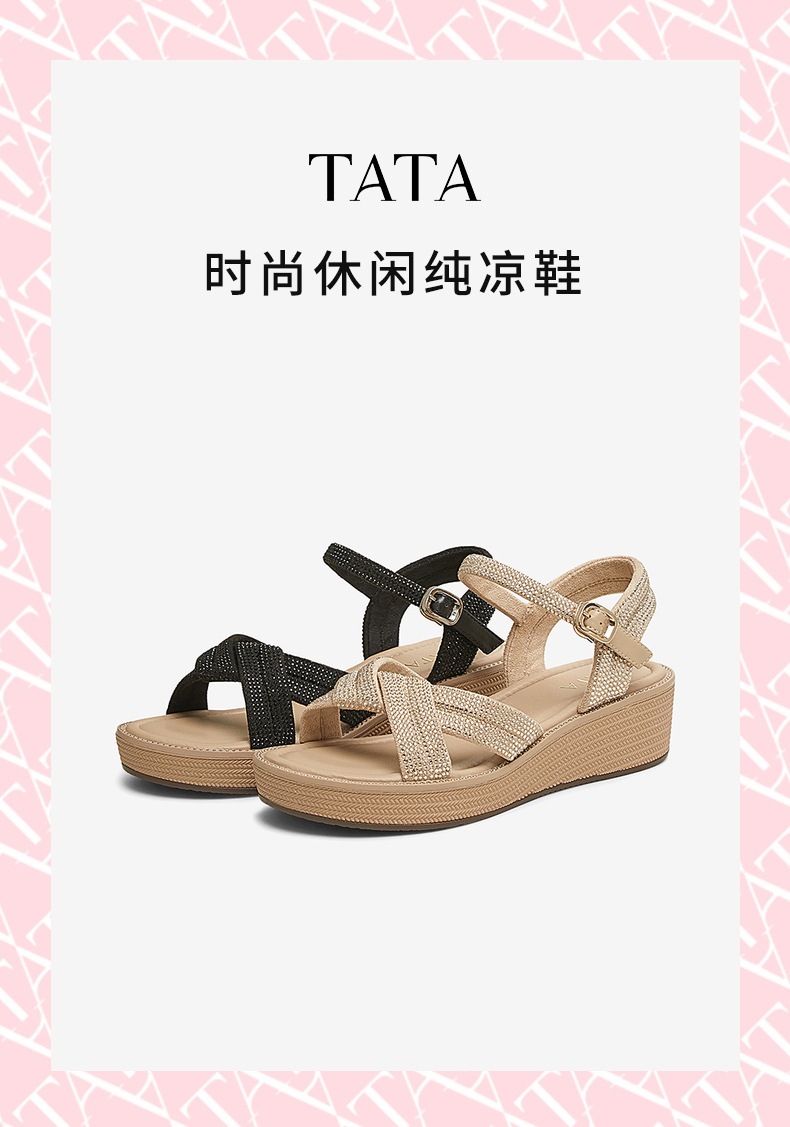 Tata Casual Resort Style Wedge Sandals Women's Woven Elegant Sandals 2025 Summer New Model Cxp01Bl5