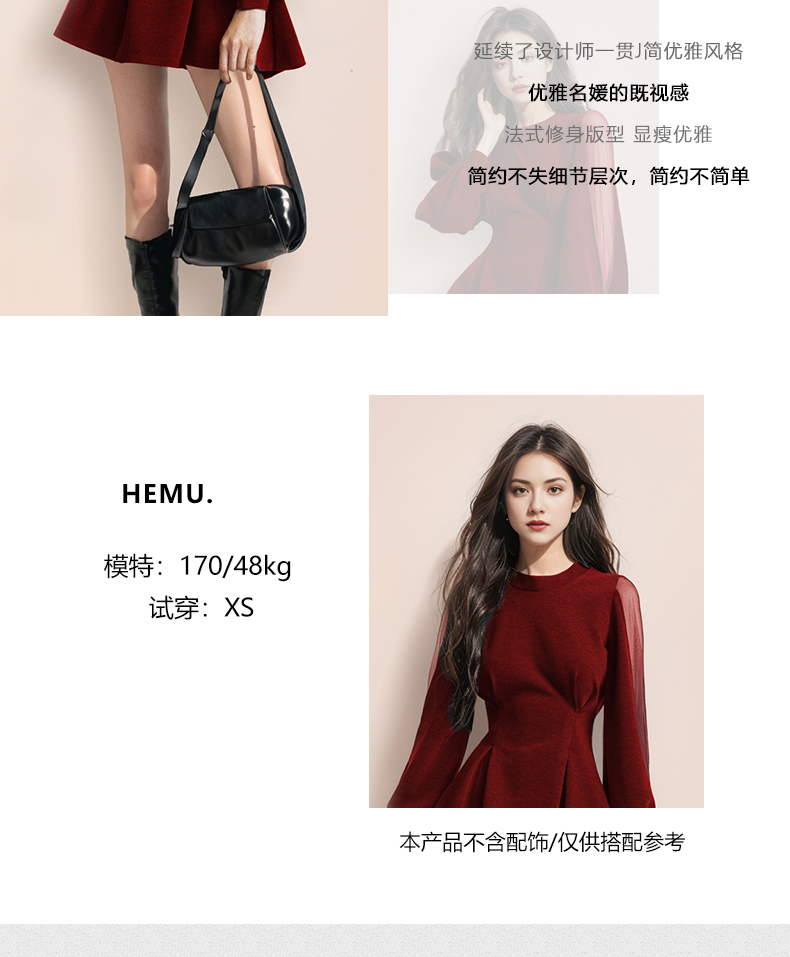 Red Dress for Women, French Engagement Dress, Suitable for Everyday Wear, High-End and Elegant, Miu Style, Christmas Outfit for Autumn and Winter