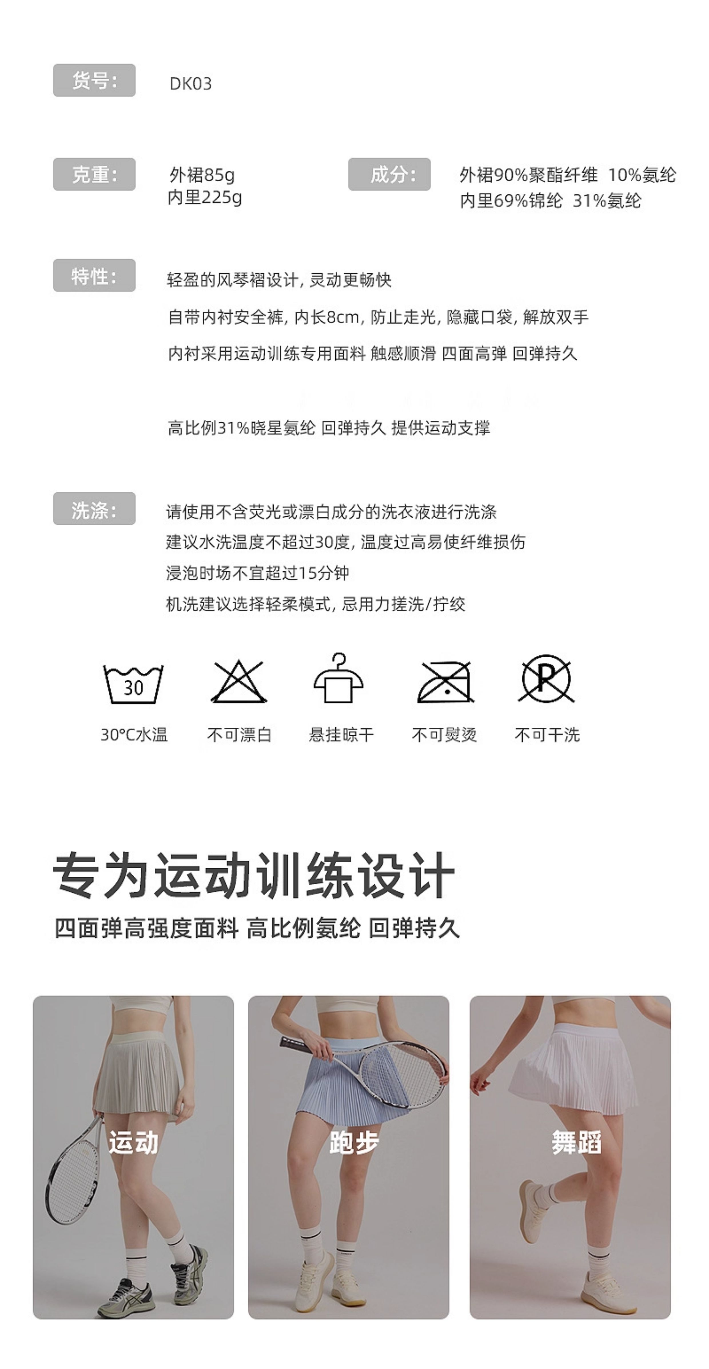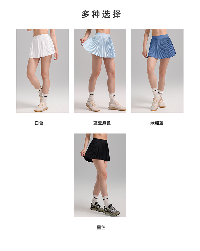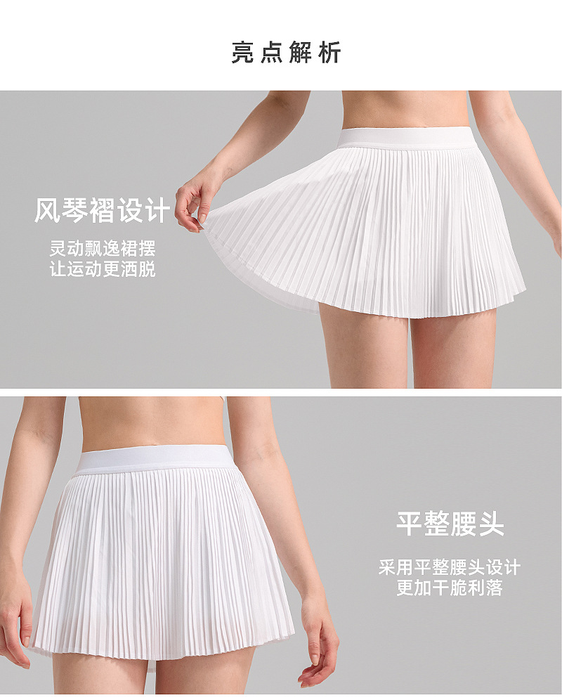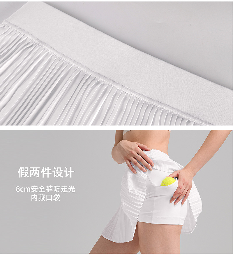 Non-Slip Silicone Thin Fake Two-Piece Anti-Exposure Sports Short Skirt for Women, Breathable, Quick-Drying, Fitness Accordion Pleated Tennis Skirt