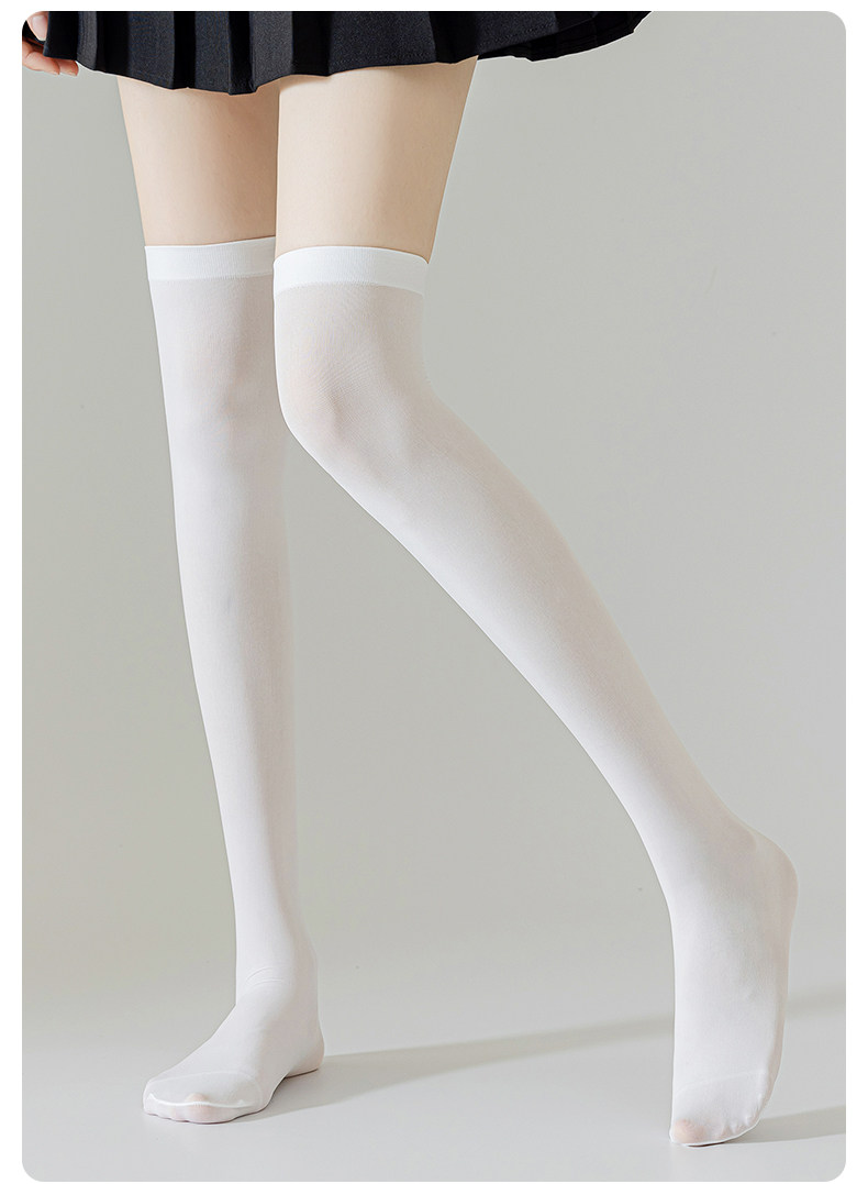 Cat People White Over-The-Knee Socks for Women, Spring and Summer Thin Velvet Japanese Jk Thigh-High Socks, Sexy White Silk Long Socks