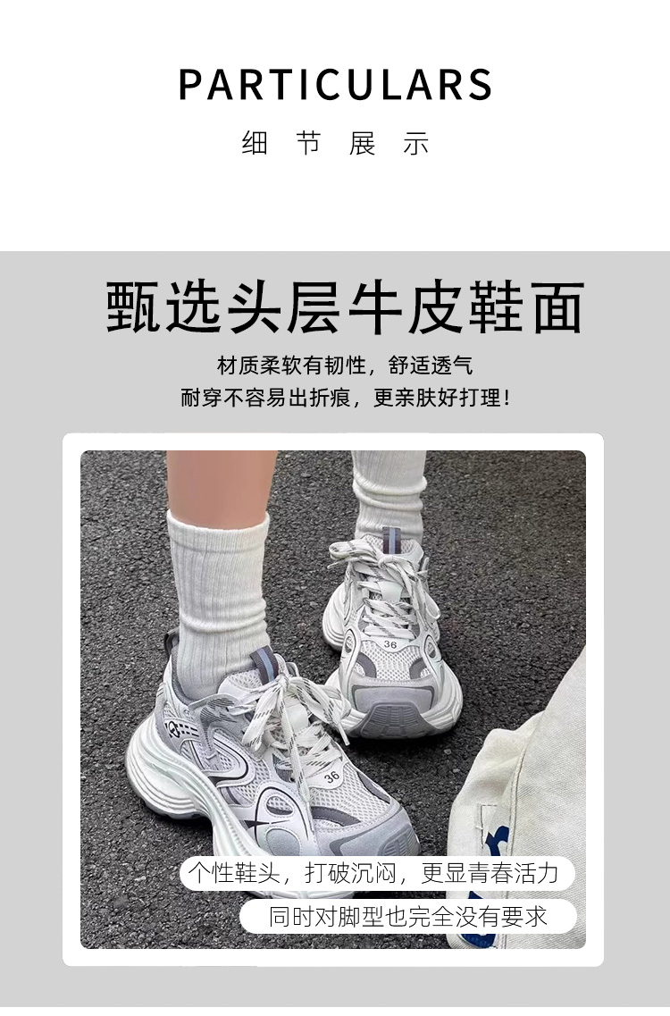 Hong Kong Genuine Leather Thick-Soled Dad Shoes for Women 2025 Spring and Autumn New British Style Round-Toe Mesh Breathable Casual Sneakers