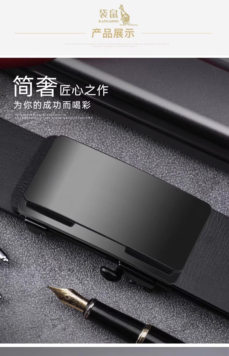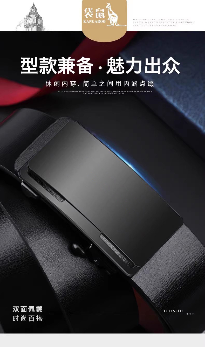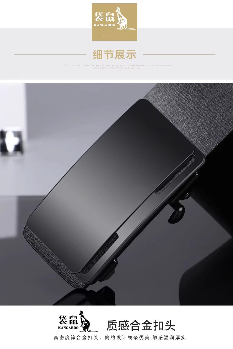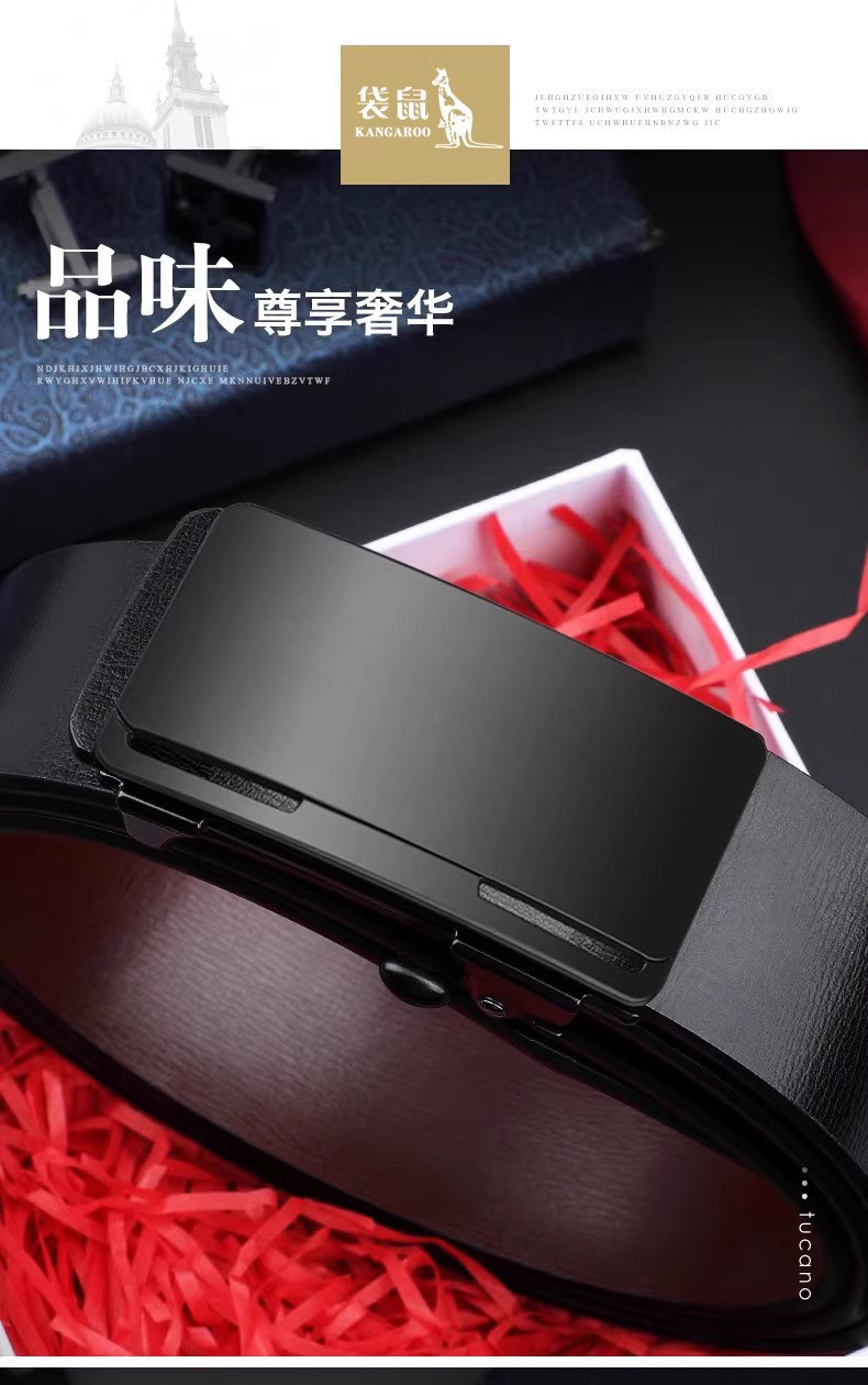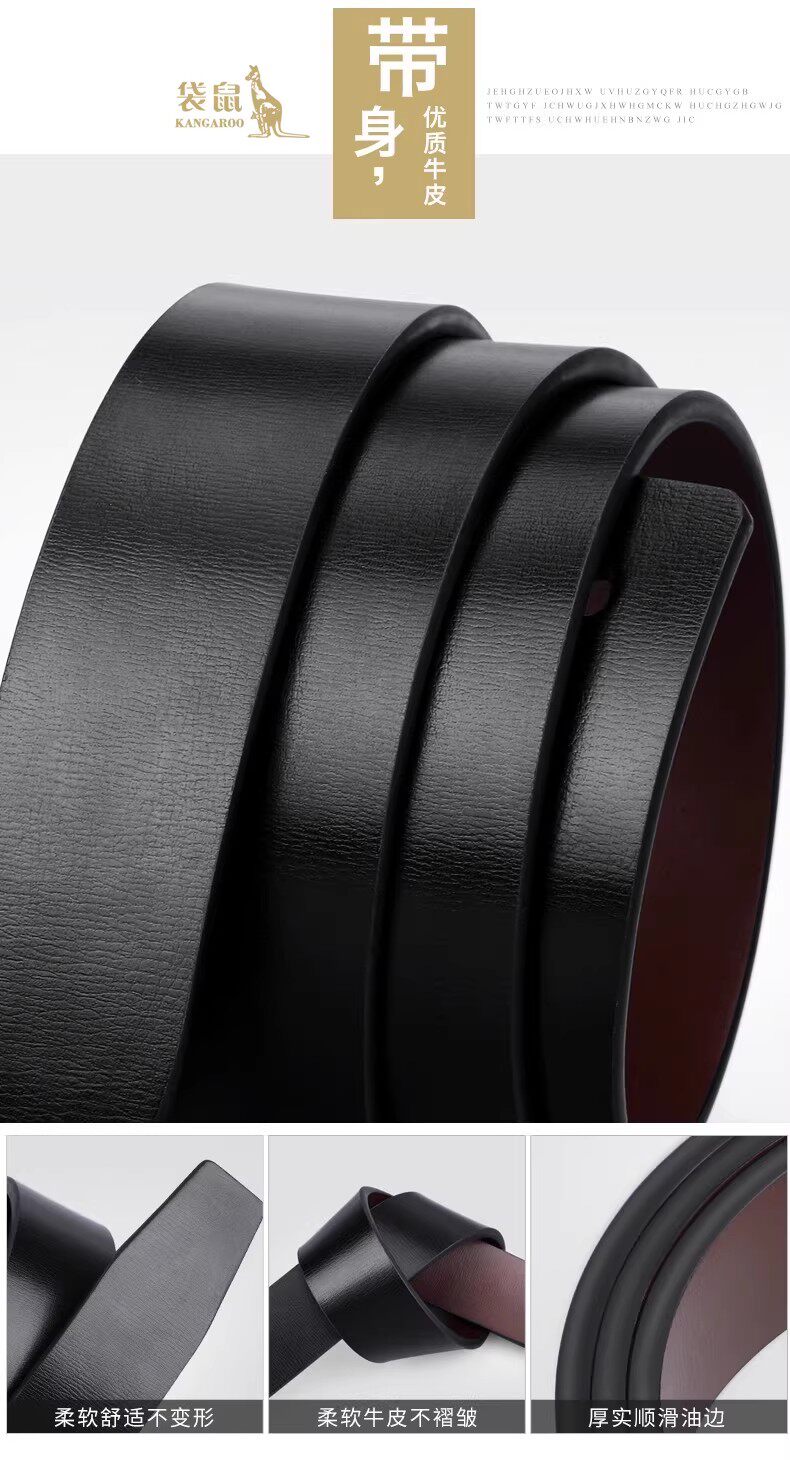 Kangaroo Men's Belt Genuine Leather Toothless Automatic Buckle Pure Cowhide Casual Brand Trendy Belt Luxury Brand