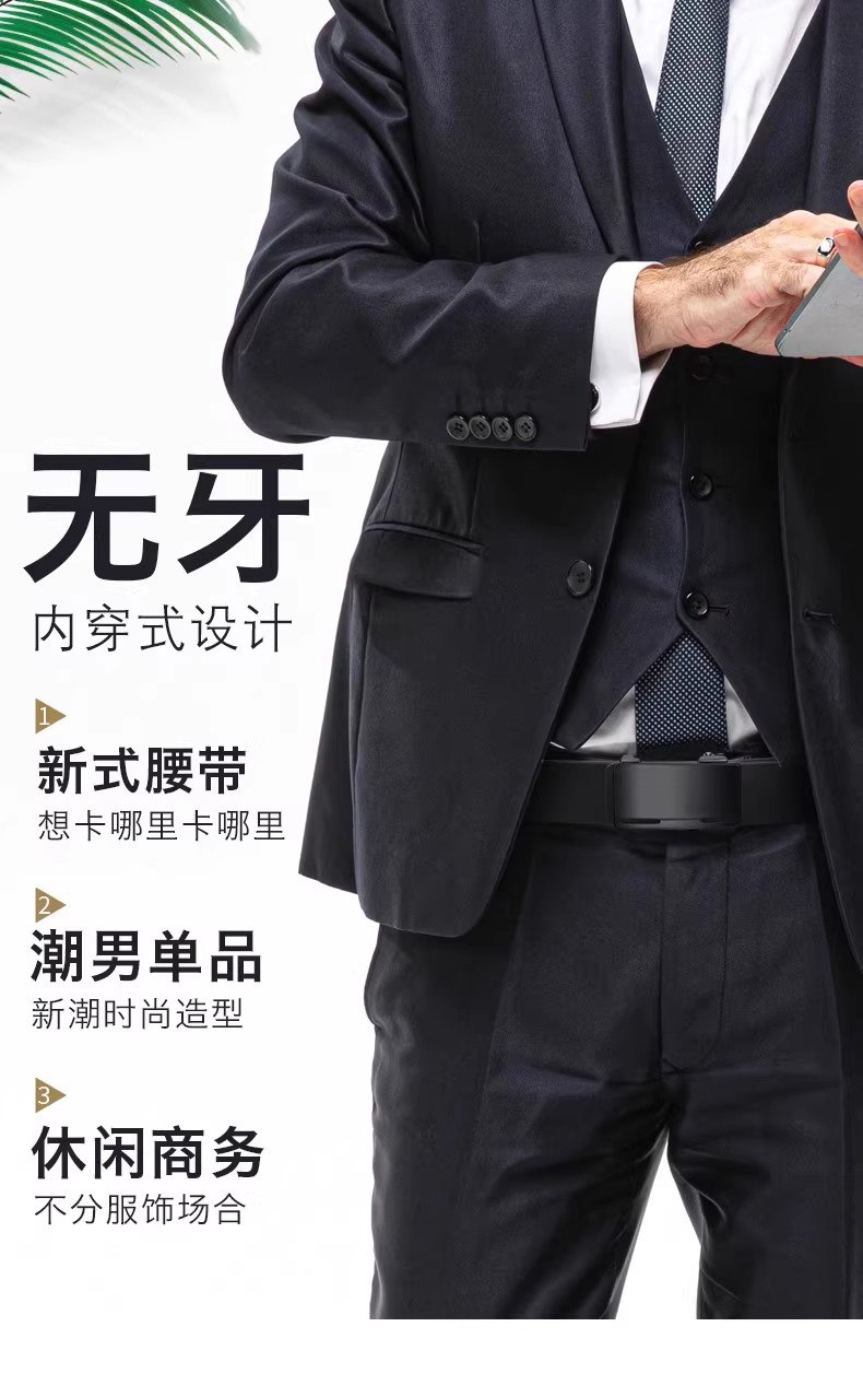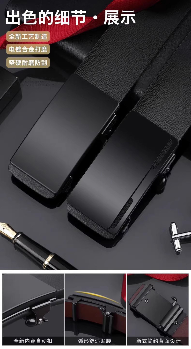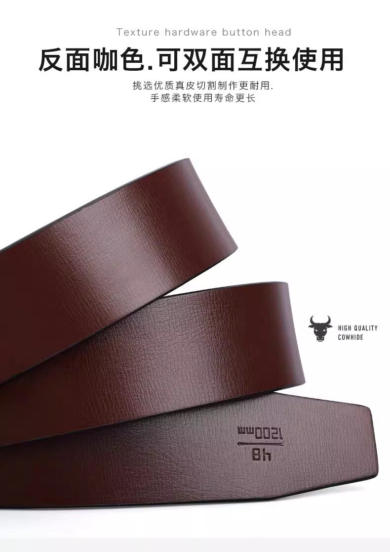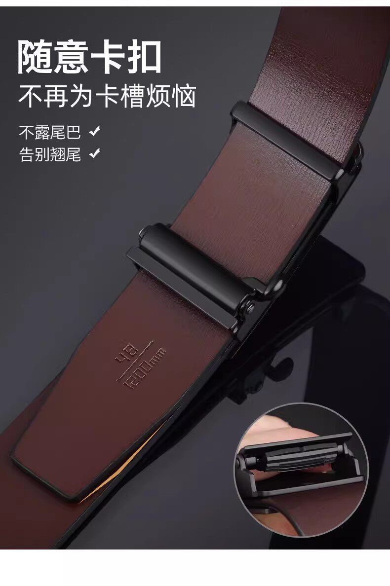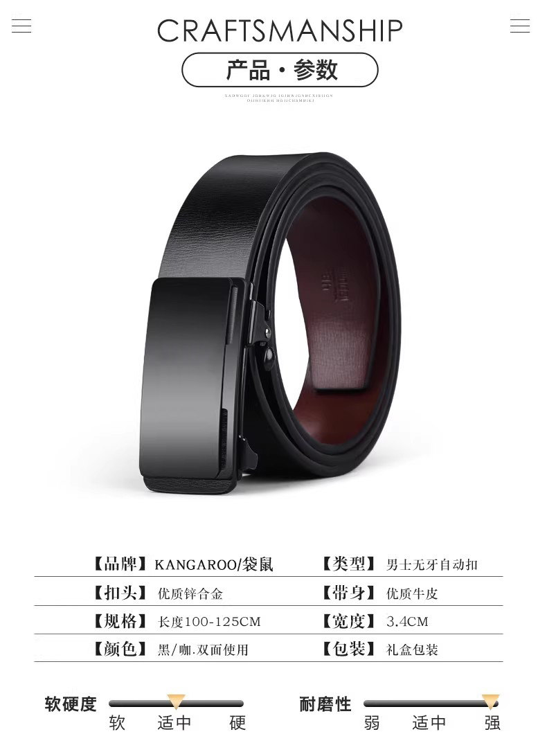 Kangaroo Men's Belt Genuine Leather Toothless Automatic Buckle Pure Cowhide Casual Brand Trendy Belt Luxury Brand