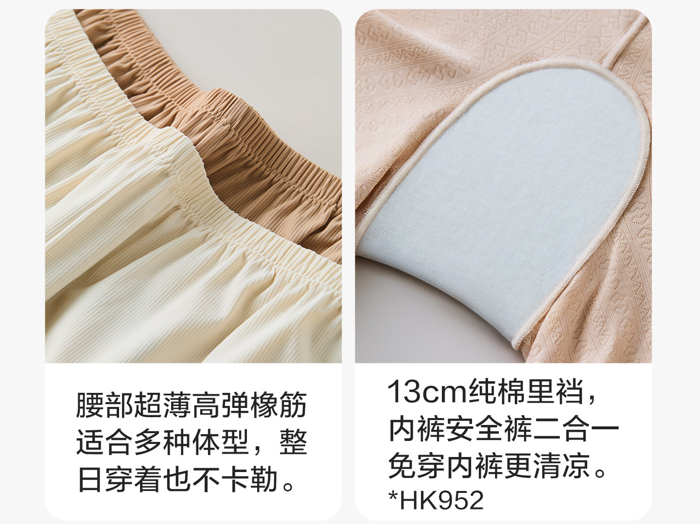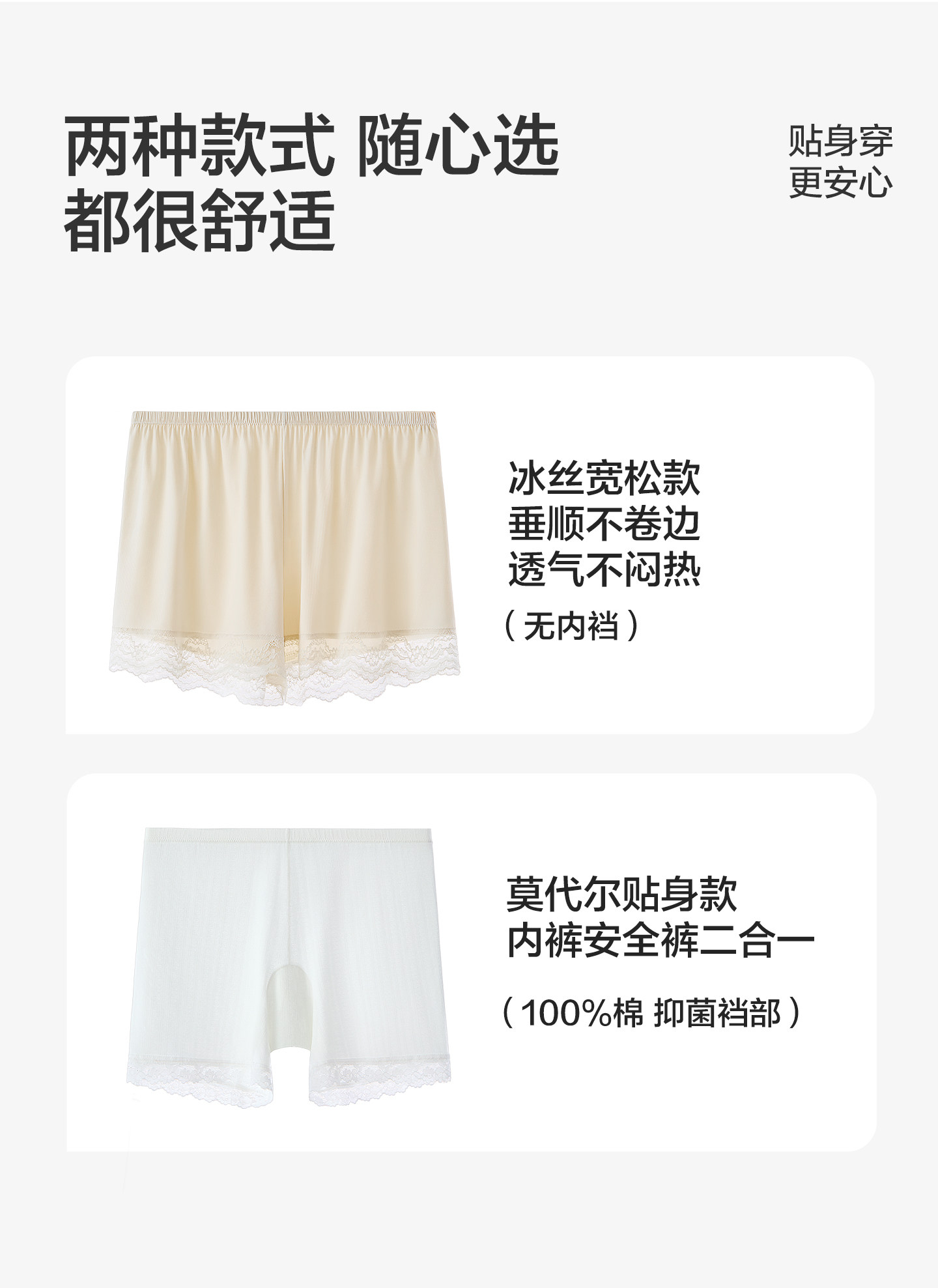 Red Bean Safety Shorts for Women, Loose and Silky, Non-Curling, Anti-Exposure, Ice Silk, Thin Summer Base Layer Underwear, Two-In-One Boxer Shorts
