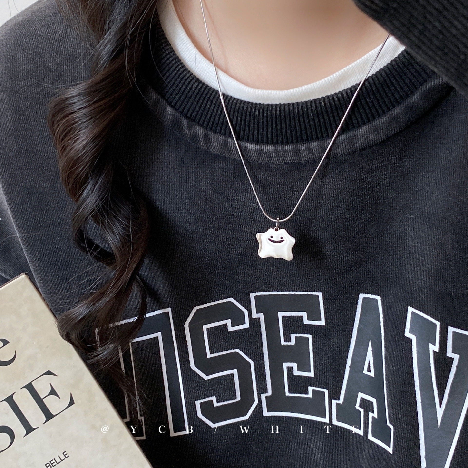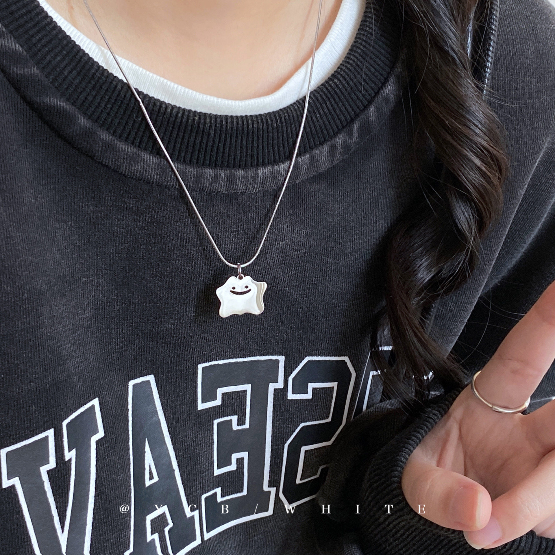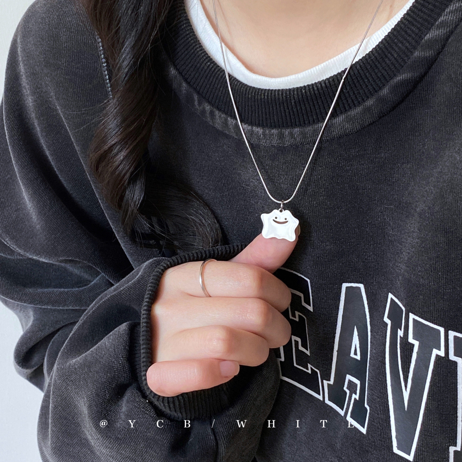 Little Ghost ins Sweet and Cool Cute Cartoon Necklace Niche Clavicle Chain Minimalist Hip-Hop Neck Chain Sweatshirt Chain