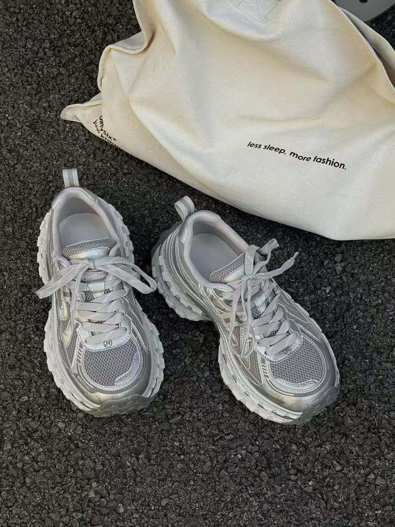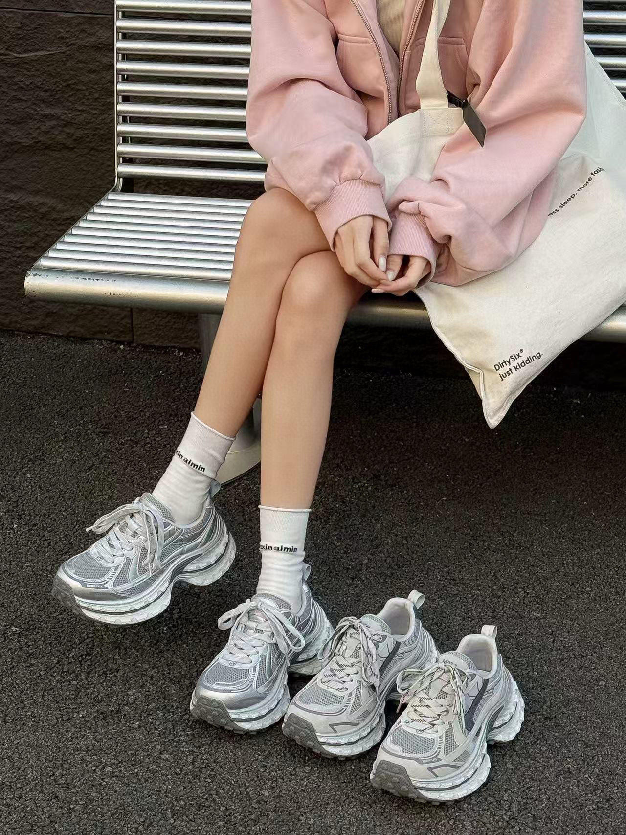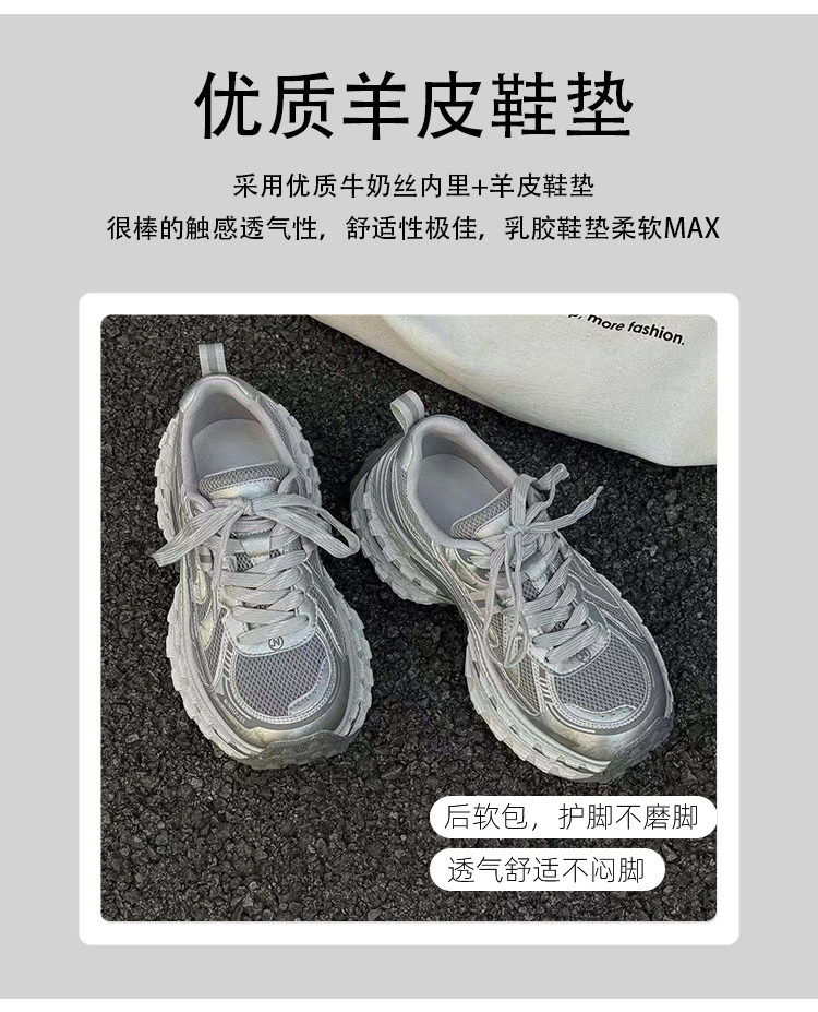 Hong Kong Paris Mesh Thick-Soled Height-Increasing Silver Dad Shoes for Women 2026 Spring Versatile Lightweight Casual Sports Running Shoes