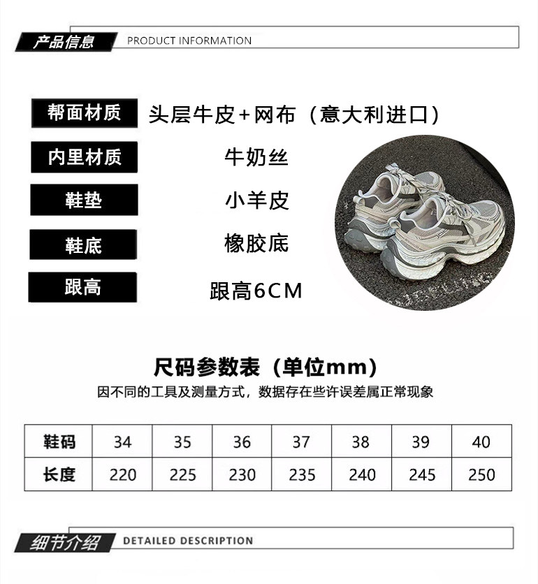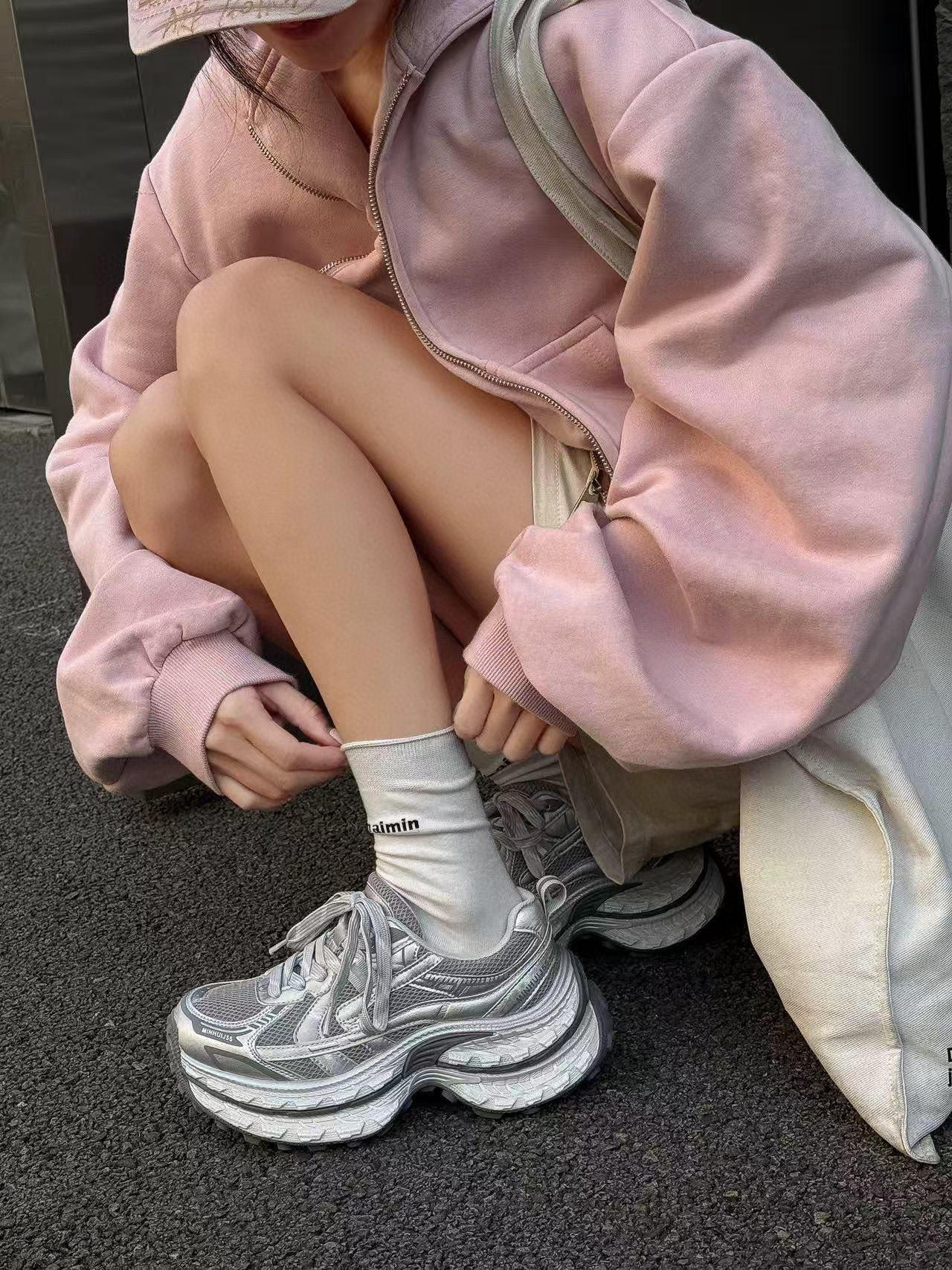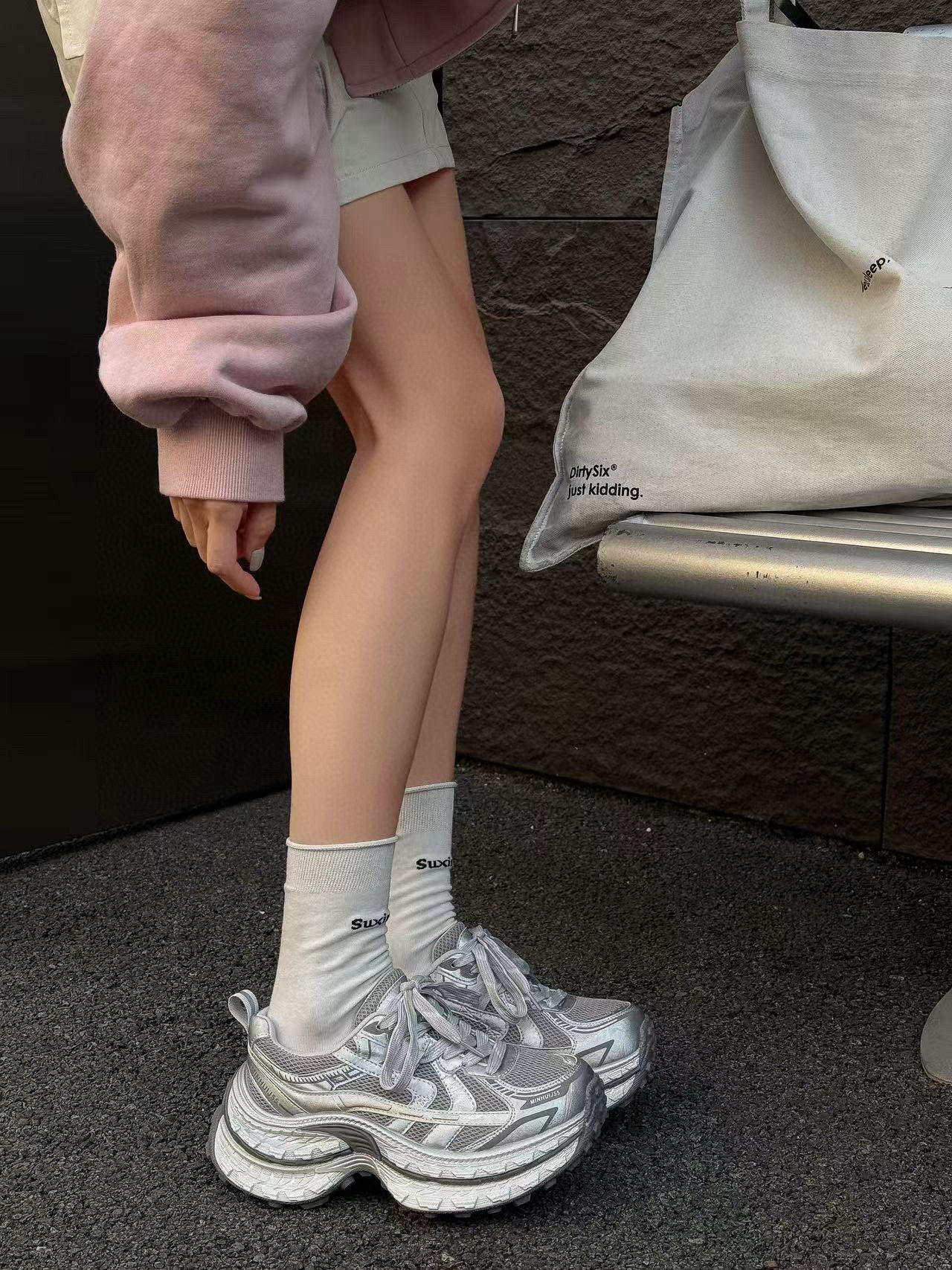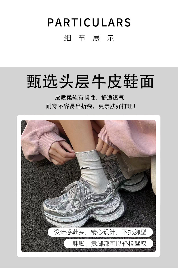 Hong Kong Paris Mesh Thick-Soled Height-Increasing Silver Dad Shoes for Women 2026 Spring Versatile Lightweight Casual Sports Running Shoes