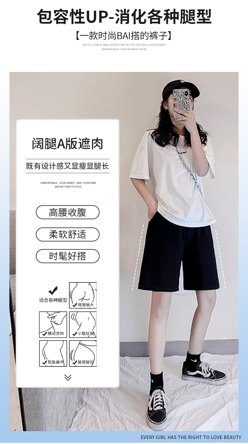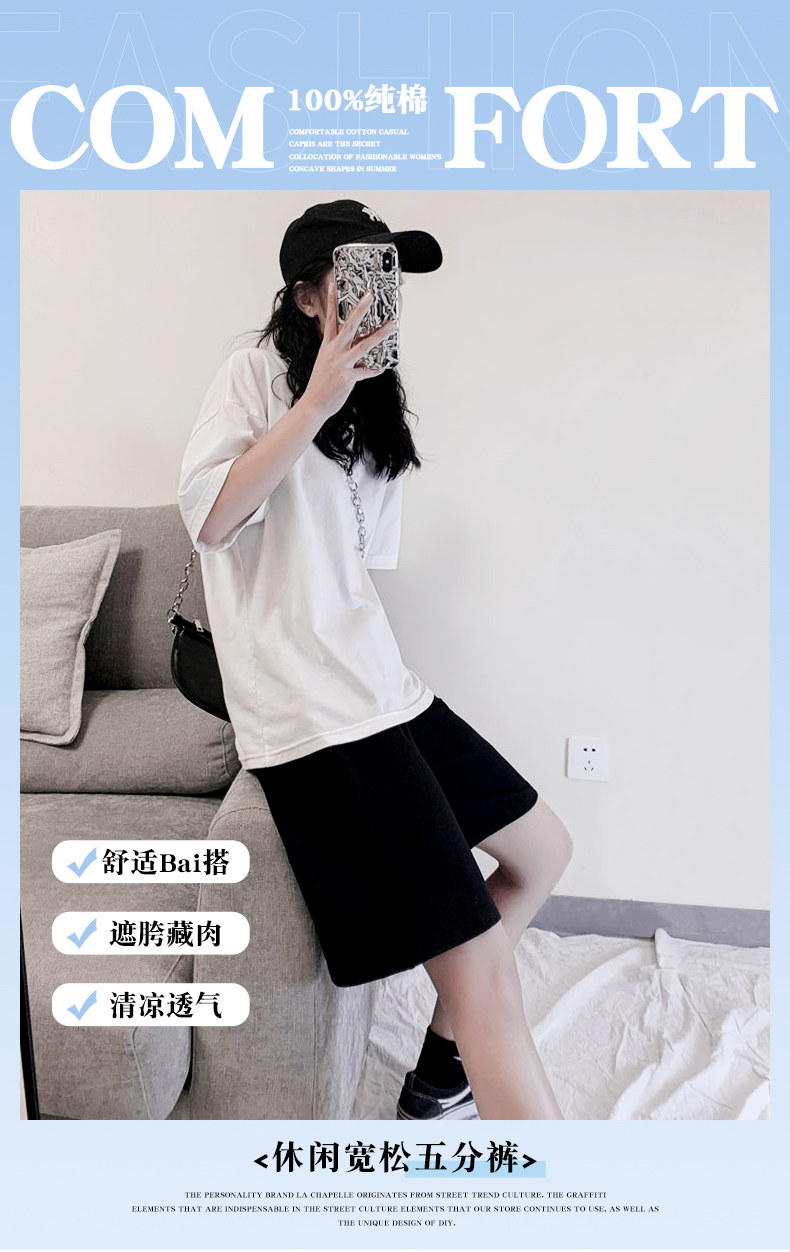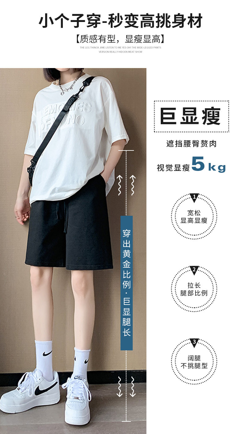 Jeanswest Black Sports Casual Shorts for Women, Summer Outerwear, 2026 New Style, Pure Cotton, Loose Fit, Knee-Length Shorts, Mid-Length Pants X