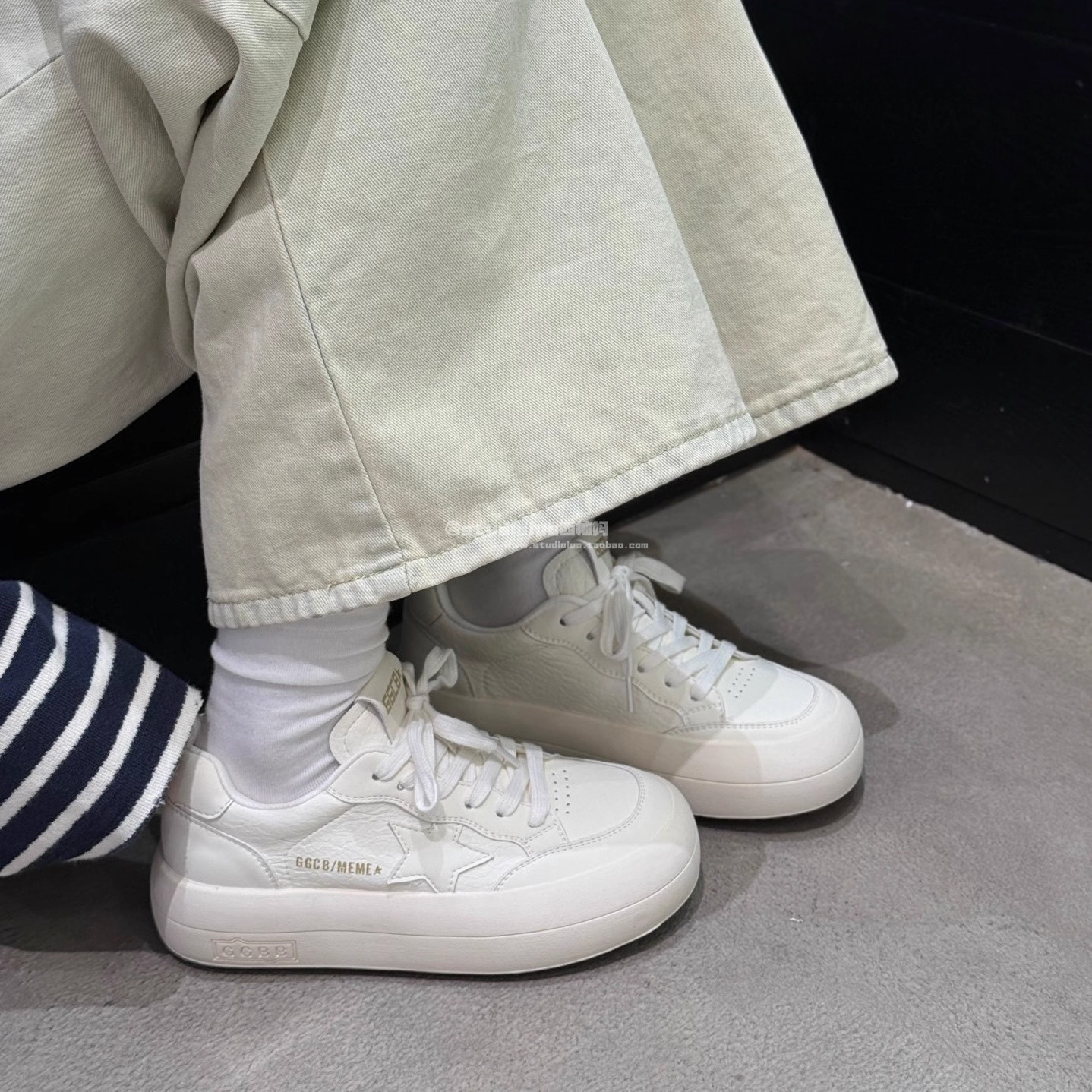 Hong Kong Light Luxury Genuine Leather Korean Style Distressed White Shoes Women's 2025 Spring and Autumn New Star Casual Sneakers Dirty Shoes