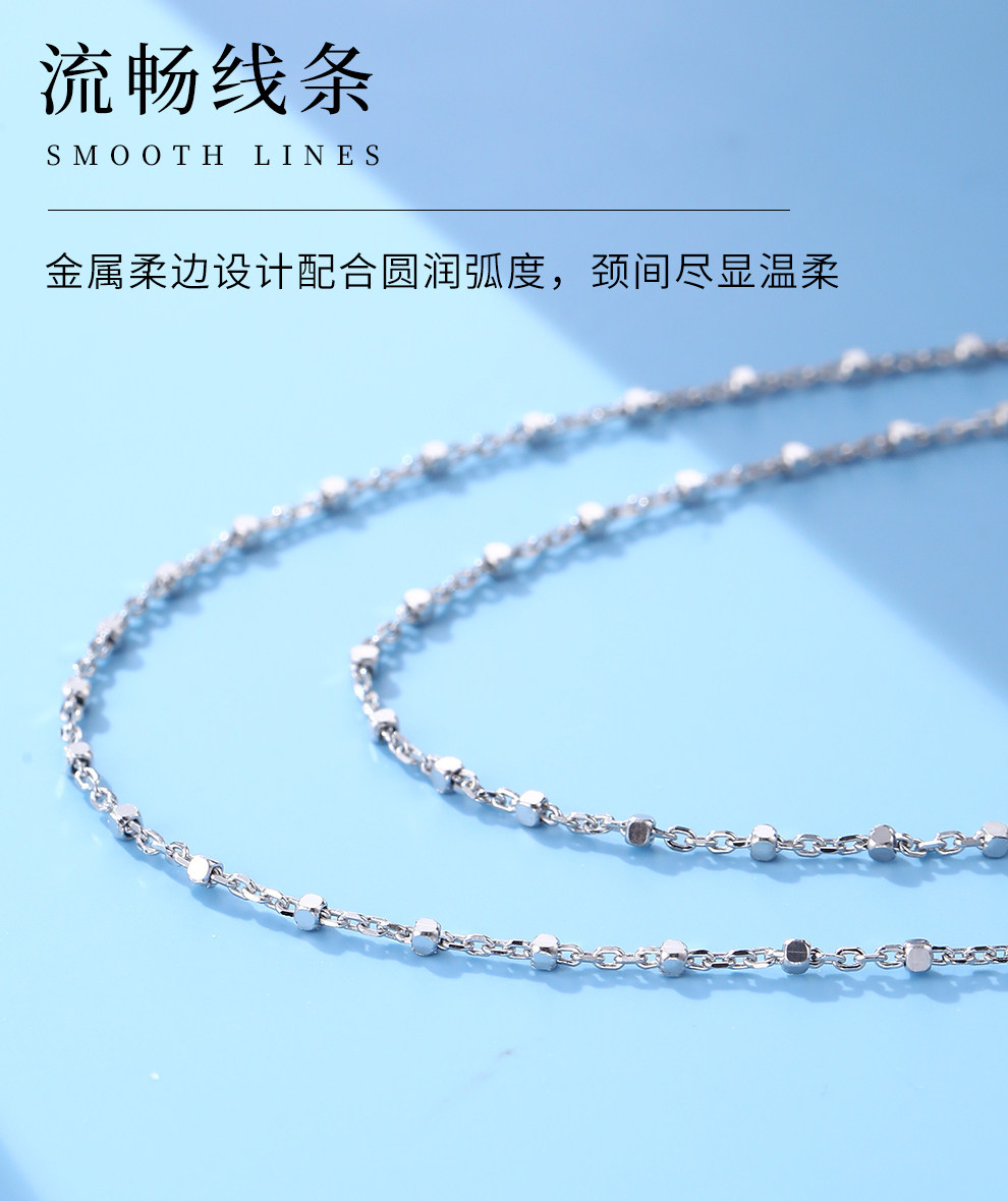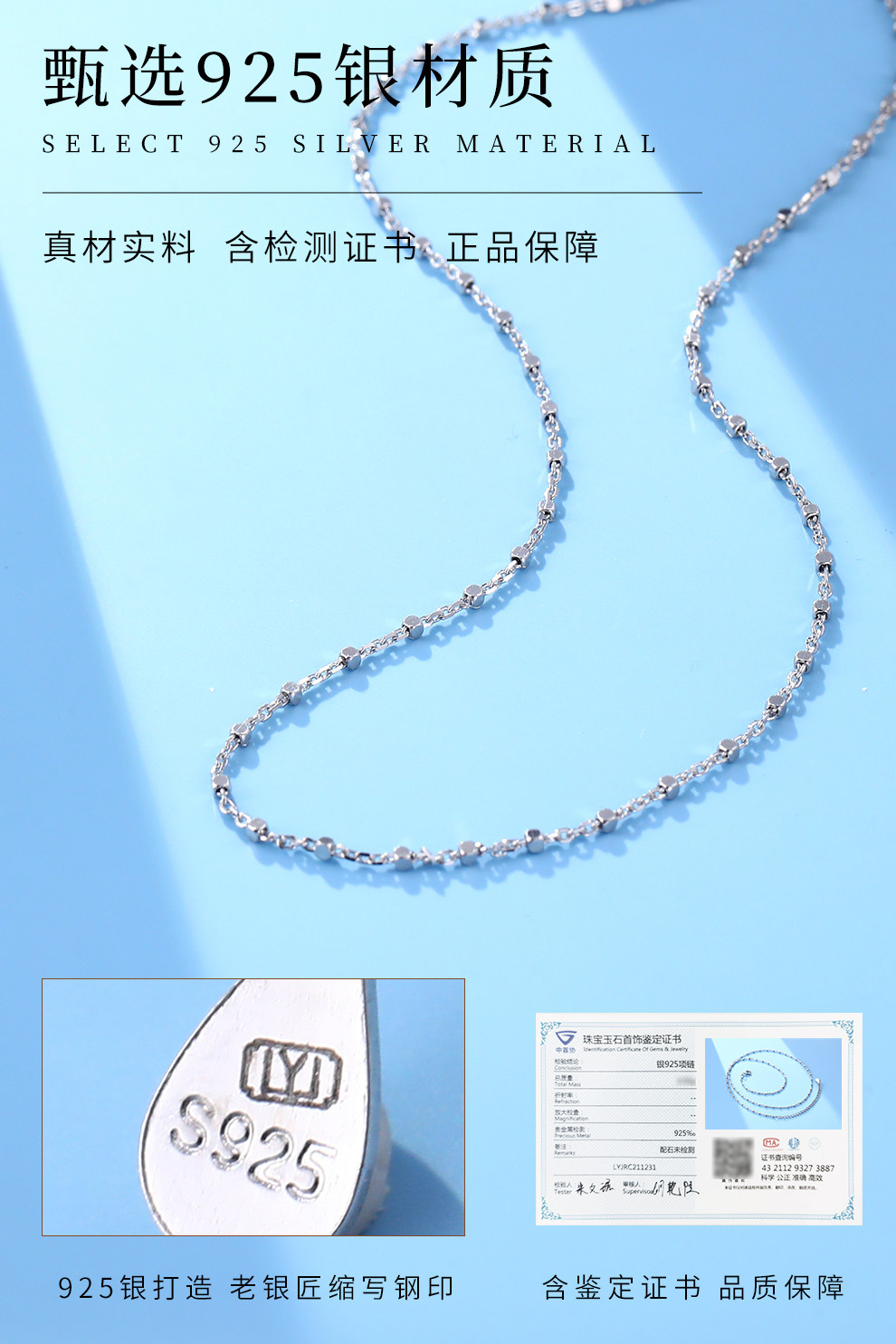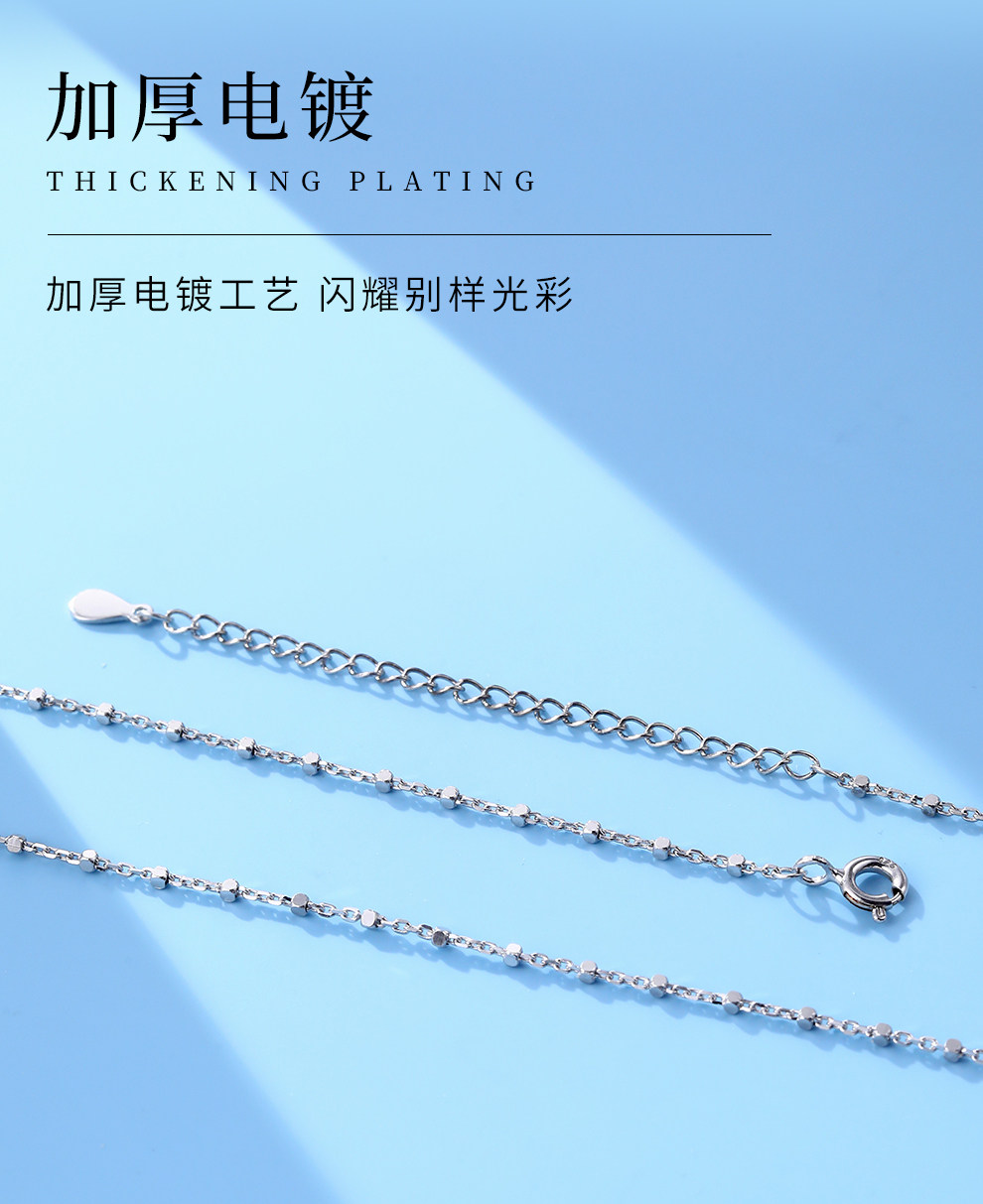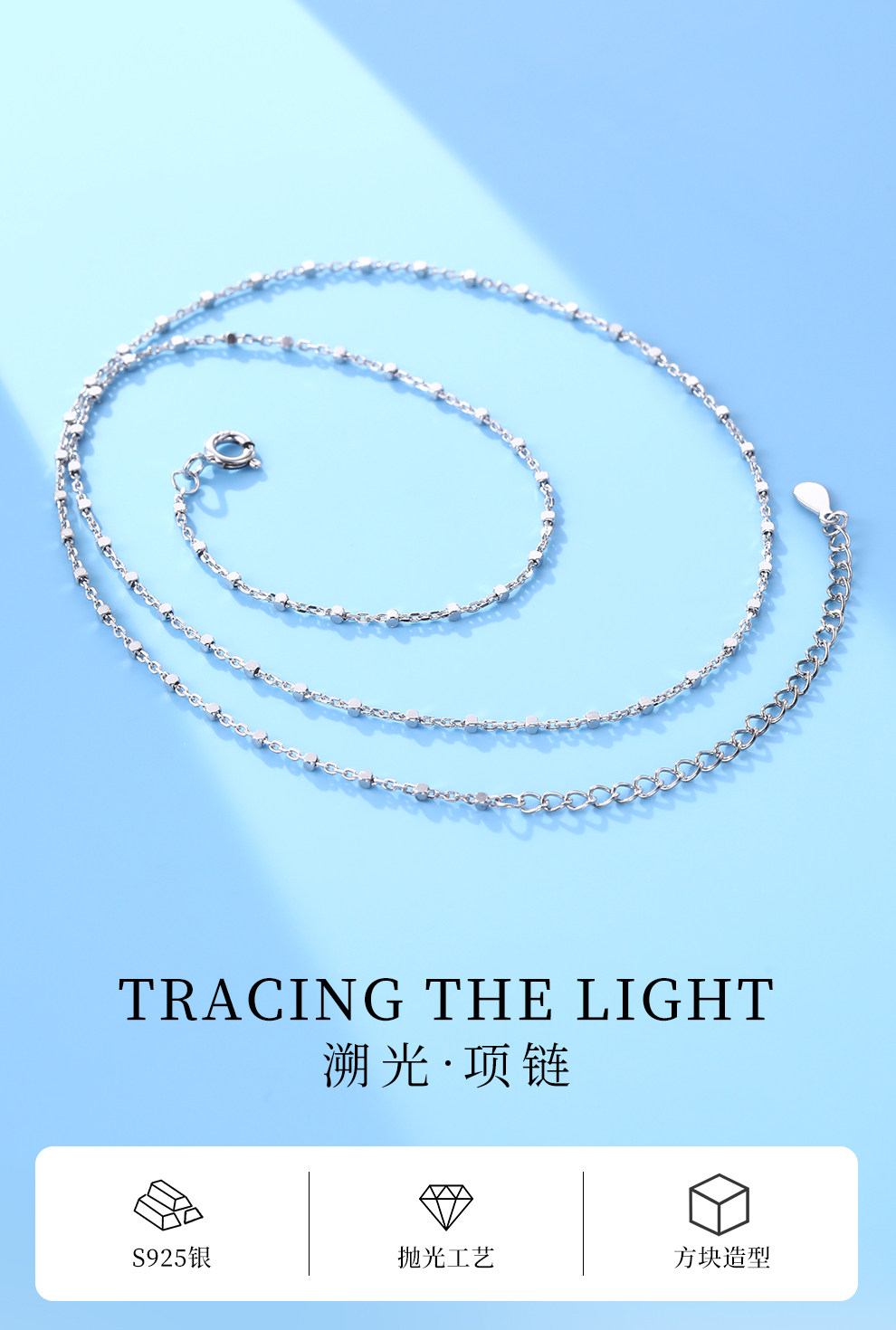 Old Silversmith S925 Silver Necklace for Women, Simple and Versatile Square Plain Chain Without Pendant, Single Chain Extension Chain, Pure Silver Clavicle Chain