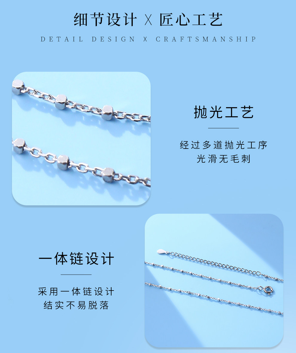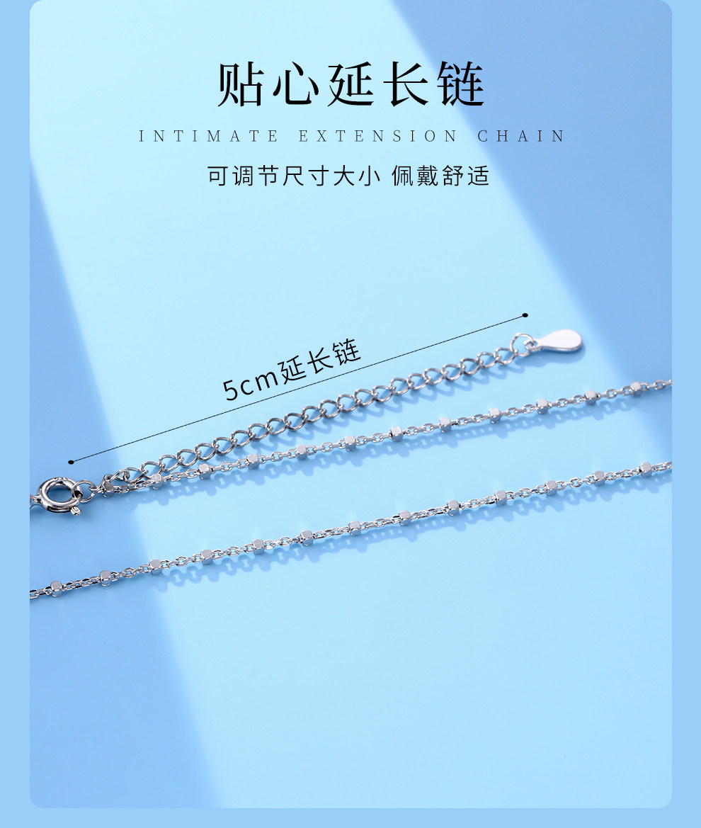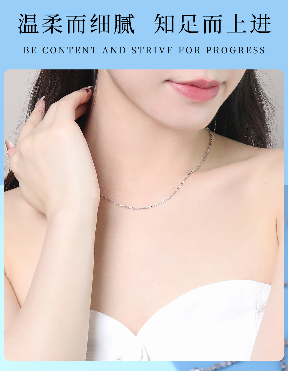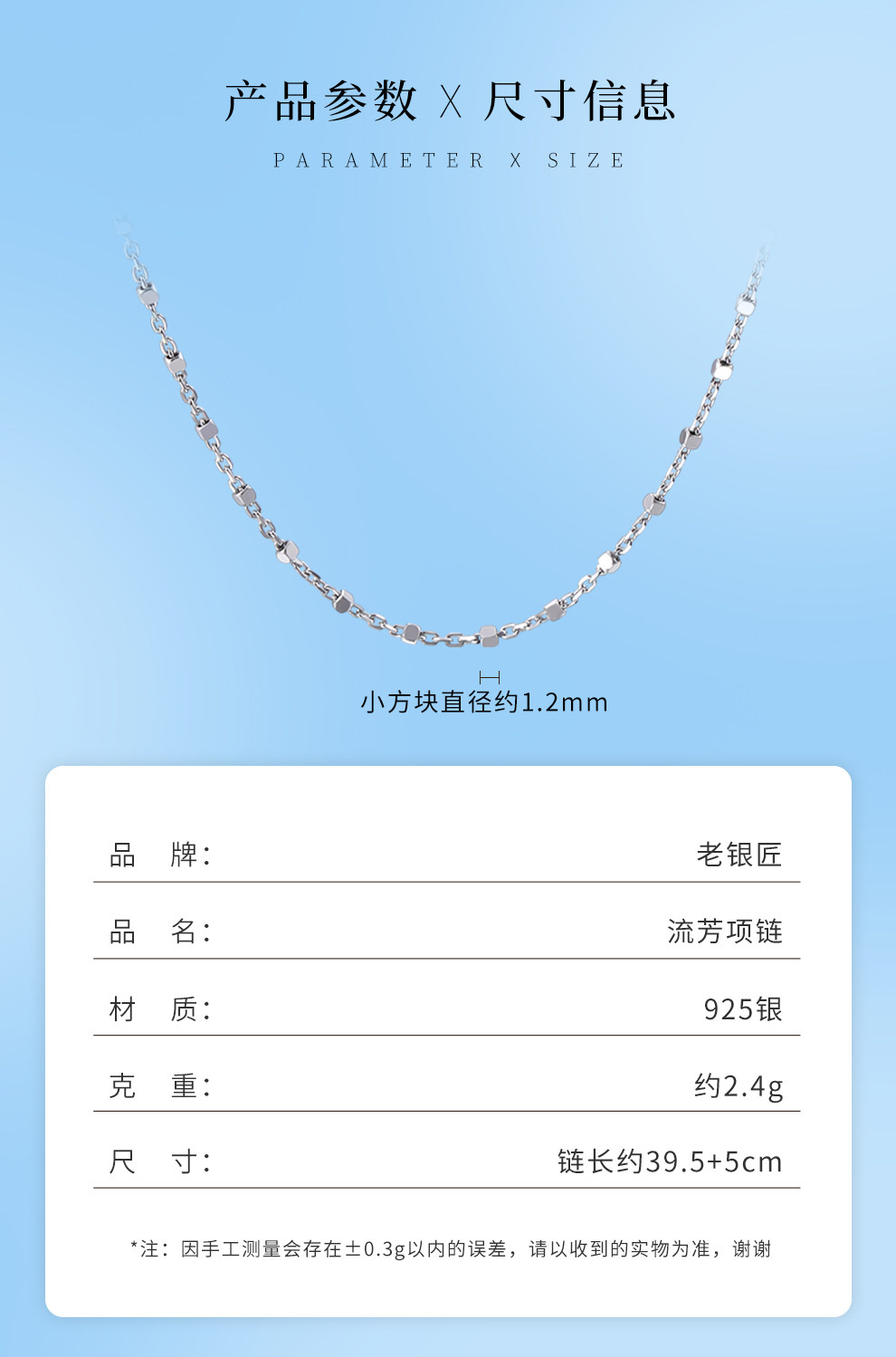 Old Silversmith S925 Silver Necklace for Women, Simple and Versatile Square Plain Chain Without Pendant, Single Chain Extension Chain, Pure Silver Clavicle Chain