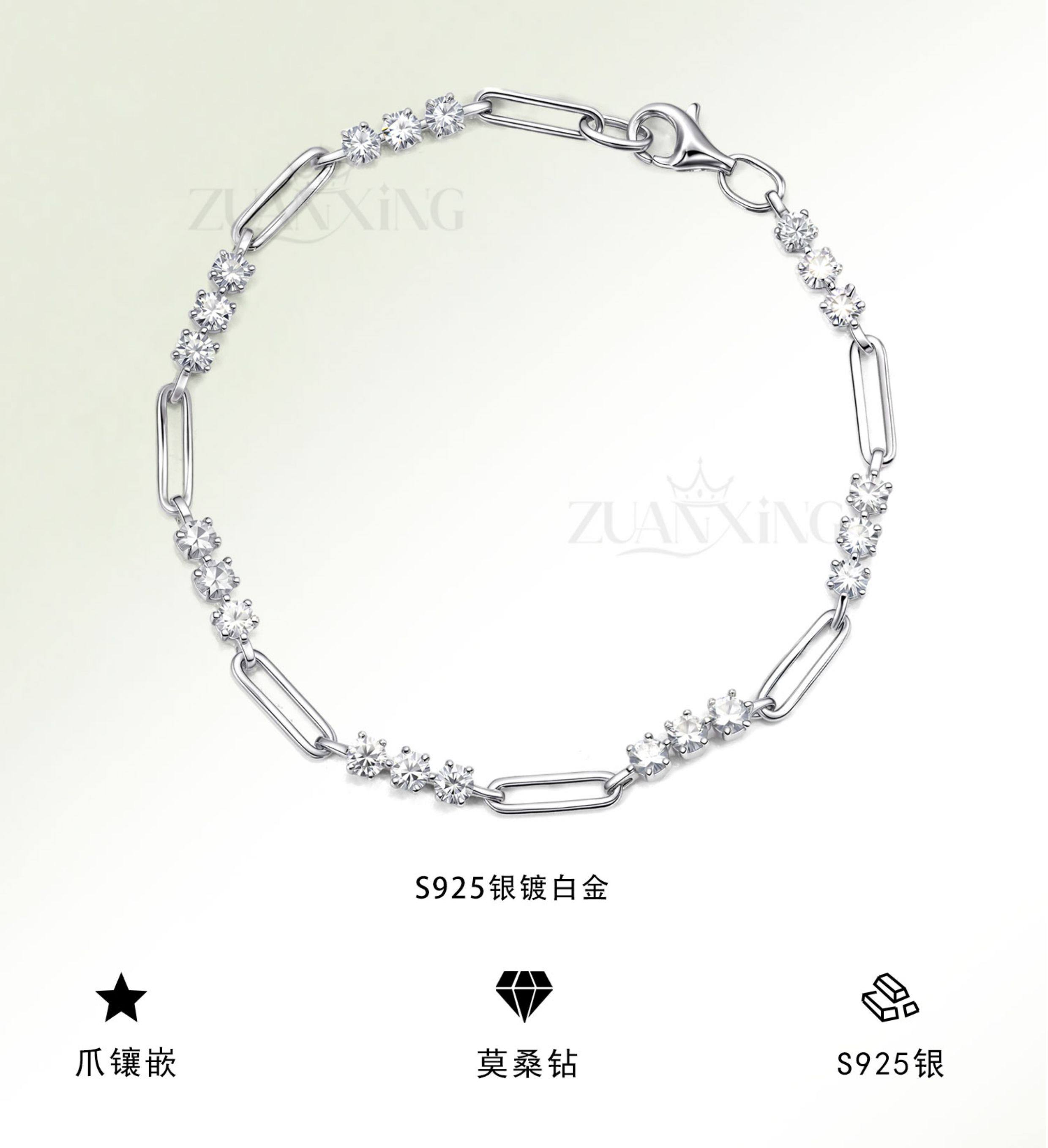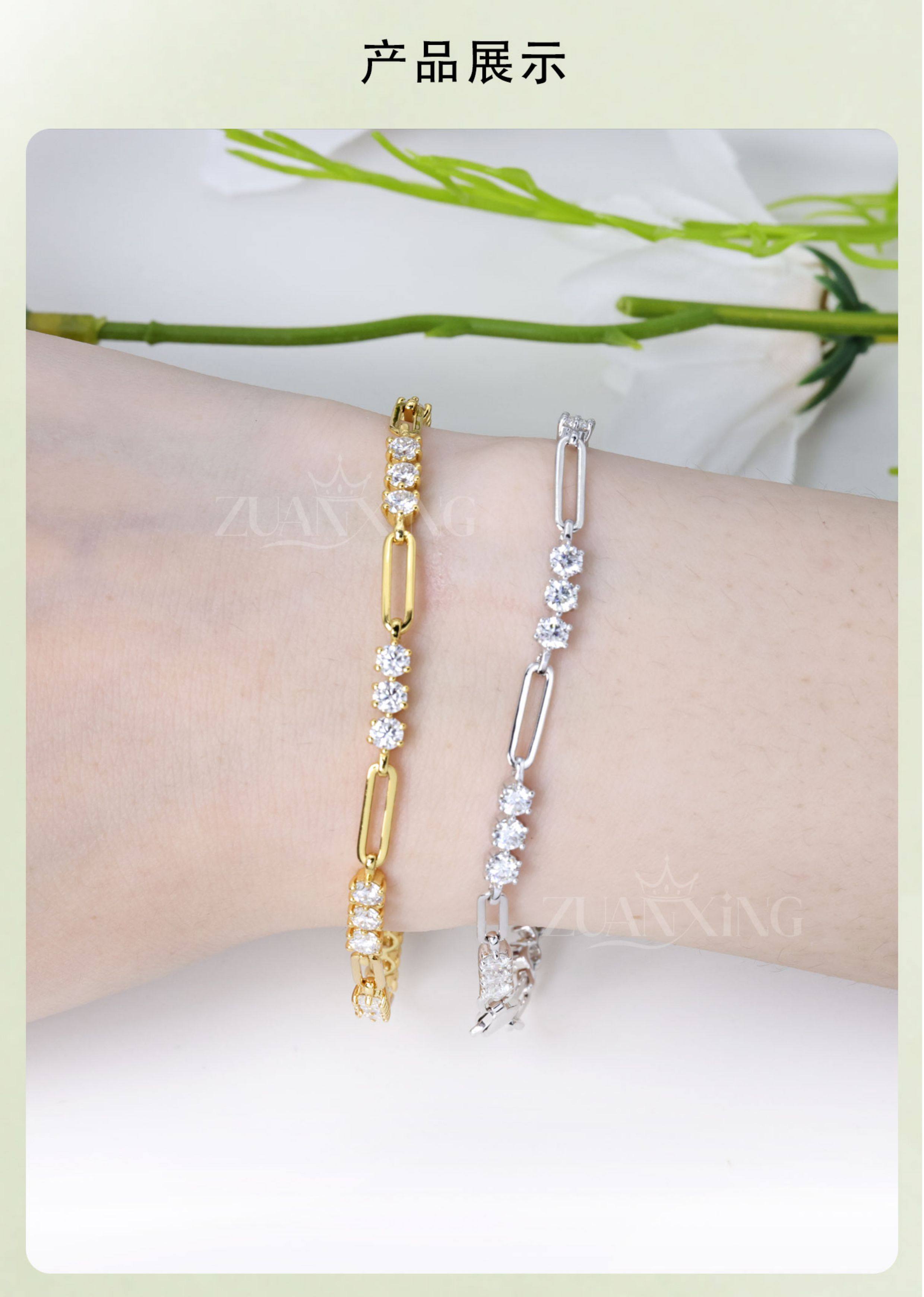 Twinkling Starry Sky S925 Silver Gold-Plated Rose Gold Moissanite Bracelet Niche Design Fashionable Gift Versatile Hot-Selling