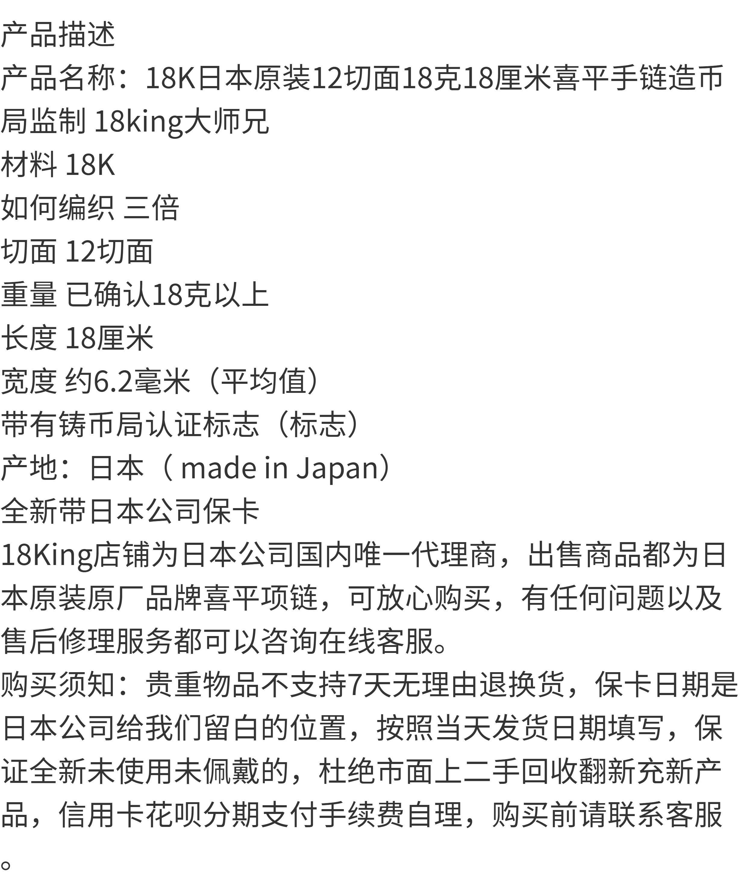 18K Japanese Original 12-Faceted 18g 18cm Xiping Bracelet Coin Bureau Supervised 18K Master Brother
