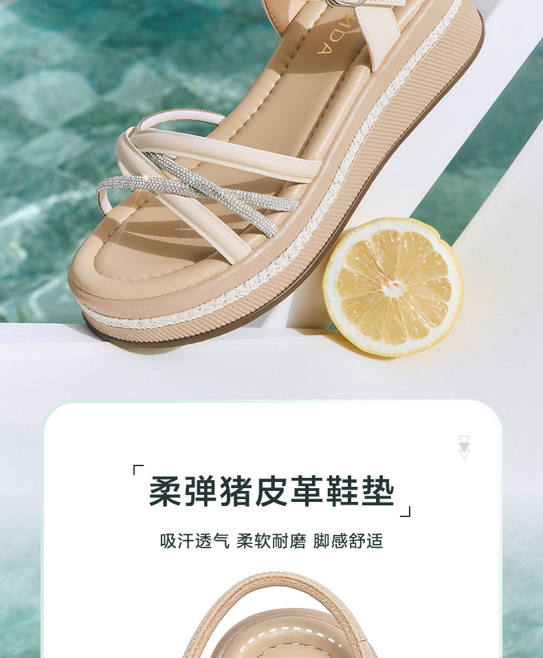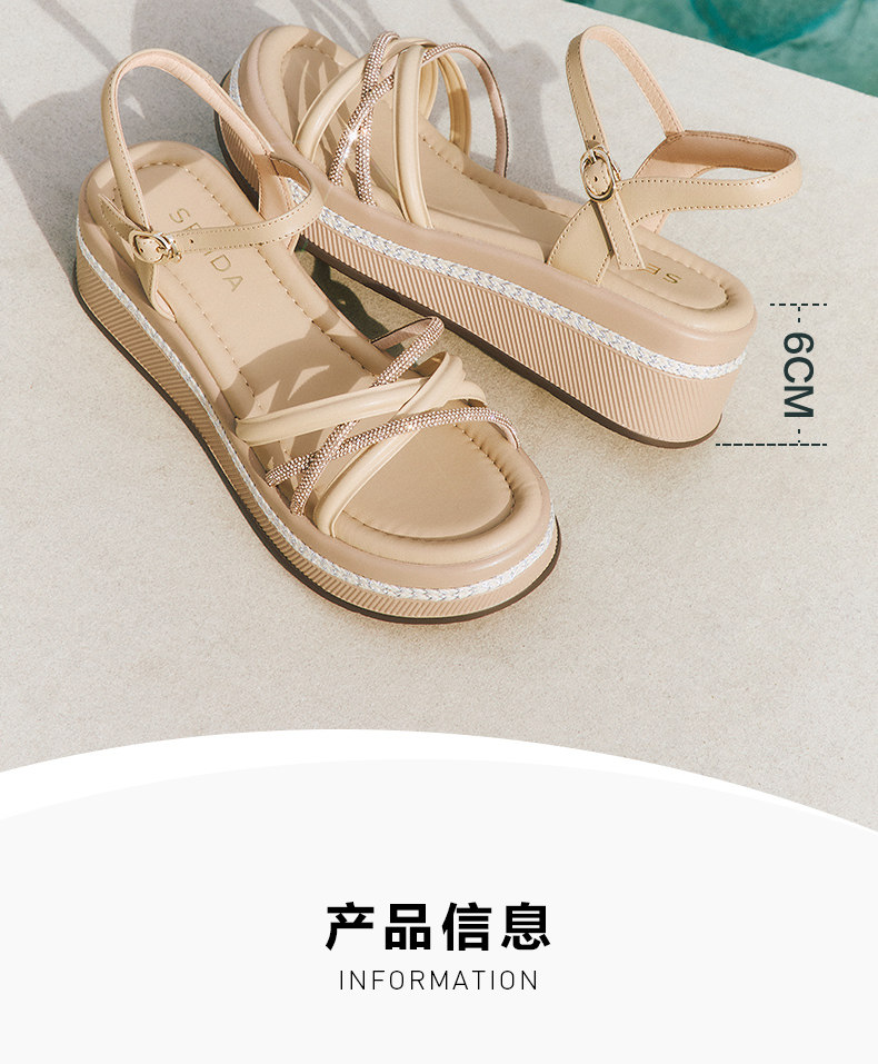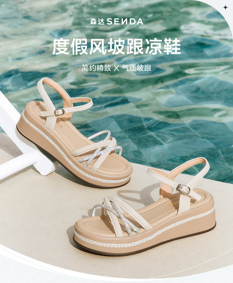 Senda Casual Sandals for Women 2025 Summer New Model Same Style as in Shopping Malls Single Strap Thick-Soled Wedge Sandals Xmy01