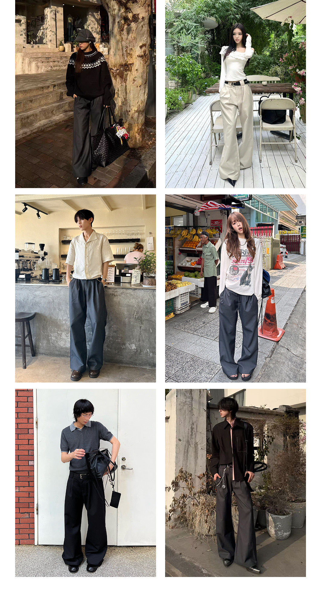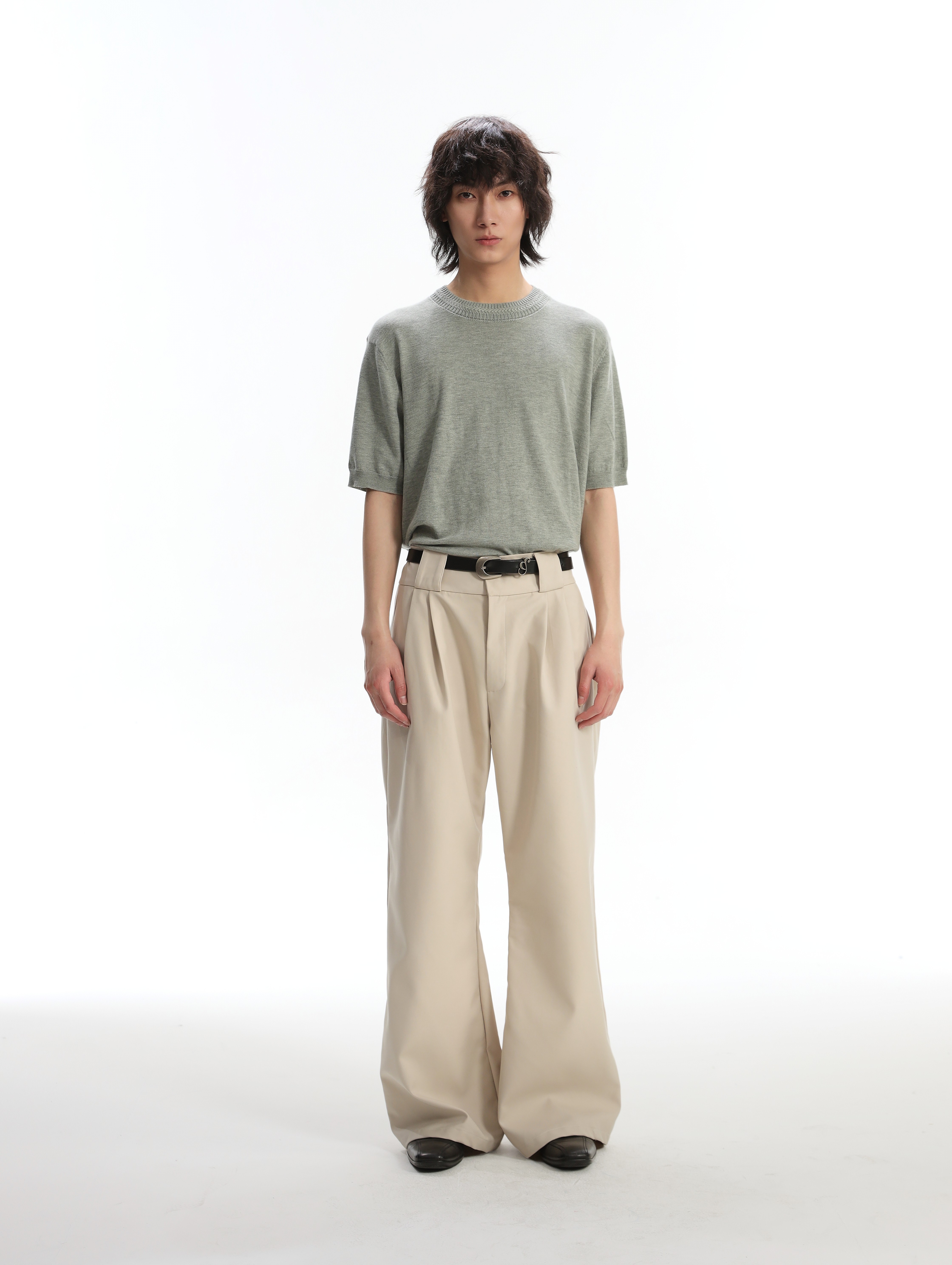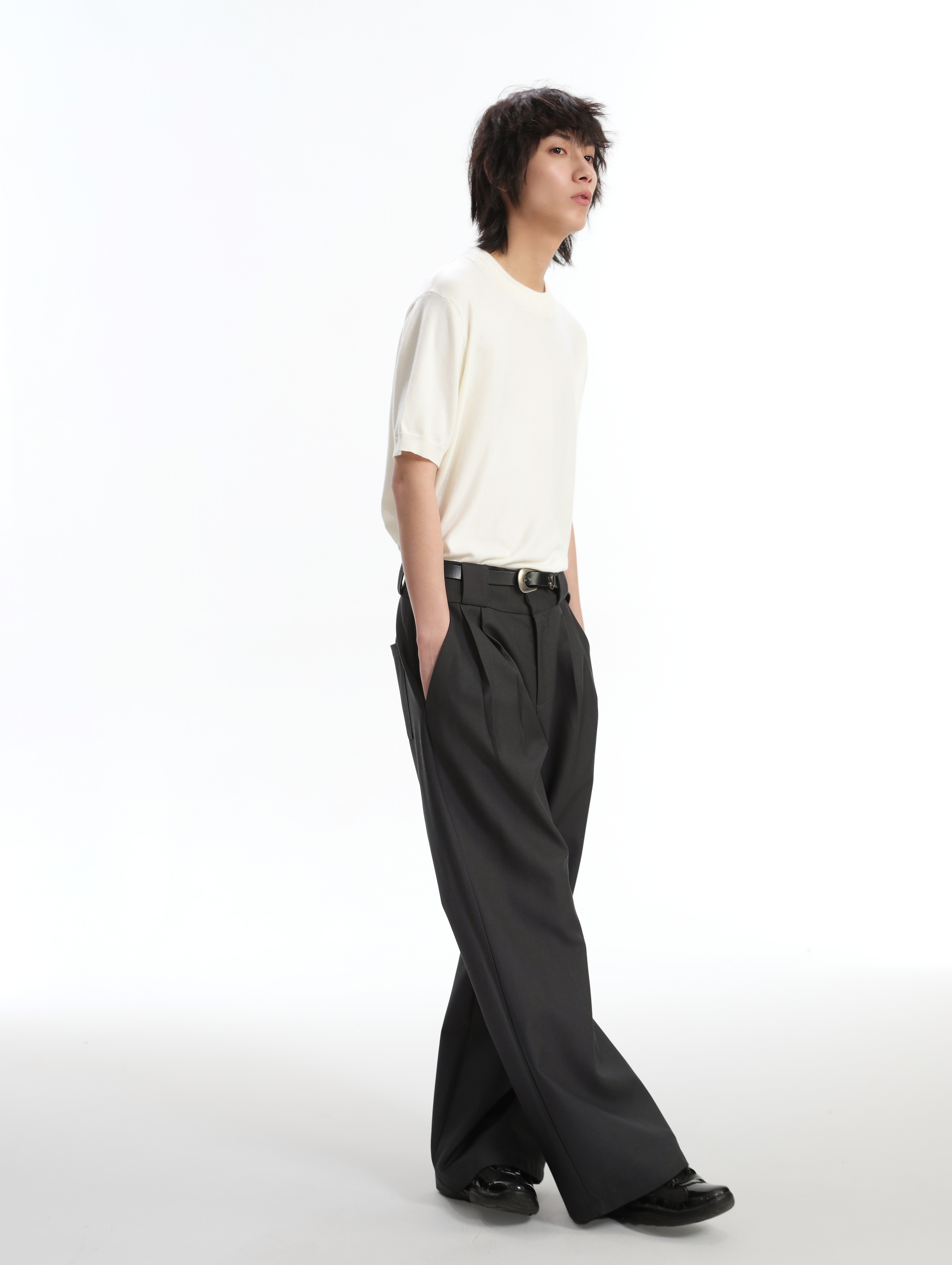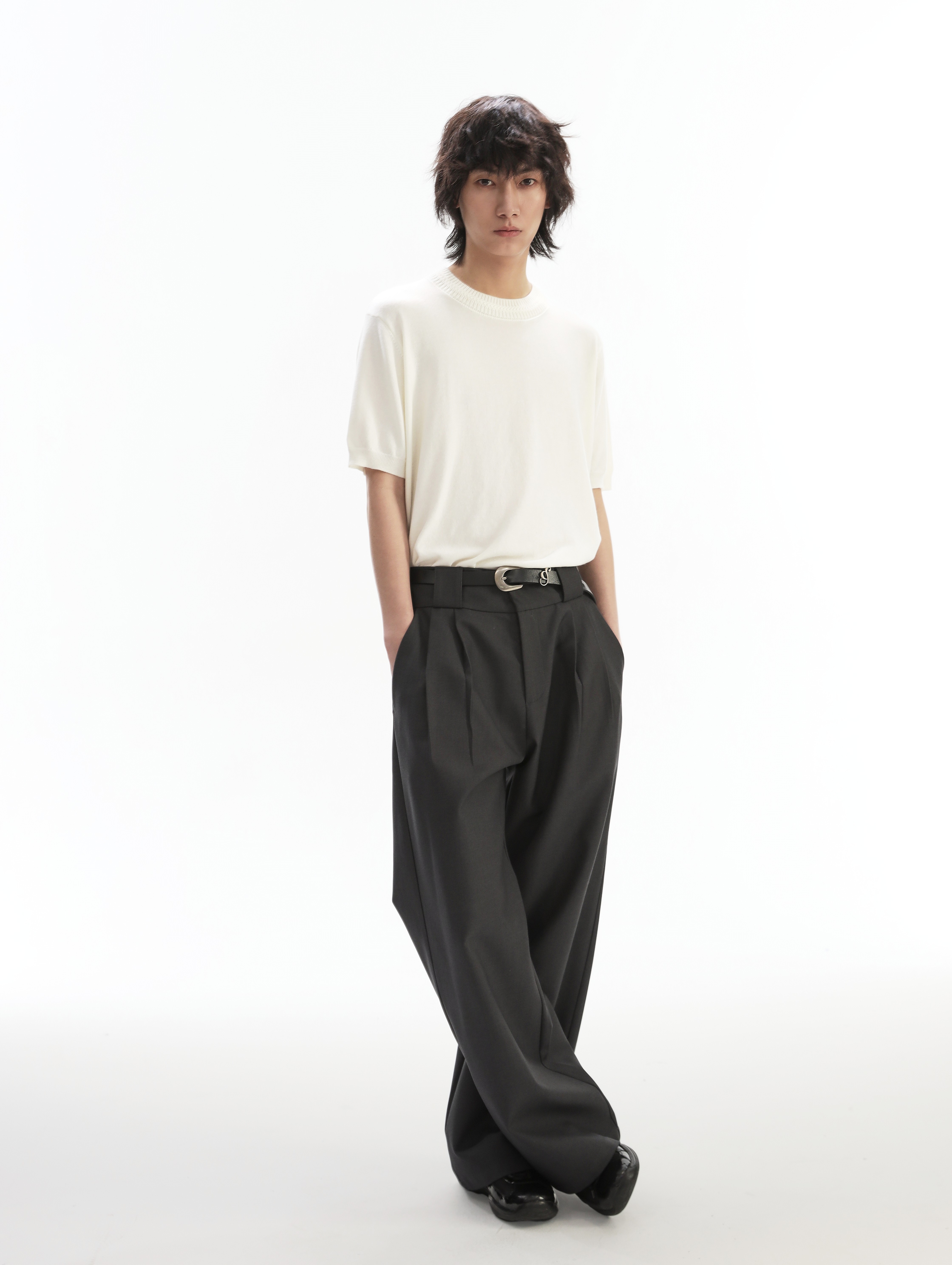 Pleated Straight-Leg Dress Pants *4Junks* Textured Embroidery, Slightly Wide A-Line Fit, Structured and Three-Dimensional Commuter Casual Pants