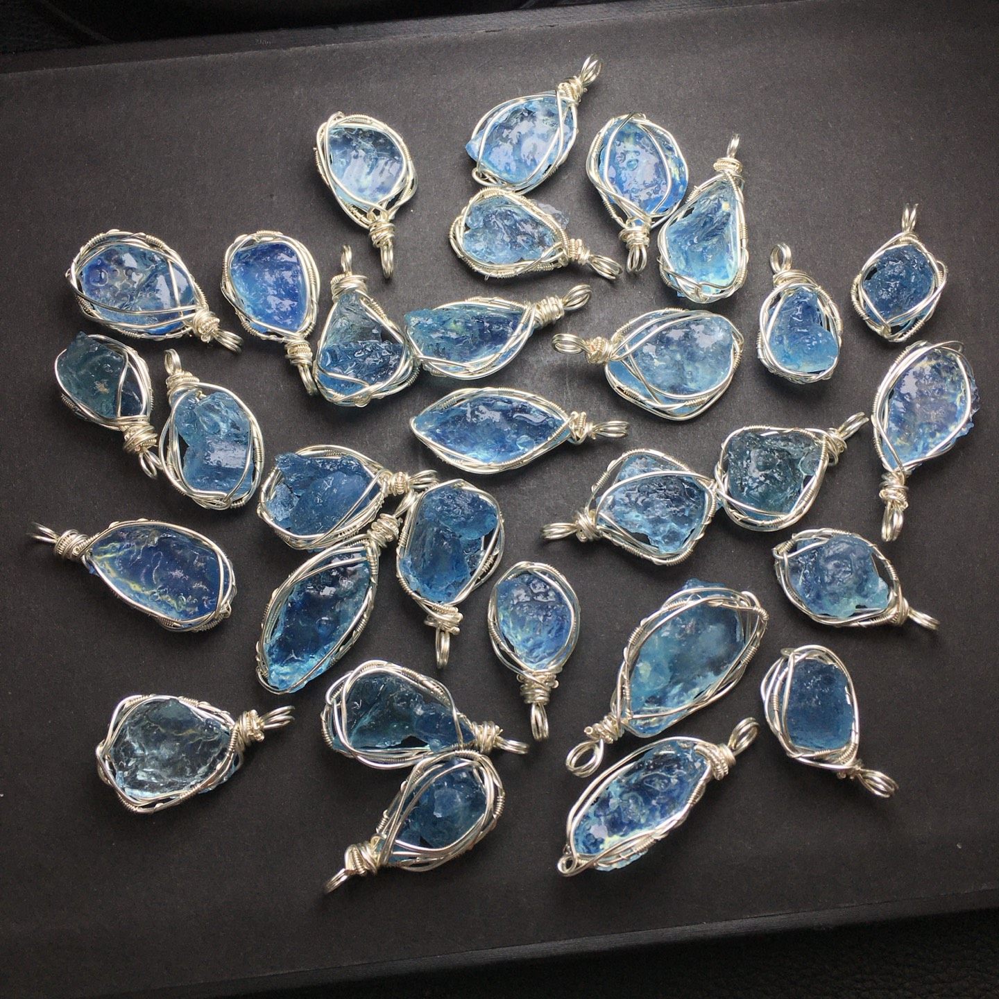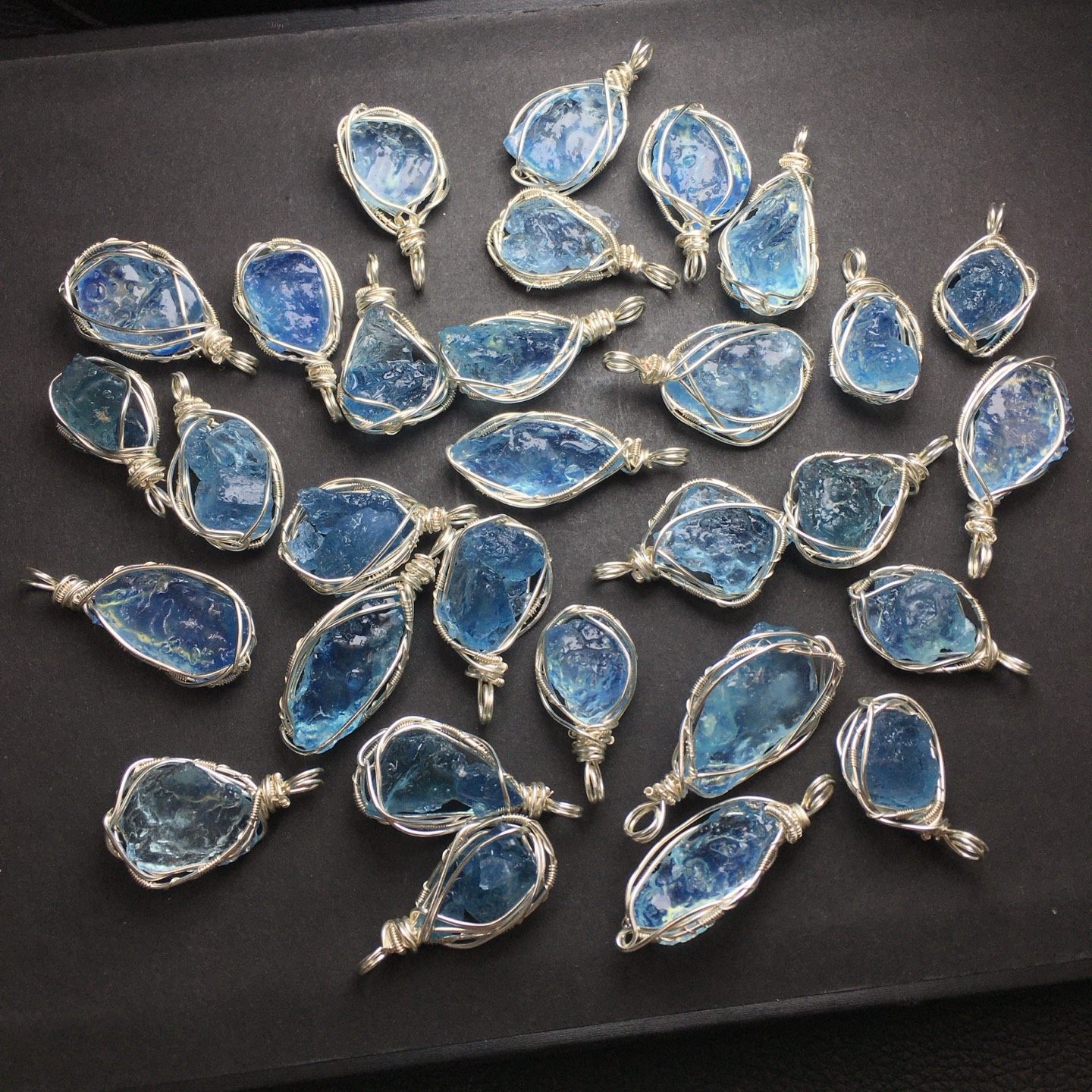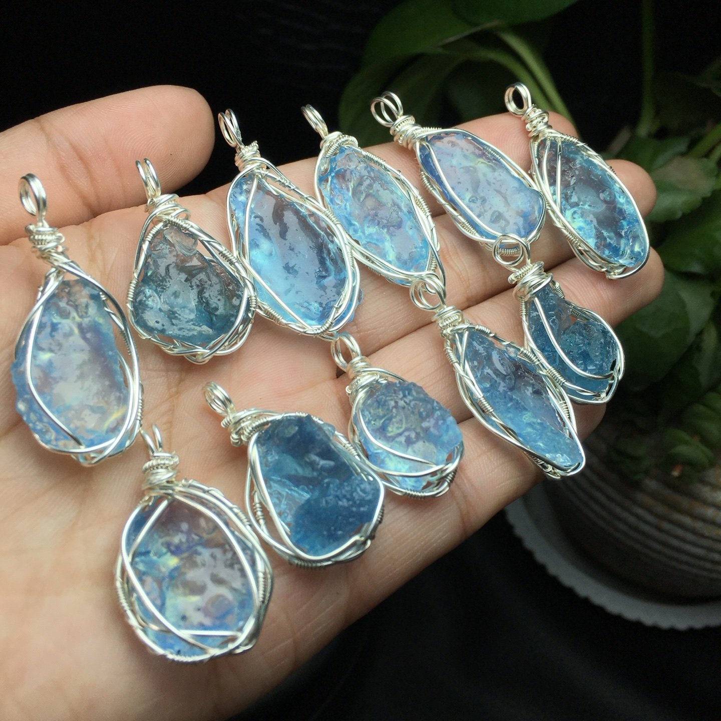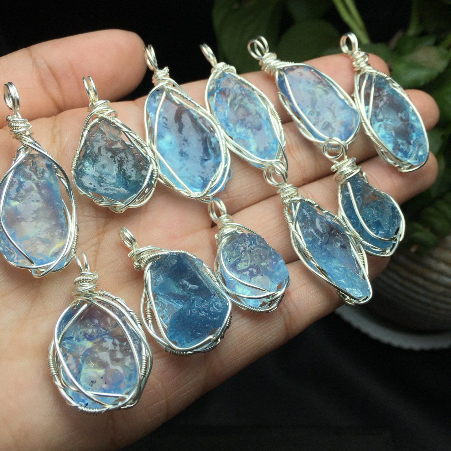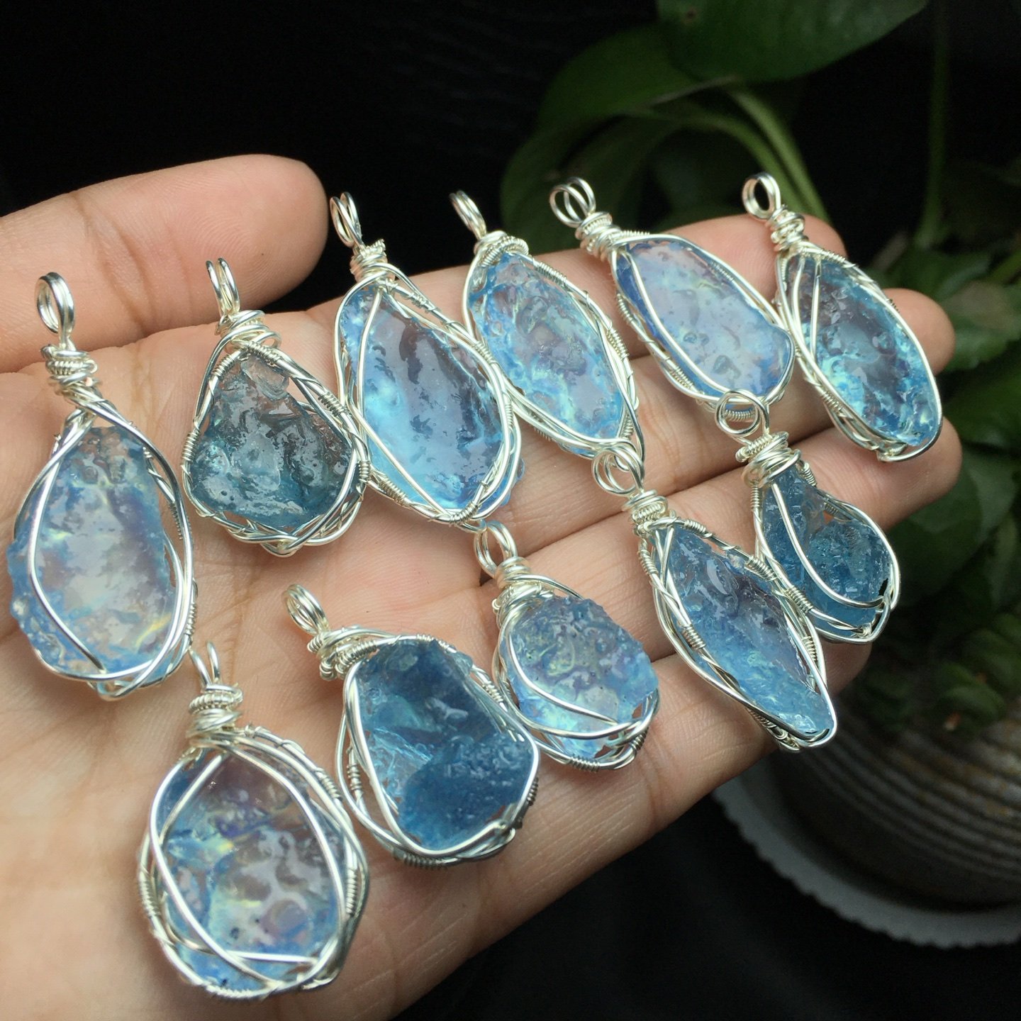 Aquamarine Raw Stone Wire-Wrapped Style (Large Particles), Copper Wire for Hydration