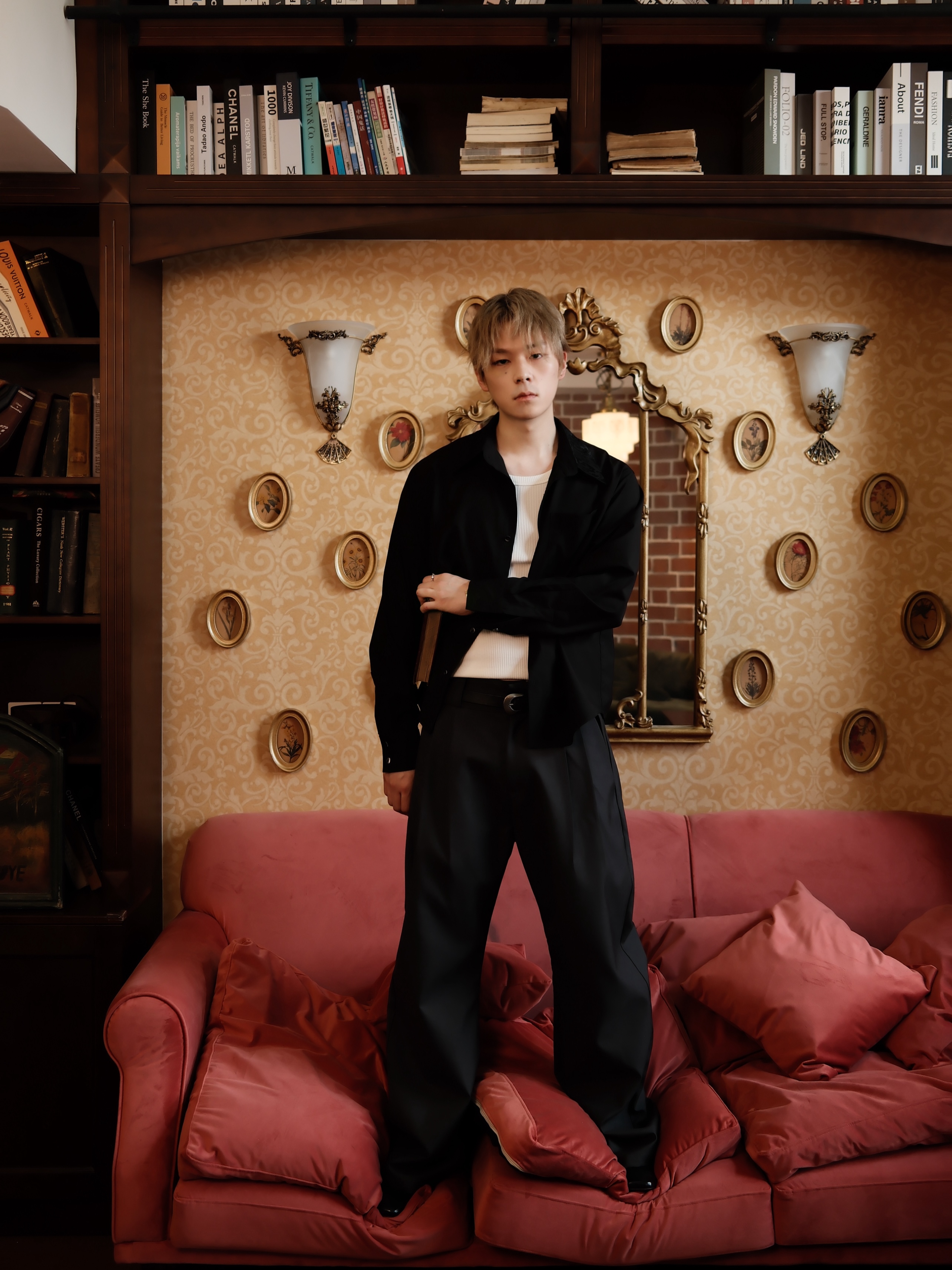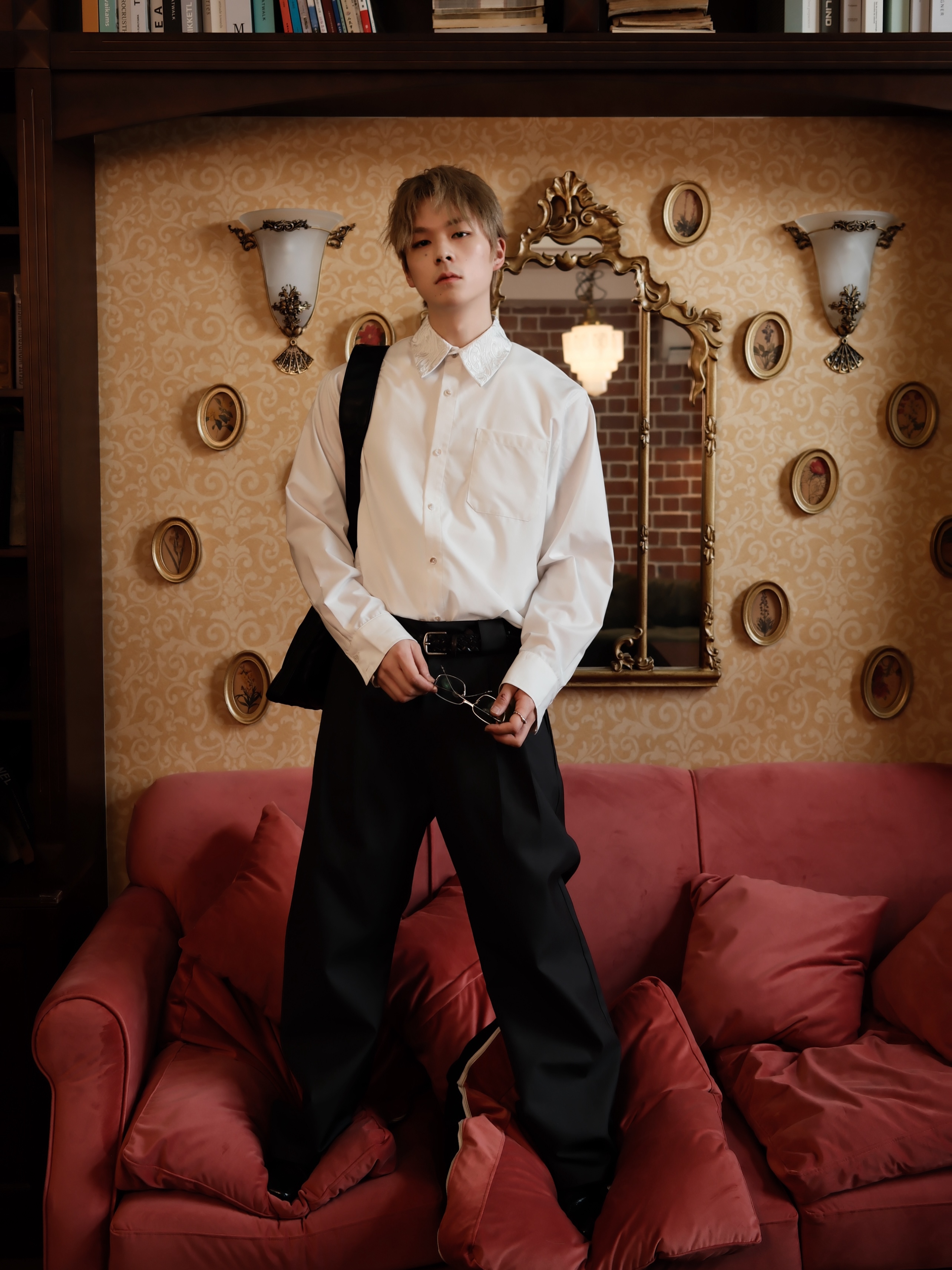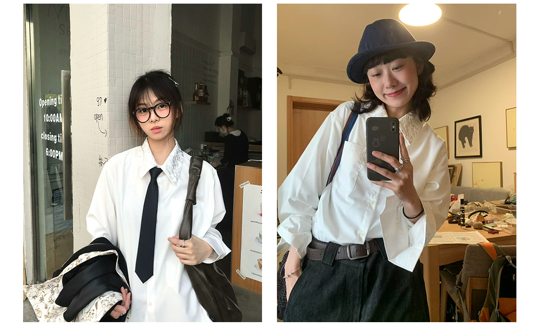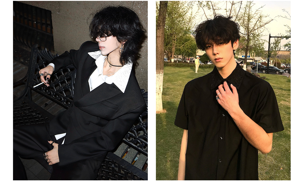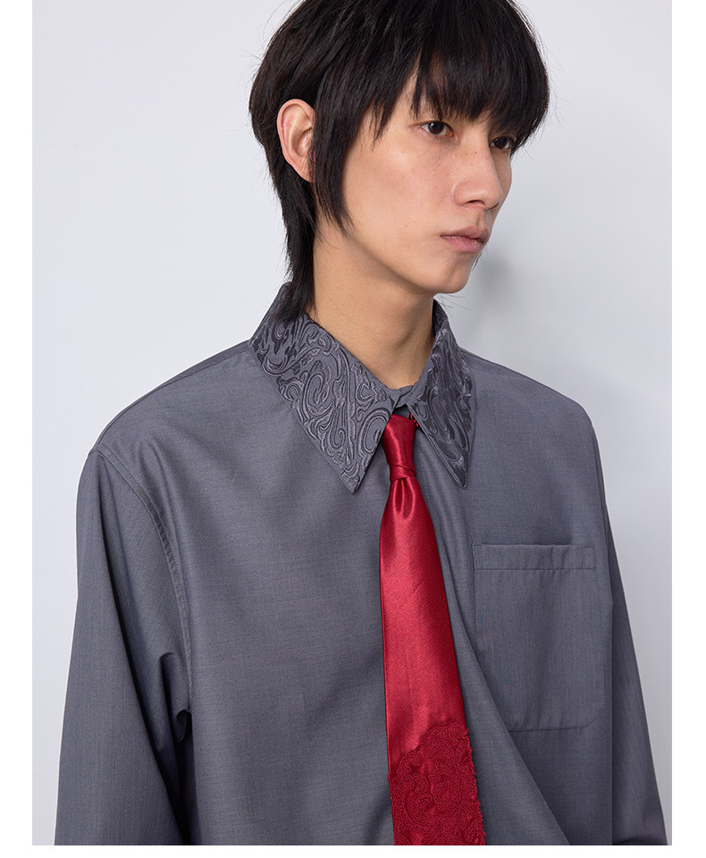 Embroidered Floral Collar Shirt*4Junks*Traditional Suit Tailoring Natural Mother-Of-Pearl Buttons Relaxed and Elegant Long-Sleeved Jacket