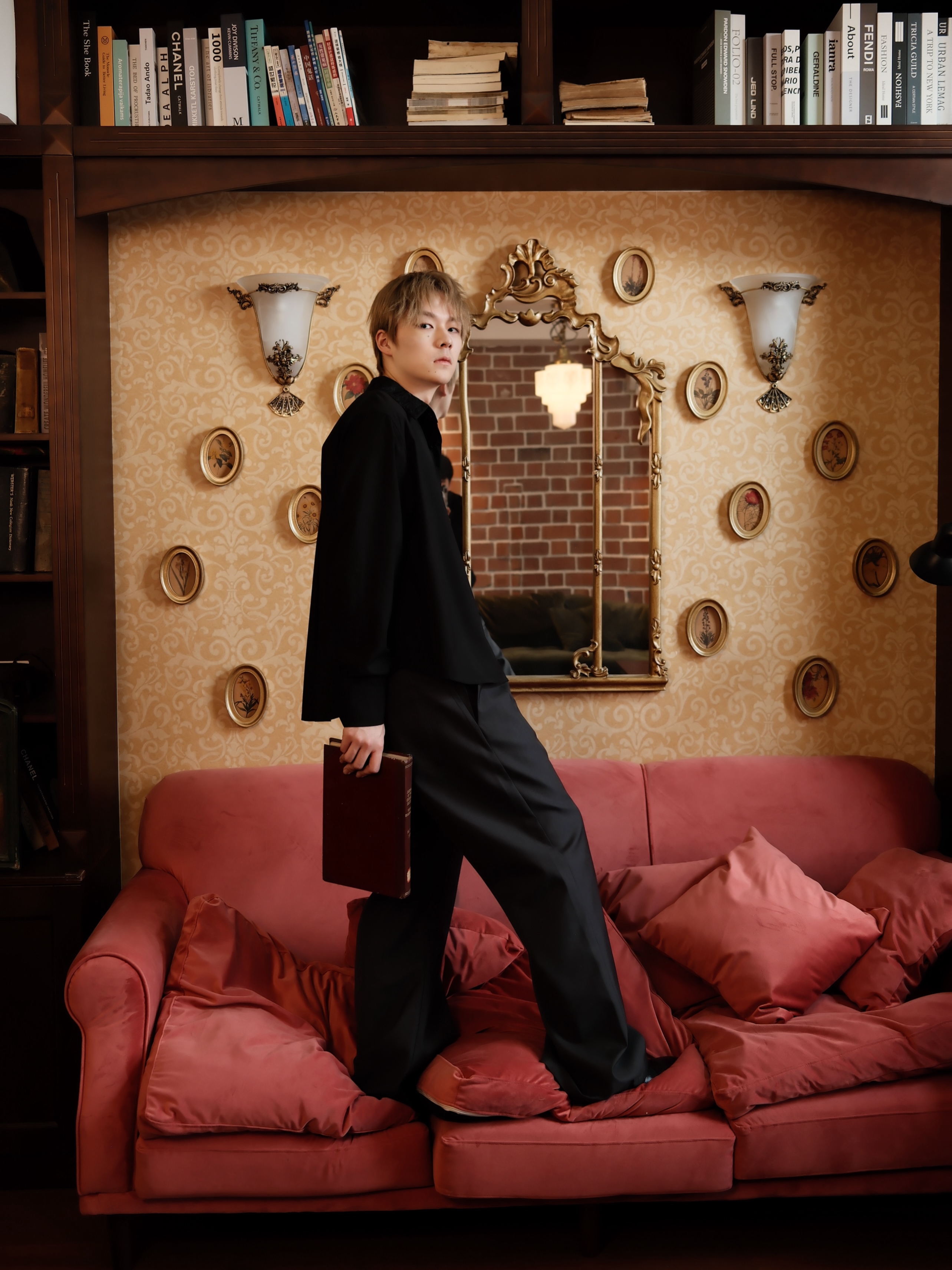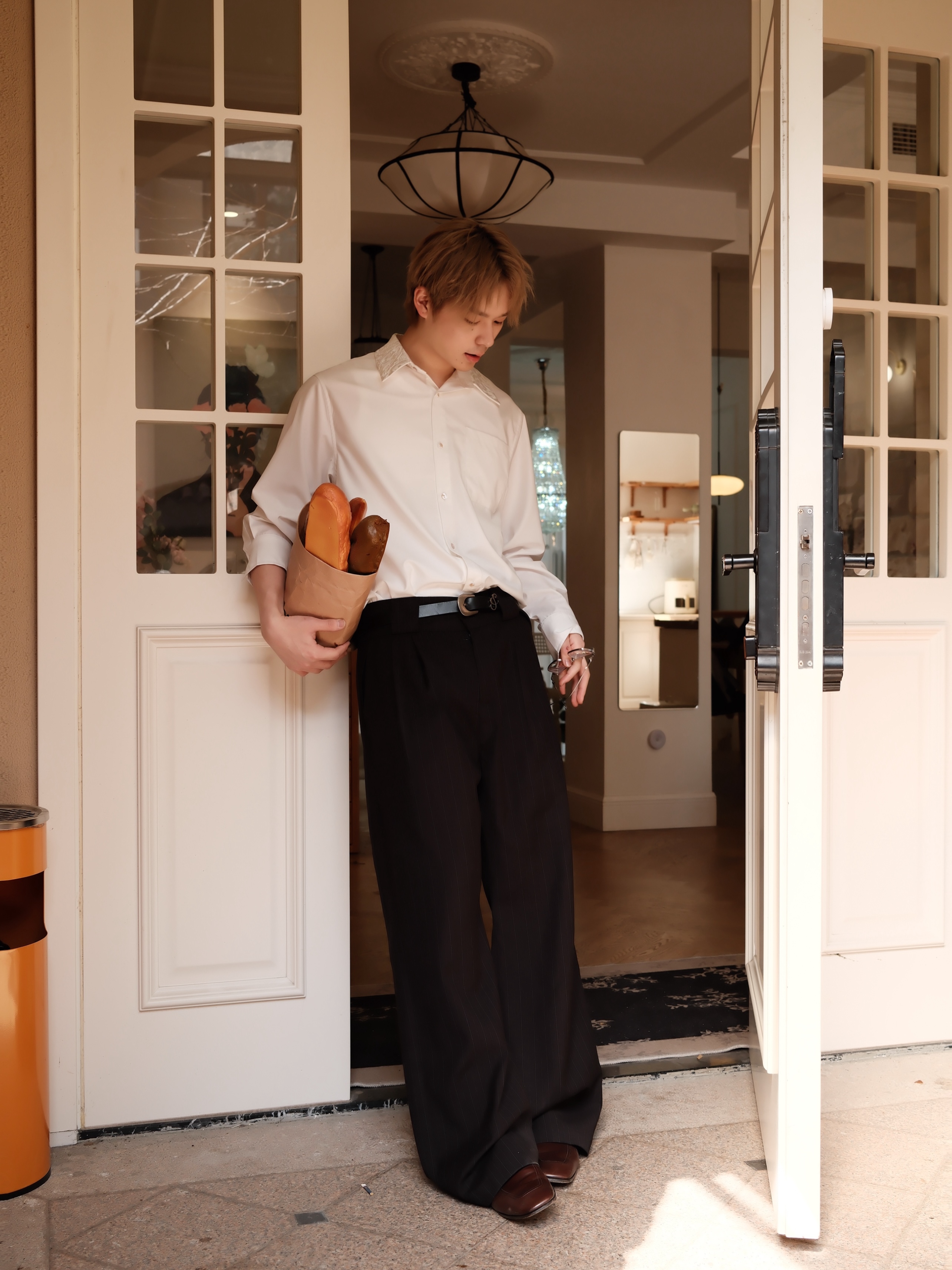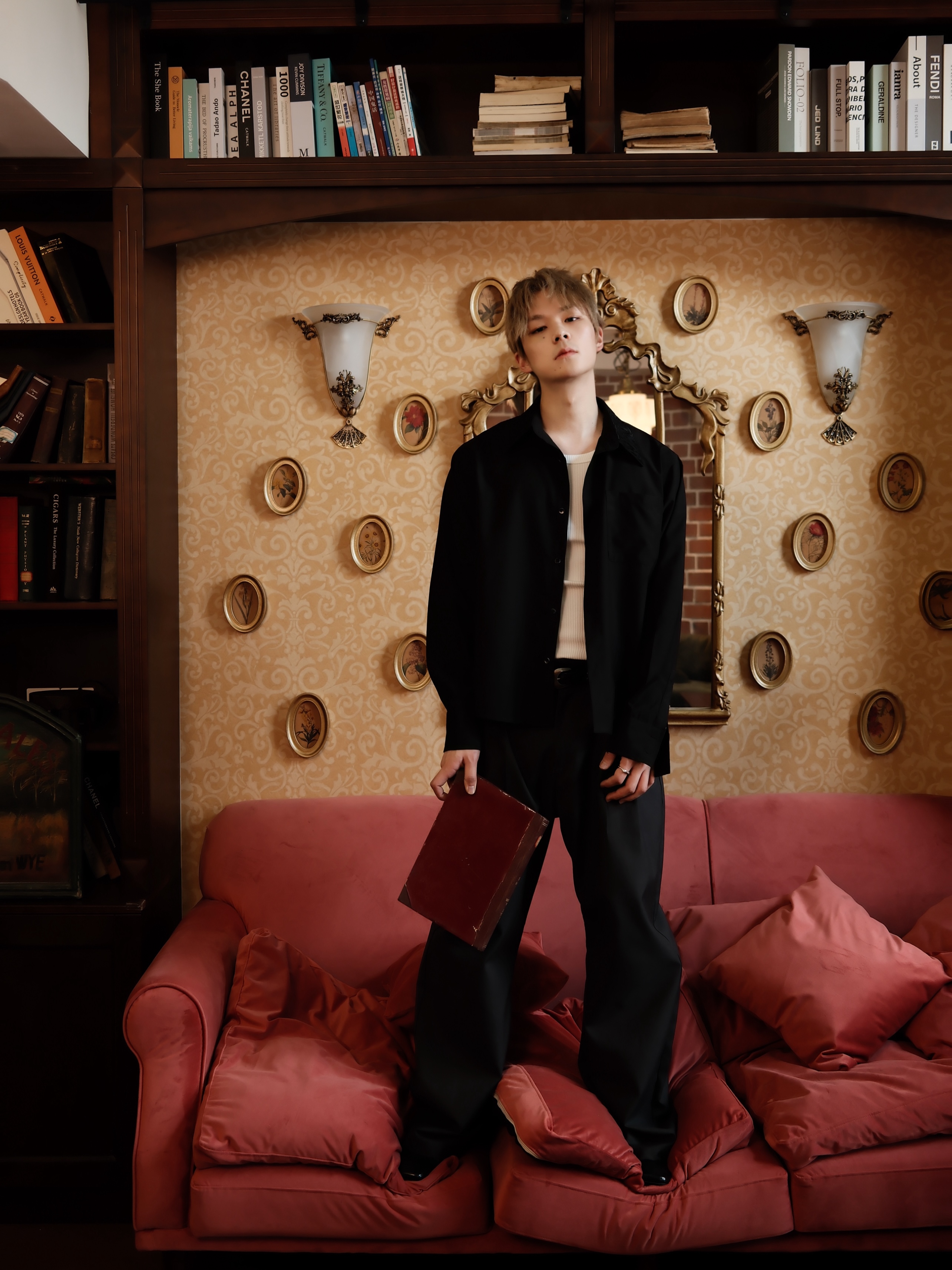 Embroidered Floral Collar Shirt*4Junks*Traditional Suit Tailoring Natural Mother-Of-Pearl Buttons Relaxed and Elegant Long-Sleeved Jacket