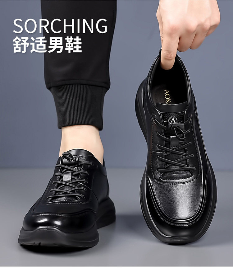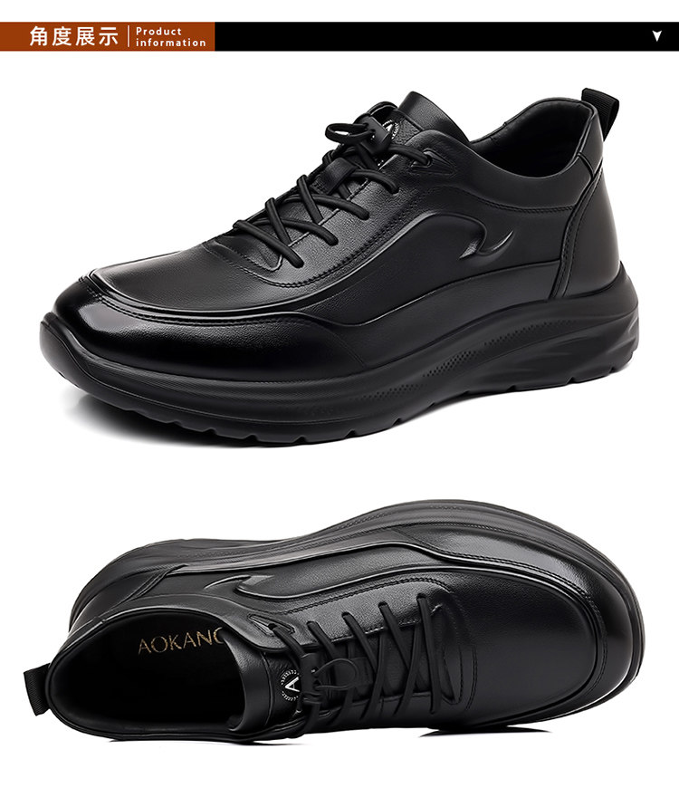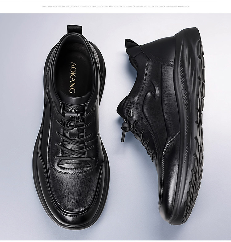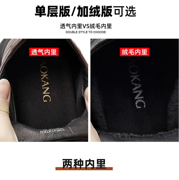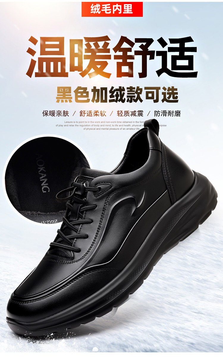 Aokang Men's Genuine Leather Shoes 2025 Autumn and Winter New Outdoor Fleece-Lined Warm Sports Business Casual Shoes
