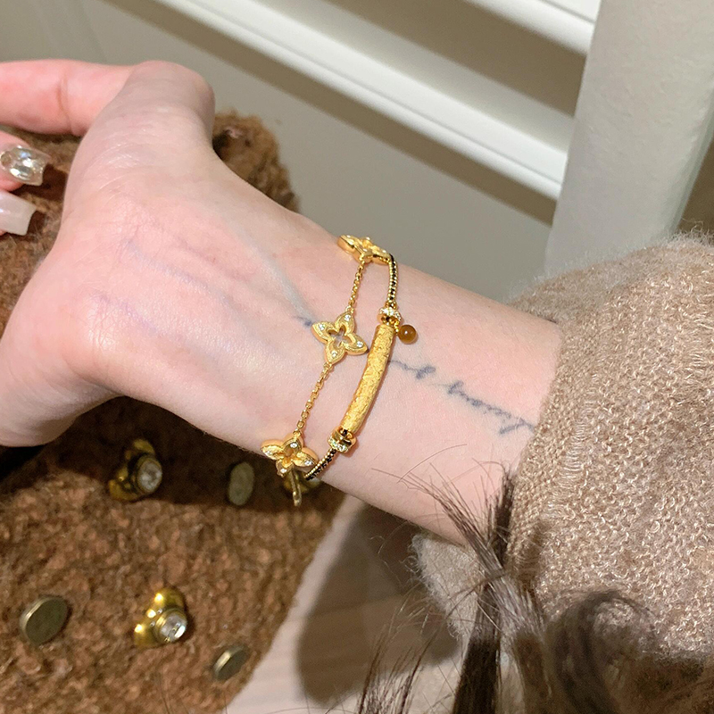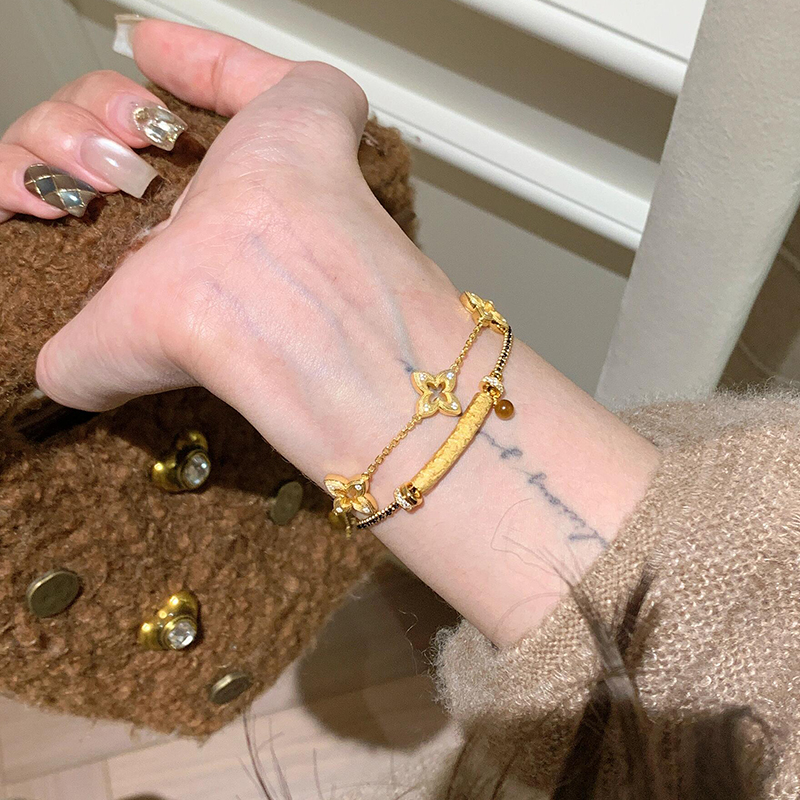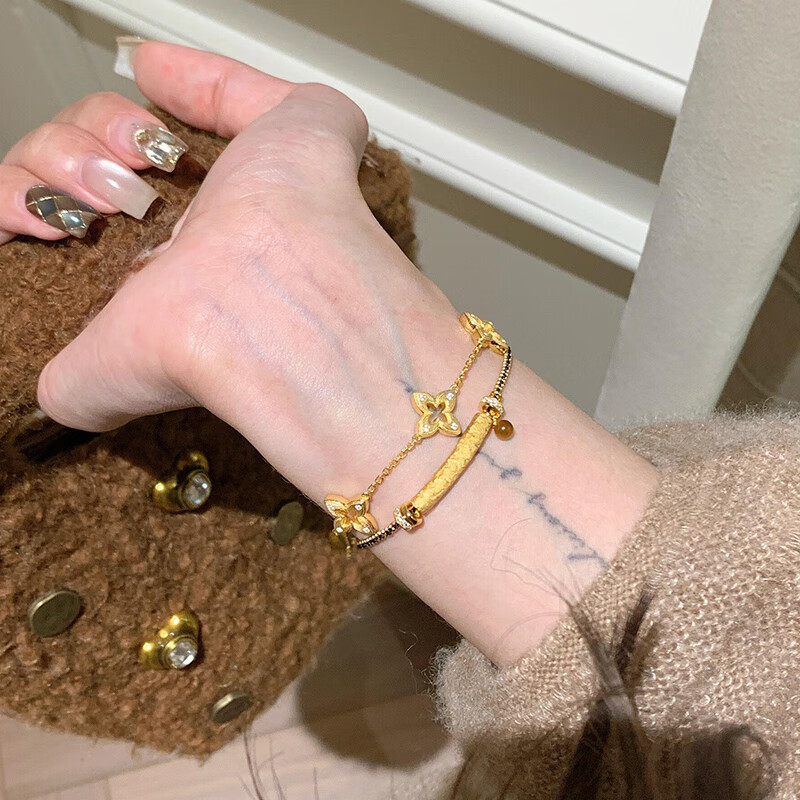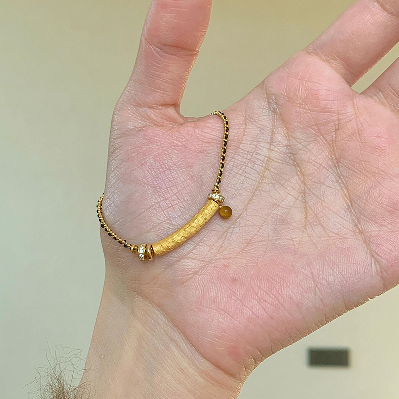 Sea Rover Gold Smile Tiger's Eye Stone Bracelet for Women 2025 New Model 999 Pure Gold Curved Tube Jewelry Gift for Girlfriend