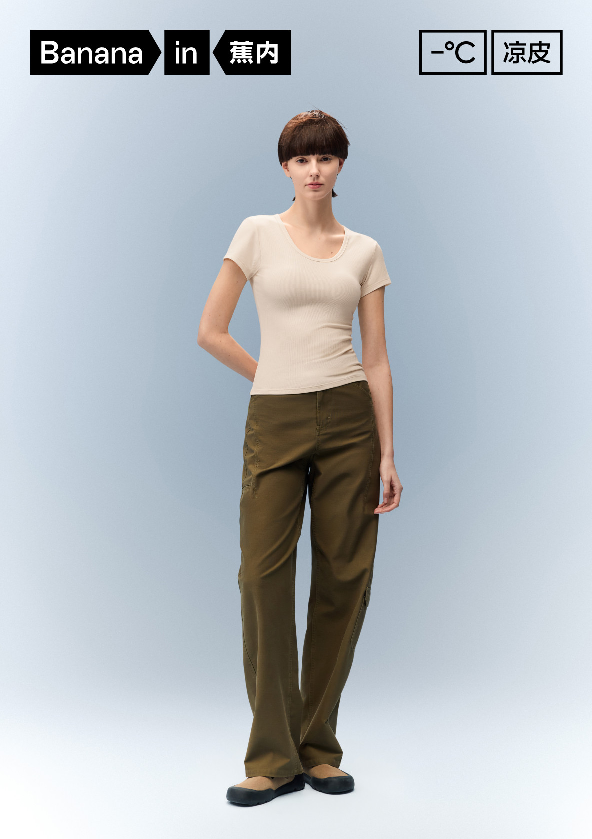 Bananain Coolpi 501Cool Women's U-Neck Short-Sleeve T-Shirt, White Top, Slim-Fit Base Shirt, New Spring/Summer Style