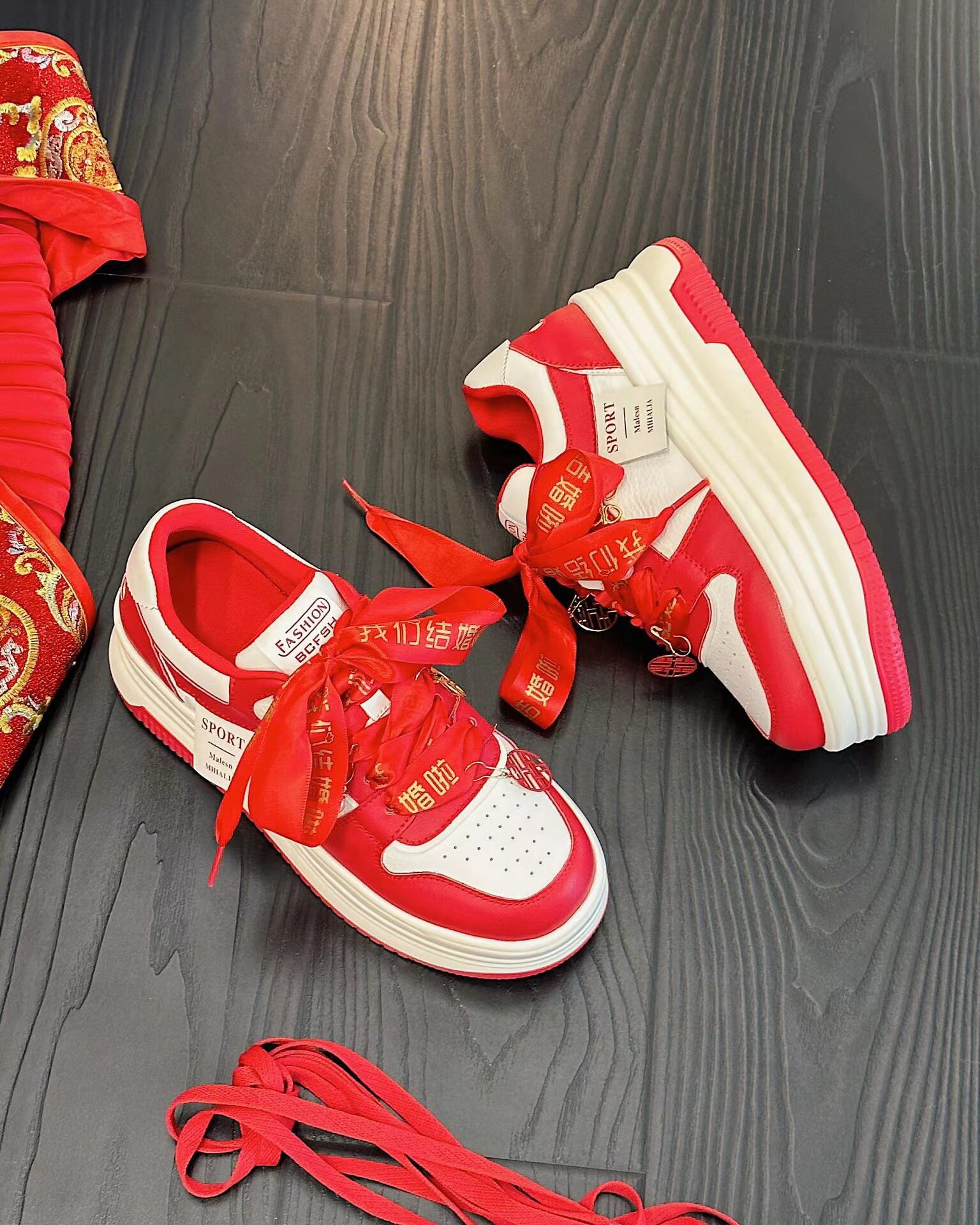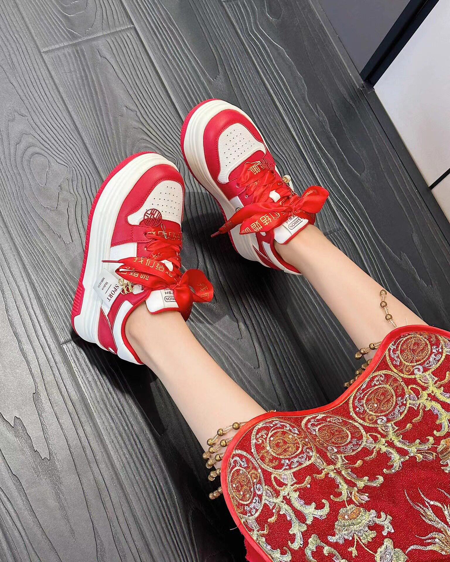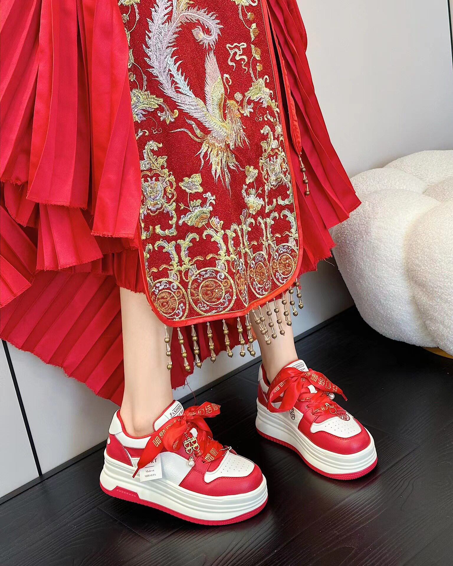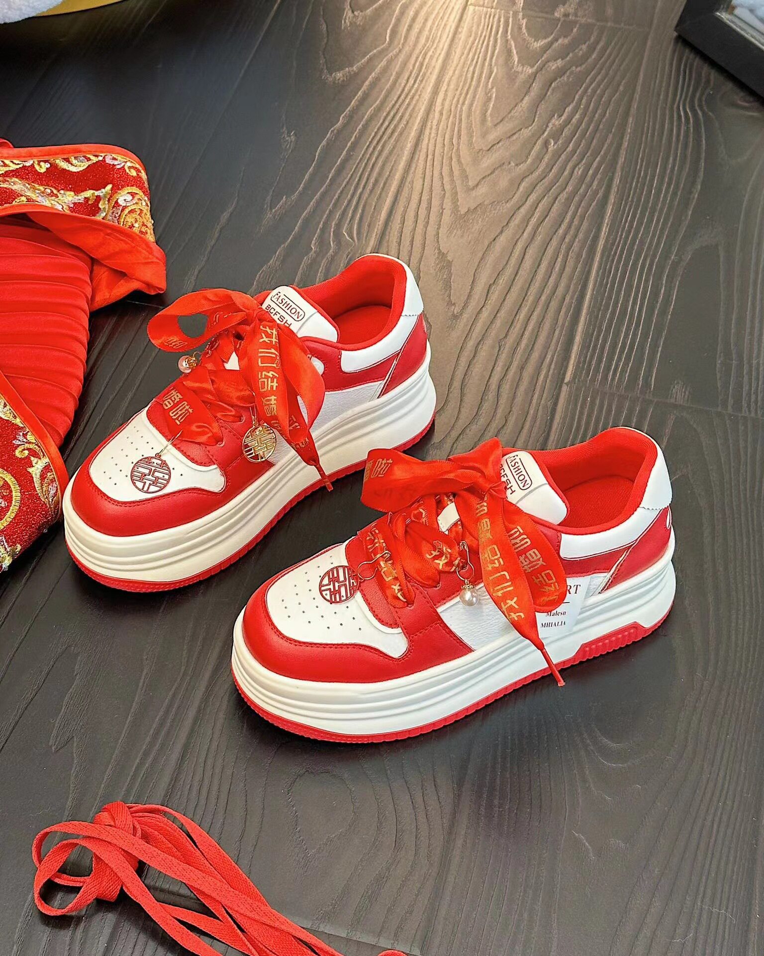 Hong Kong Thick-Soled Height-Increasing Sneakers for Women 2026 Autumn New Style Chinese Style New Year Red Xiuhe Hanfu Bride Wedding Shoes Casual Shoes