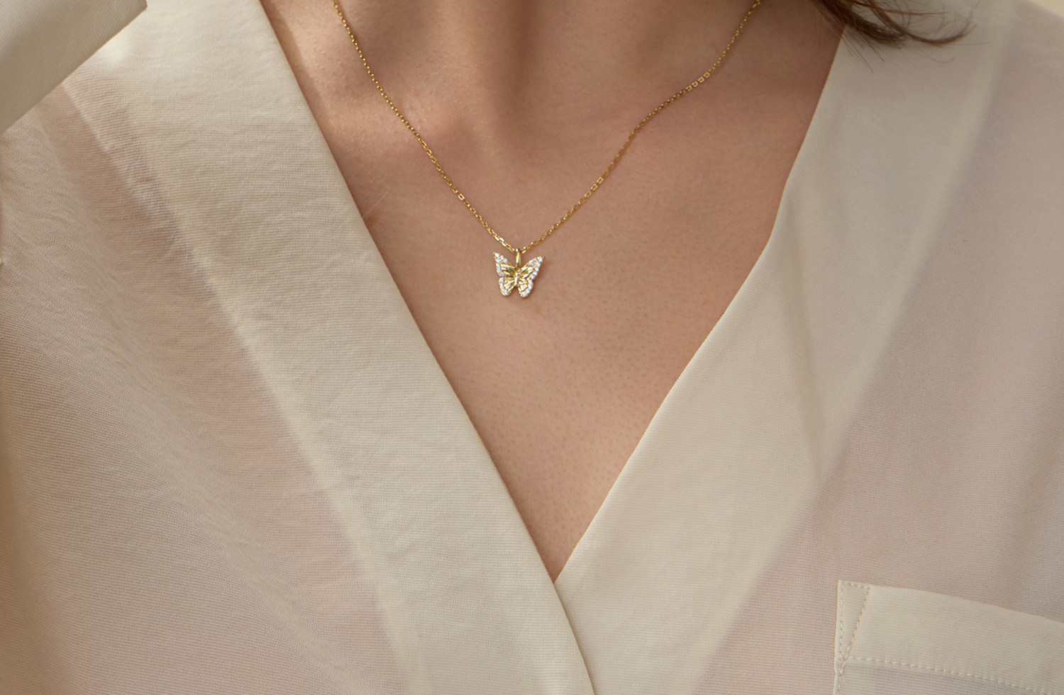 [Same Style as Zhou Keyu] Arsis Silver Jewelry Lucky Symbol Dancing Butterfly Pendant Necklace Detachable Clavicle Chain