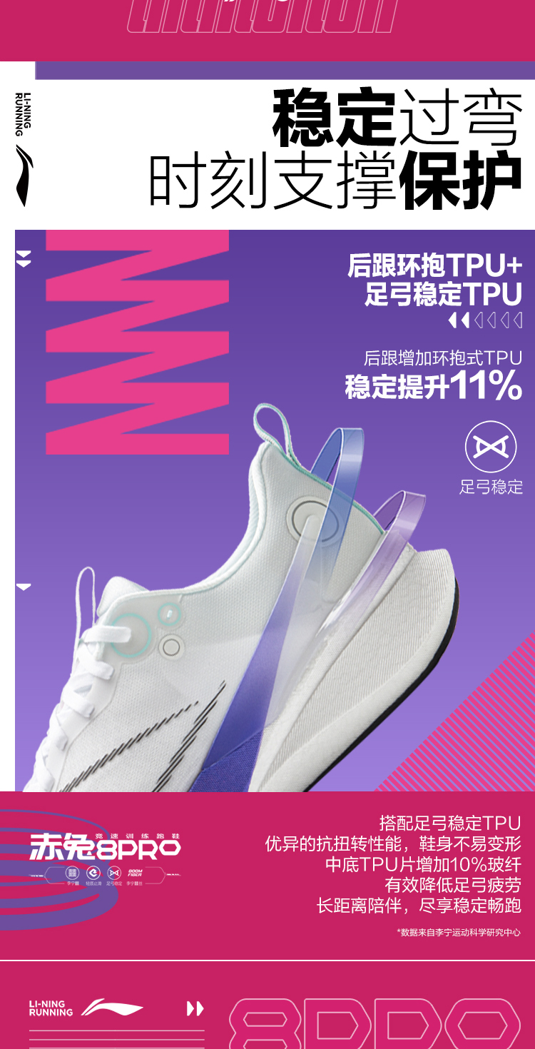 Li-Ning Chitu 8Pro丨 Men's Running Shoes for High School Physical Fitness Test, Shock-Absorbing, Lightweight, Racing Training, Professional Sports Shoes
