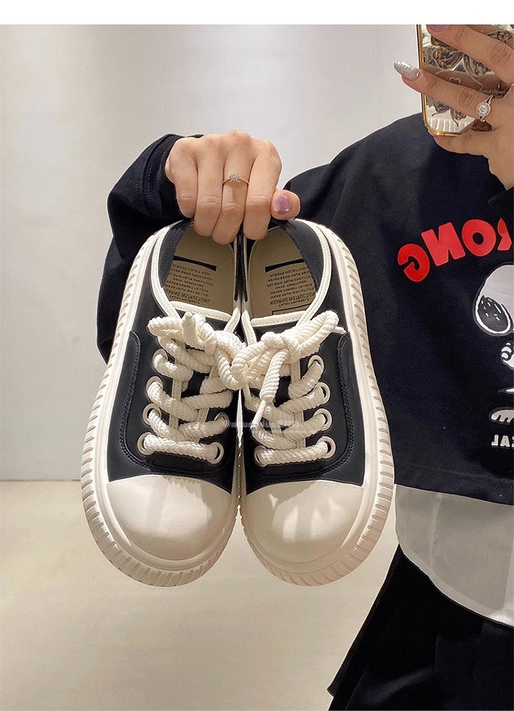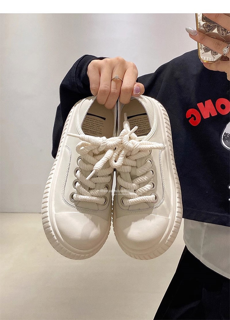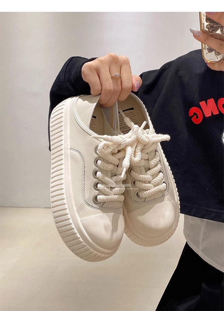 Hong Kong Genuine Leather Two-Wear Casual Sports White Shoes for Women 2025 Spring & Fall New Style Distressed Heightening Thick-Soled Platform Shoes