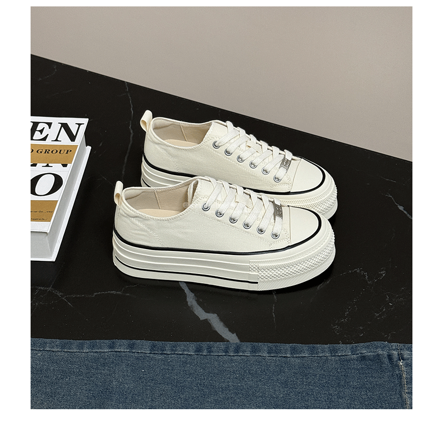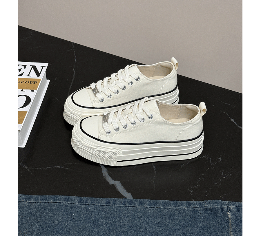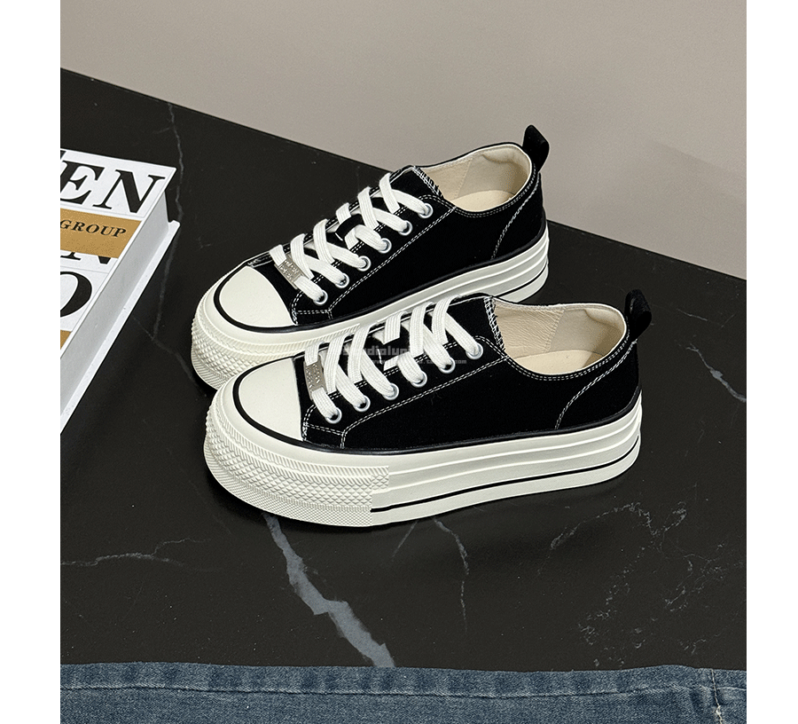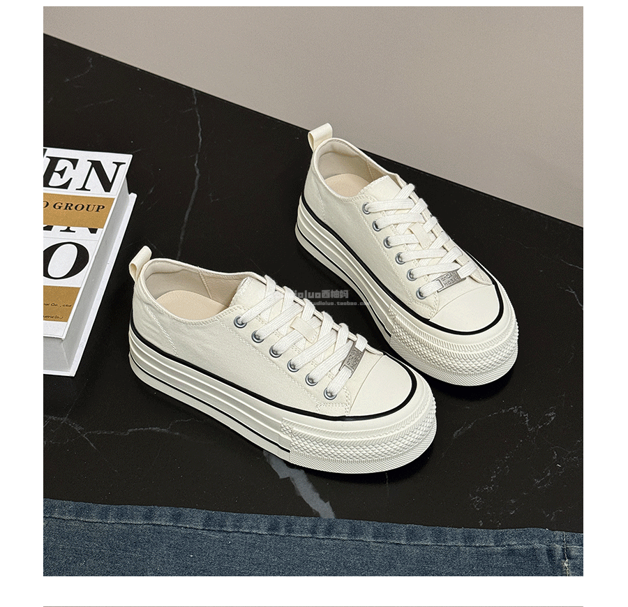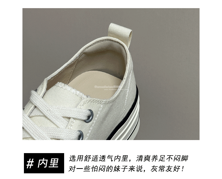 Three-Layer Thick-Soled Genuine Leather Canvas Shoes for Women, 2025 Spring and Autumn New Versatile Lace-Up Height-Increasing Round-Toe Biscuit Shoes, White Shoes