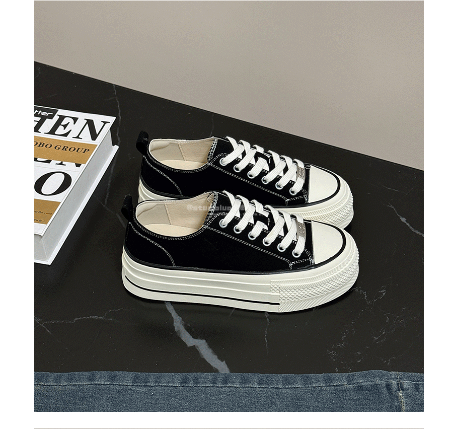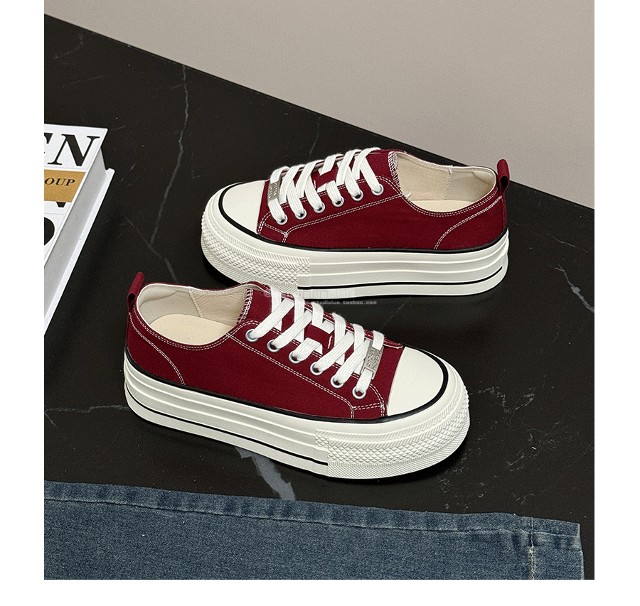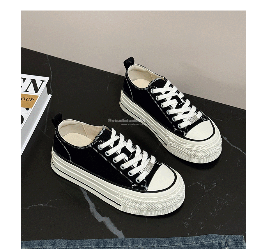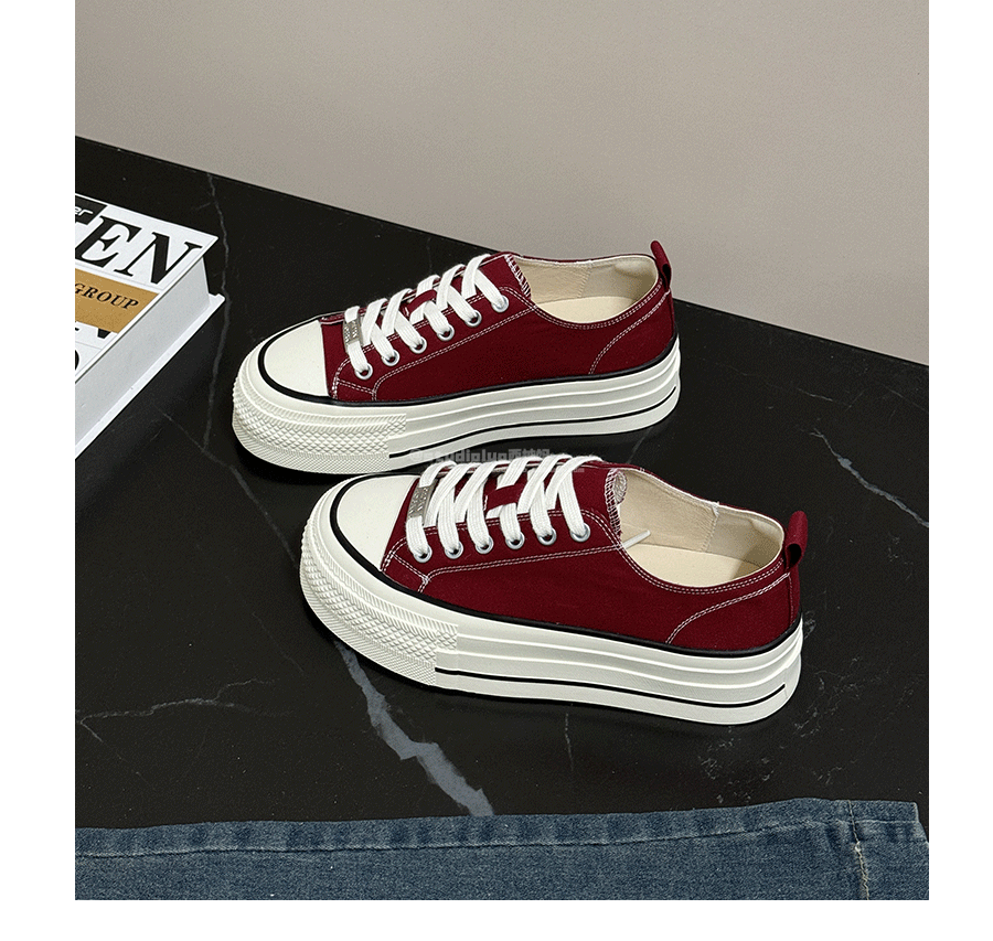 Three-Layer Thick-Soled Genuine Leather Canvas Shoes for Women, 2025 Spring and Autumn New Versatile Lace-Up Height-Increasing Round-Toe Biscuit Shoes, White Shoes
