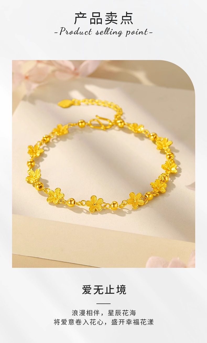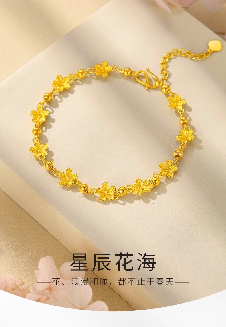Shenzhen Shuibeijiao Gold Starry Sea of Flowers Bracelet 999 Pure Gold Silver-Plated Fortune Bead Bracelet as a Birthday Gift for Girlfriend